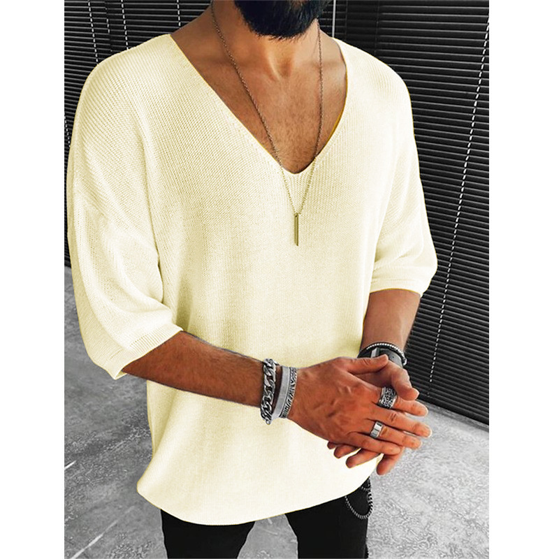 새로운 유럽과 미국 남성 여름과 가을 반팔 탑 크로스 보더 패션 캐주얼 v 넥 스웨터 남성 티셔츠