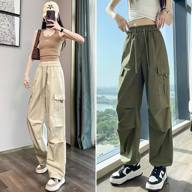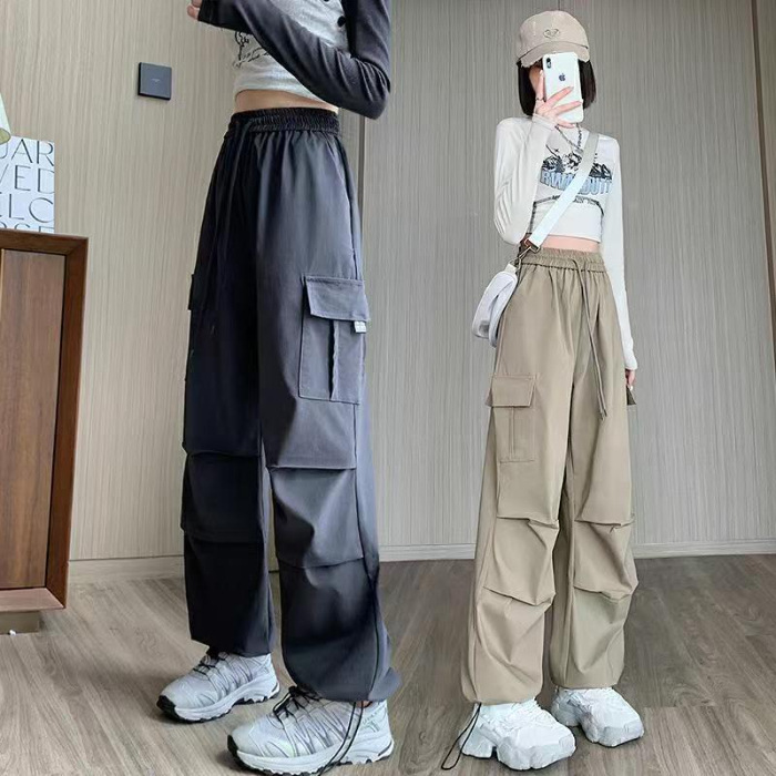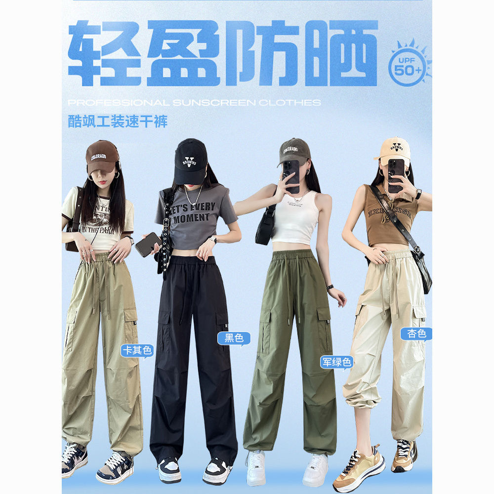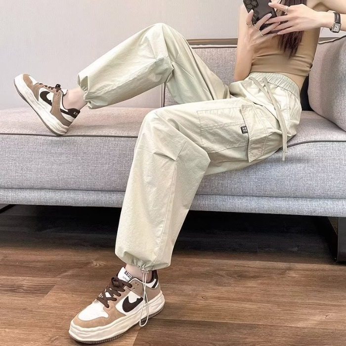 여성을위한 새로운 얼음 실크 속건성 작업복 얇은 하이 웨이스트 드로우 스트링 하이킹 바지 아메리칸 하렘 스포츠 바지 도매