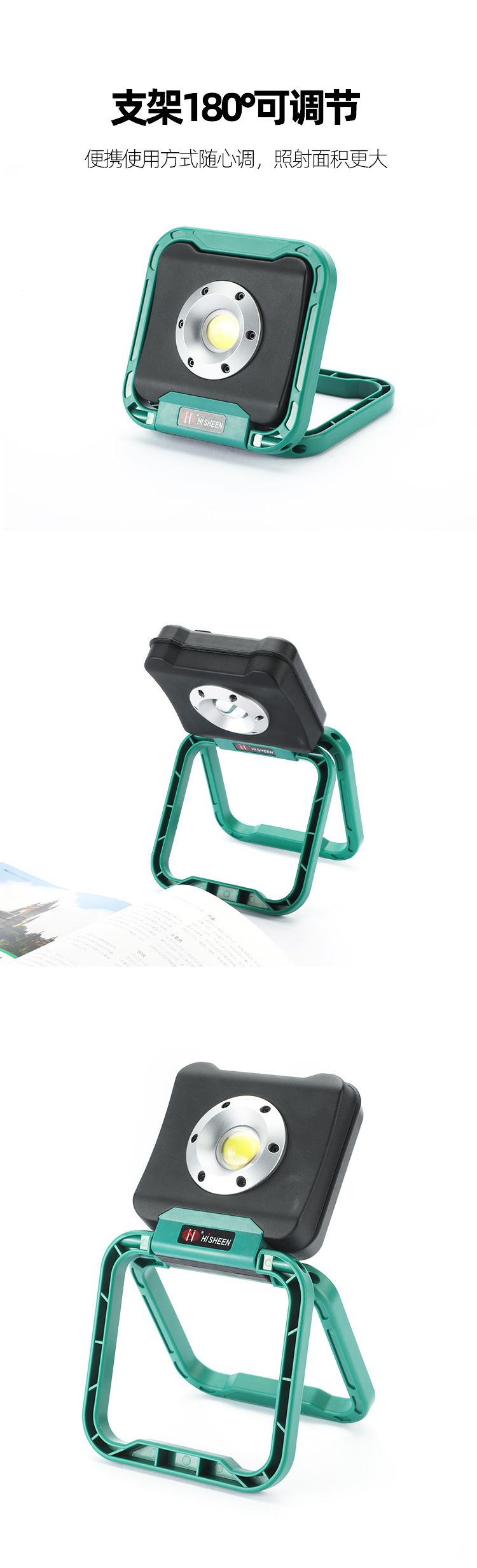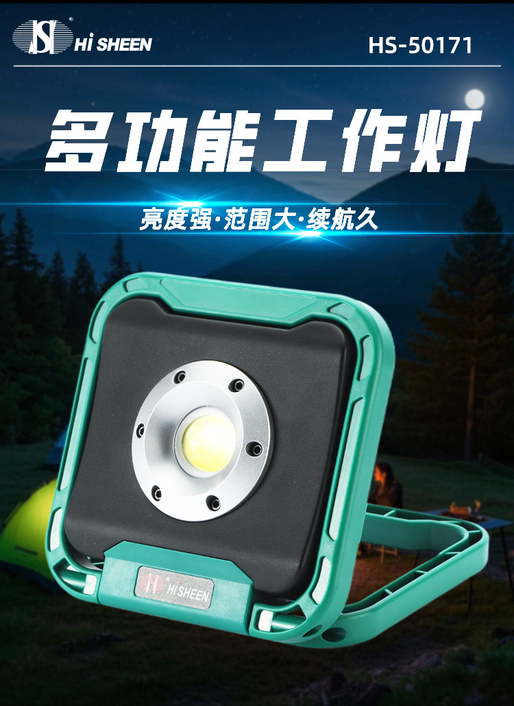 새로운 강한 빛 작업 빛 COB 검사 빛 다기능 휴대용 스탠드 USB 충전식 대형 투광 손전등