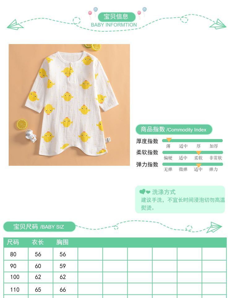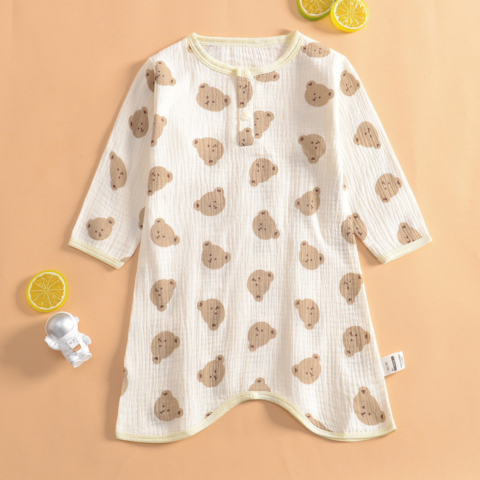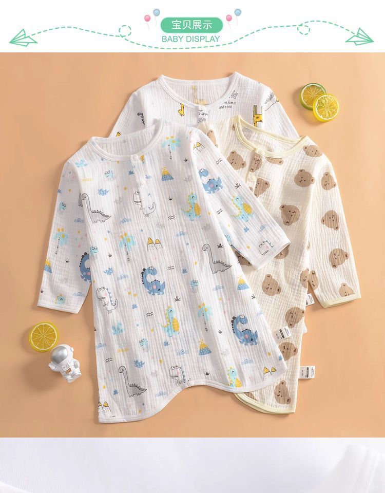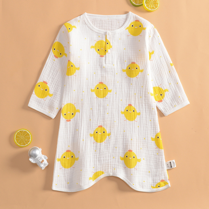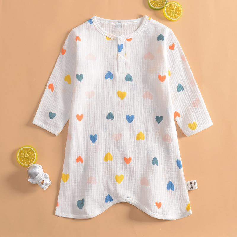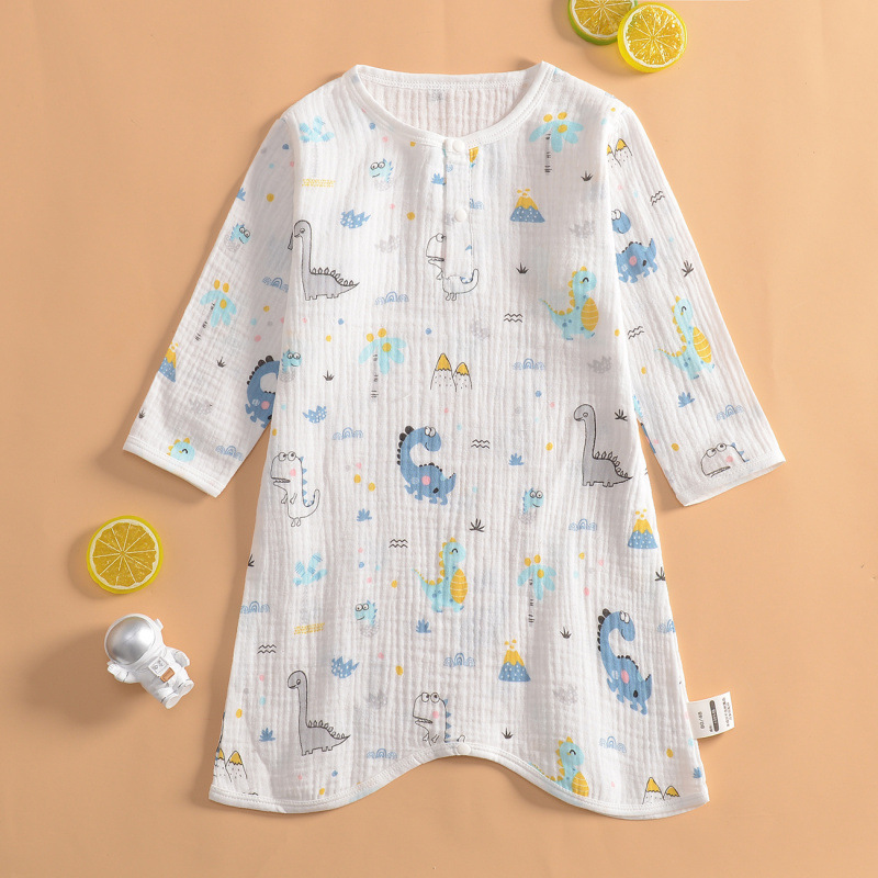 여름 초박형 베이비 거즈 긴팔 나이트 가운 여학생 홈 나이트 가운 잠옷 소년 에어컨 룸 스플릿 레그 나이트 가운스토어 가기
