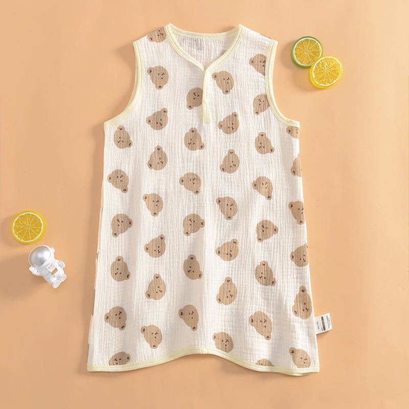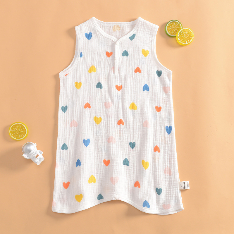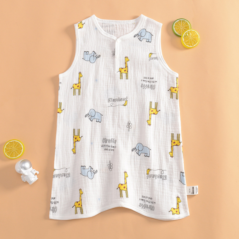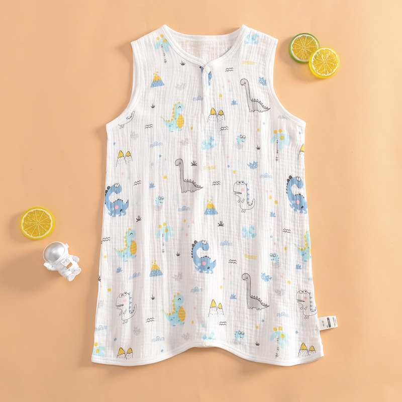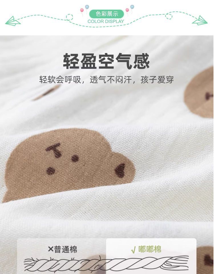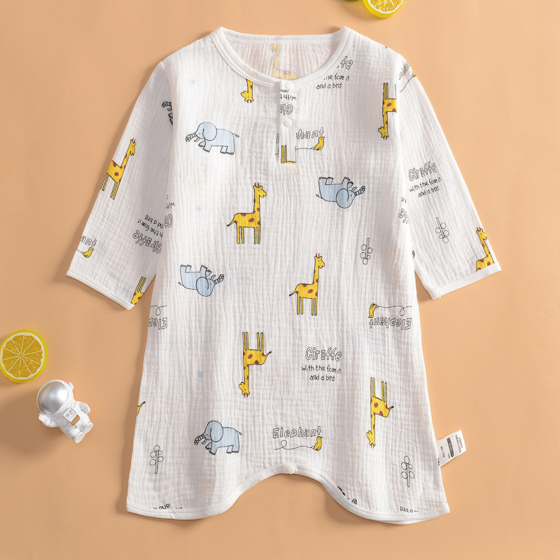 여름 초박형 베이비 거즈 긴팔 나이트 가운 여학생 홈 나이트 가운 잠옷 소년 에어컨 룸 스플릿 레그 나이트 가운스토어 가기