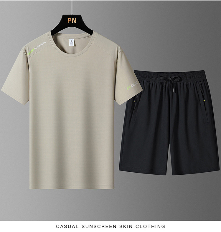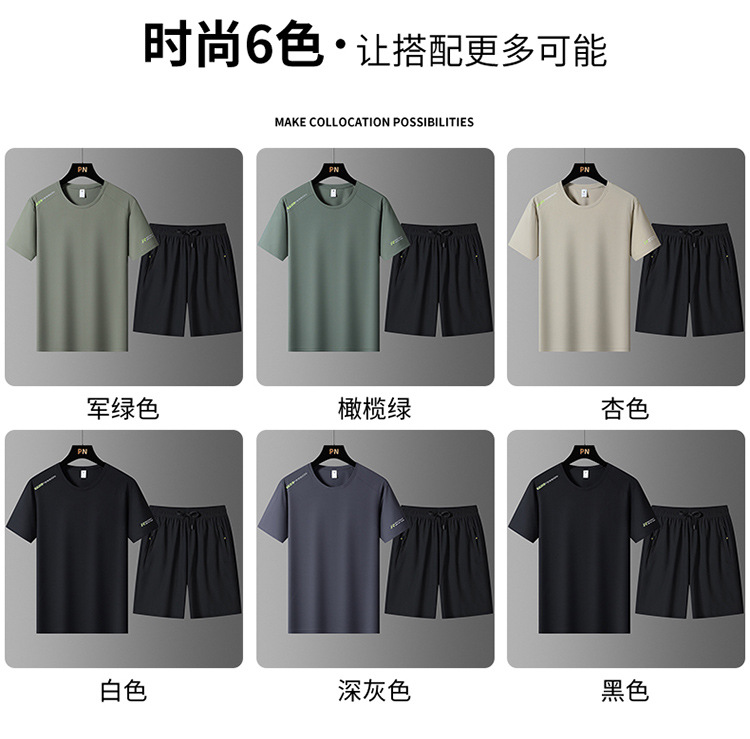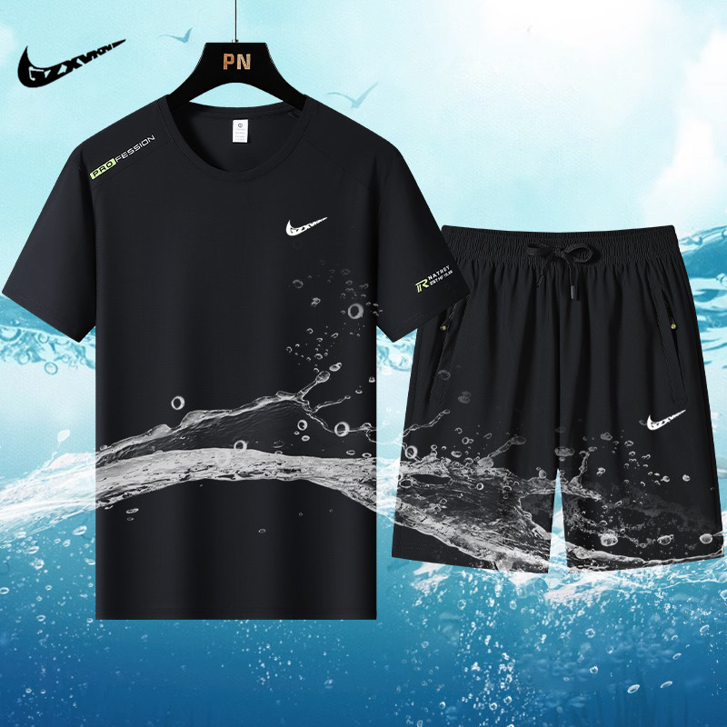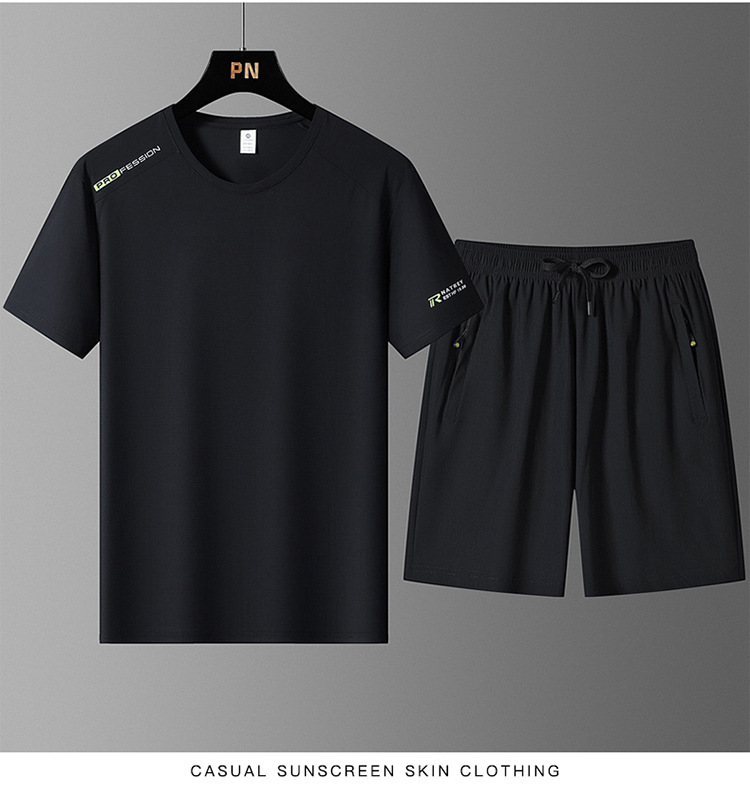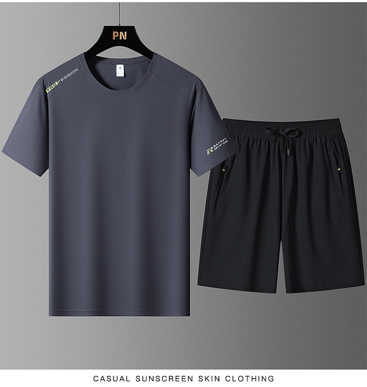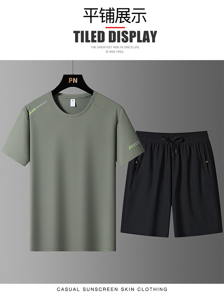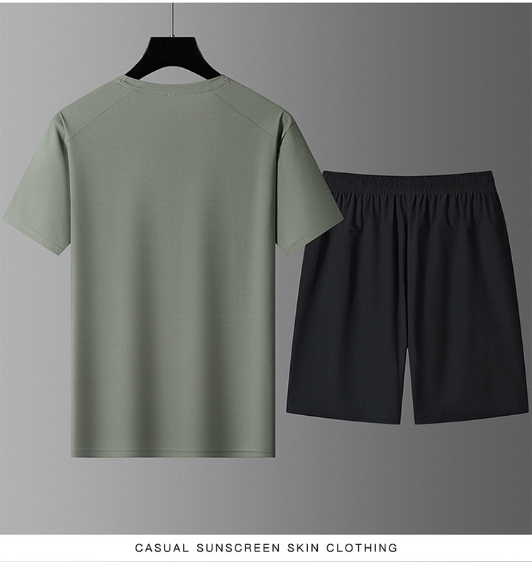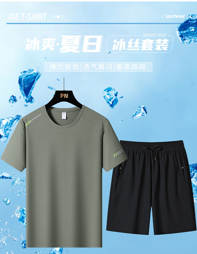 국경 간 플러스 사이즈 아이스 실크 세트 여름 스포츠 레저 빠른 건조 탄성 티셔츠 반팔 반바지 달리기 남성용 투피스 세트스토어 가기