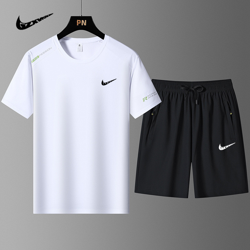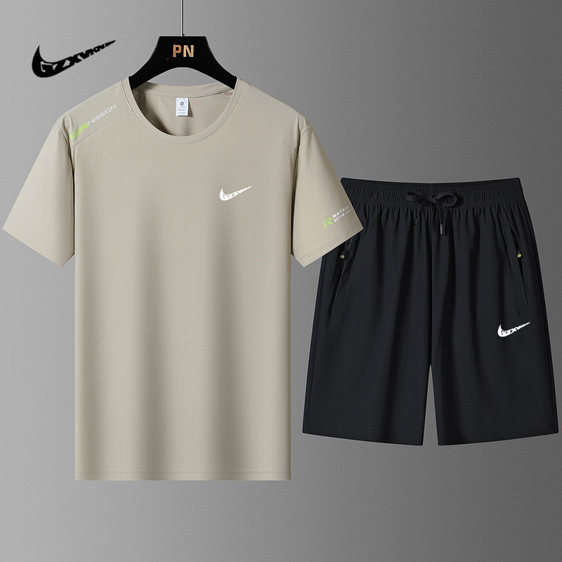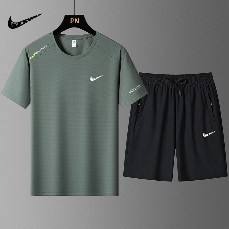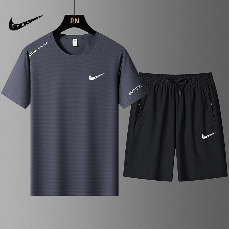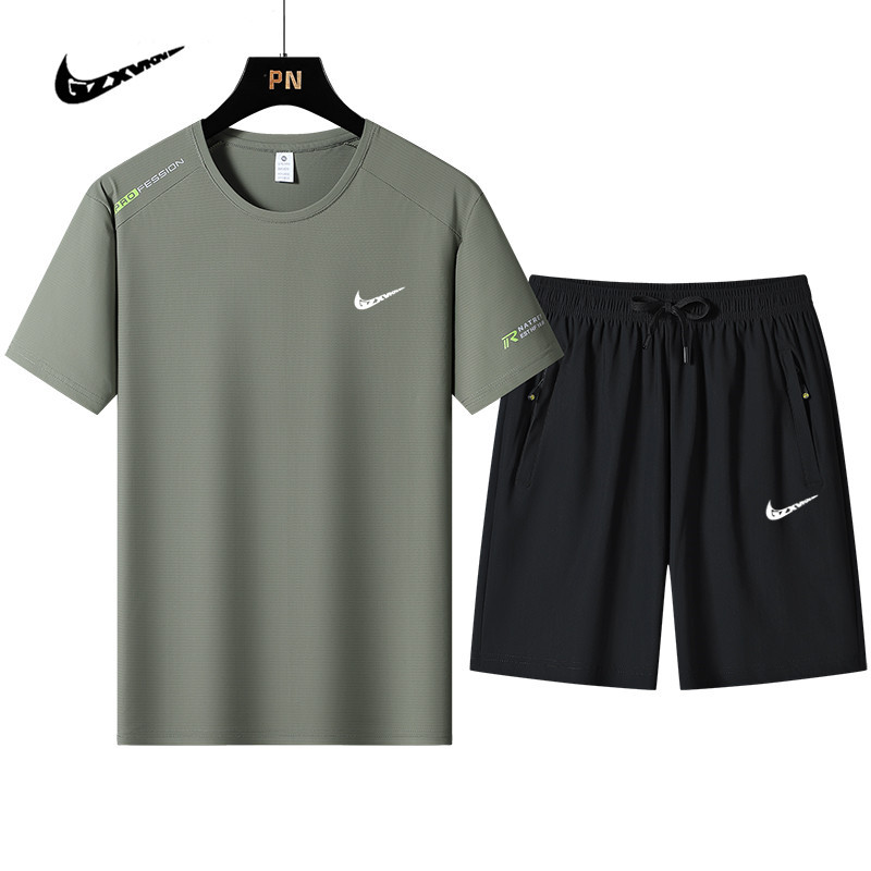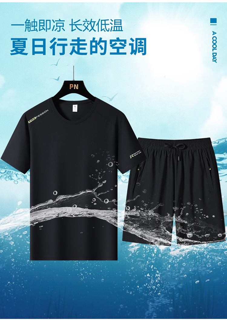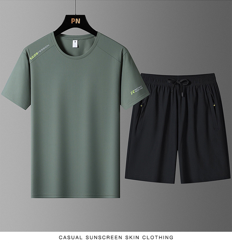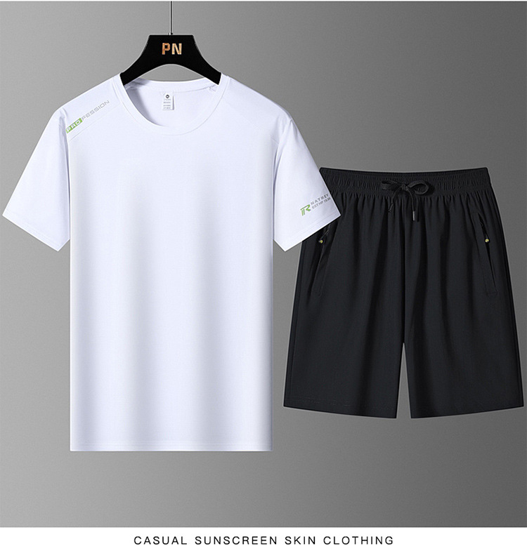 국경 간 플러스 사이즈 아이스 실크 세트 여름 스포츠 레저 빠른 건조 탄성 티셔츠 반팔 반바지 달리기 남성용 투피스 세트스토어 가기