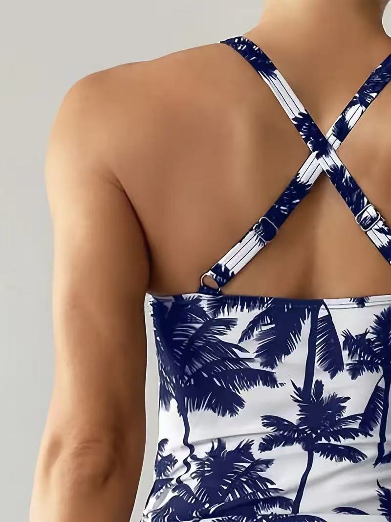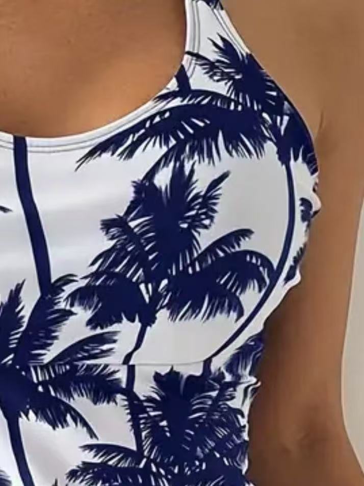 2025 새로운 유럽과 미국의 스플릿 수영복 복서 바지 타니키 코코넛 나무 프린트 아마존 국경 간 대외 무역 수영복