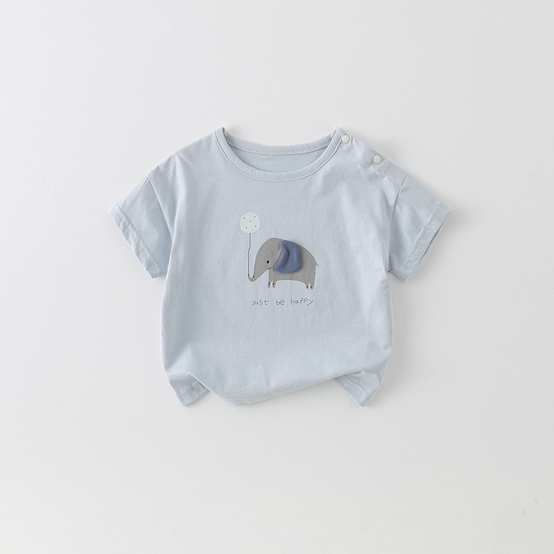 어린이 반소매 티셔츠 2025 새로운 여름 아기 얇은 면 옷 여름 소년 아기 반소매 최고 카테고리 A