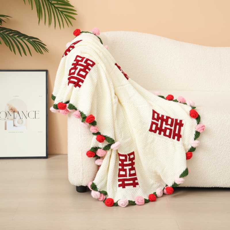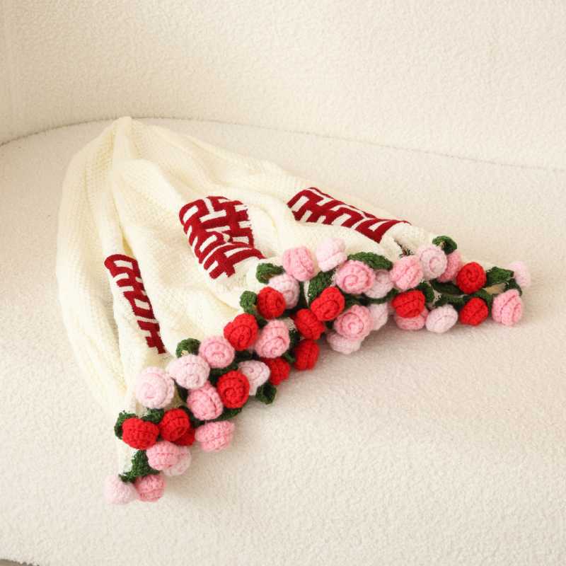 재고 완성 된 수제 담요 크로 셰 뜨개질 장미 꽃 여신을위한 필요한 선물 로즈 레드 레이스 담요 담요