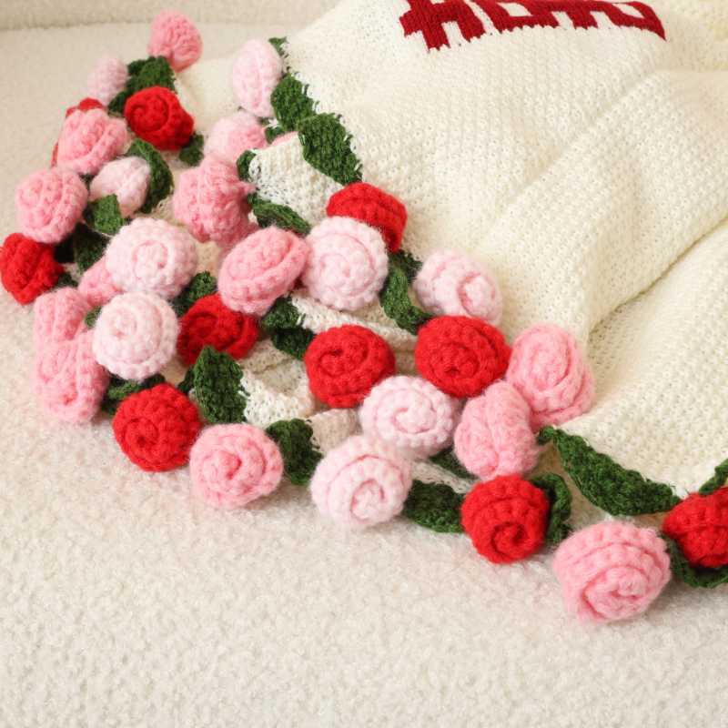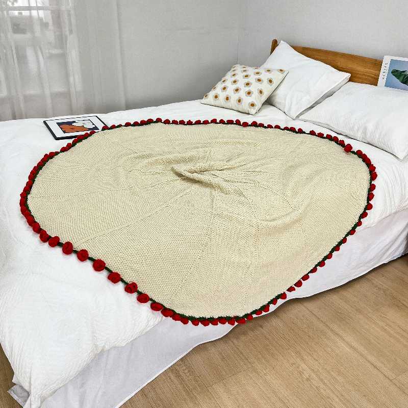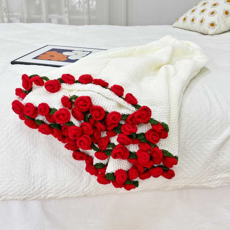 재고 완성 된 수제 담요 크로 셰 뜨개질 장미 꽃 여신을위한 필요한 선물 로즈 레드 레이스 담요 담요스토어 가기
