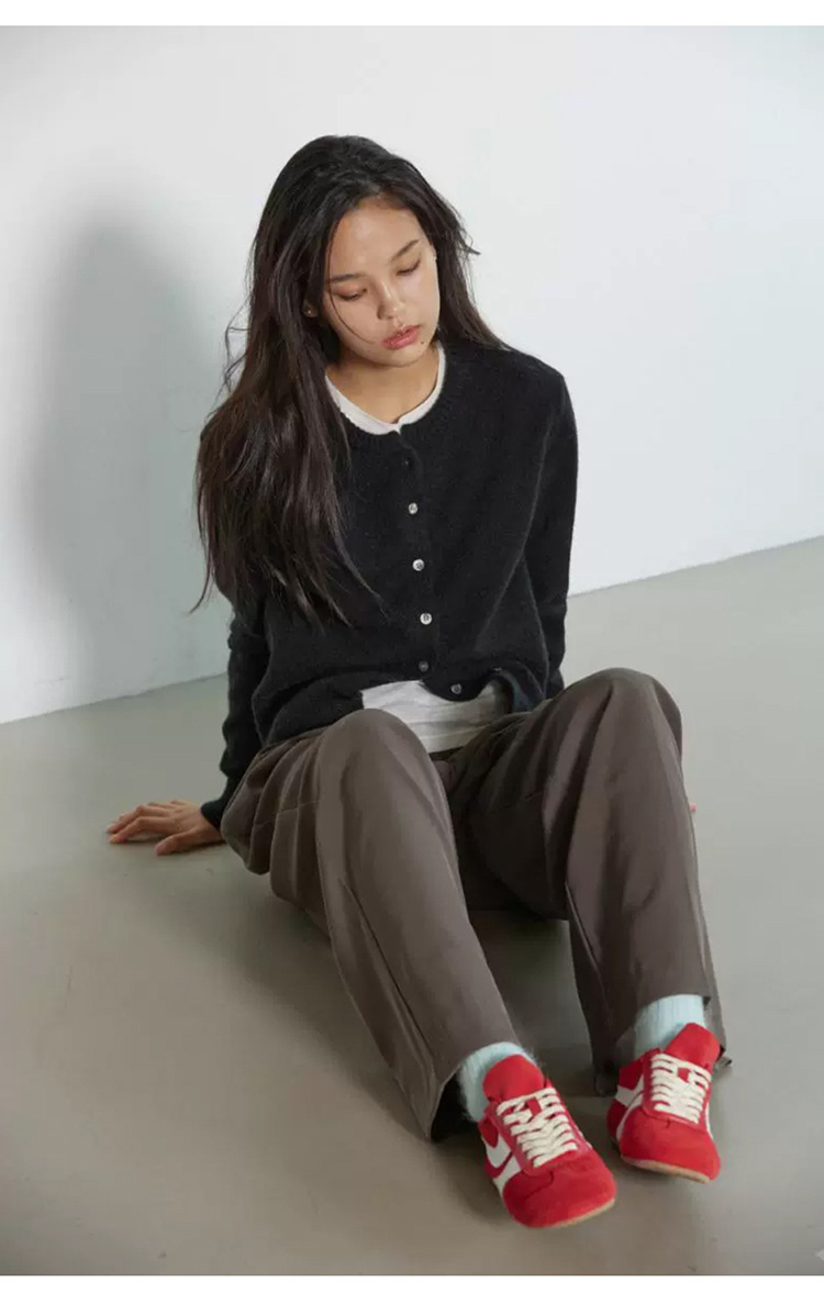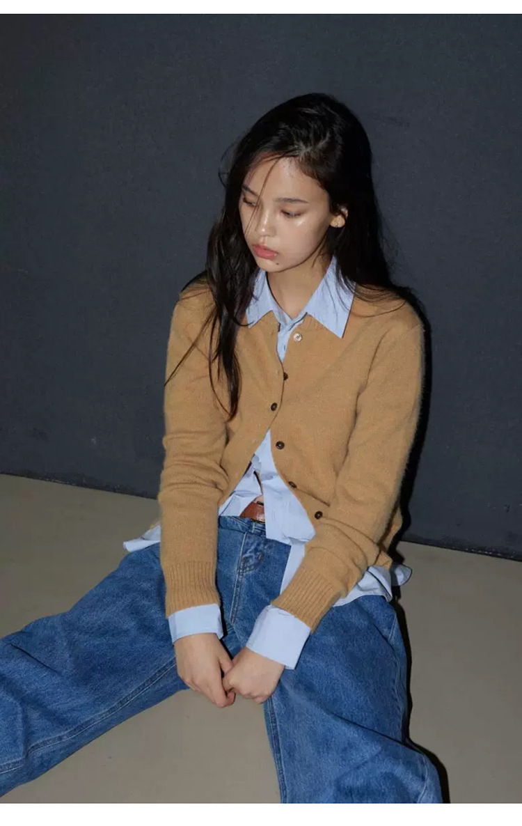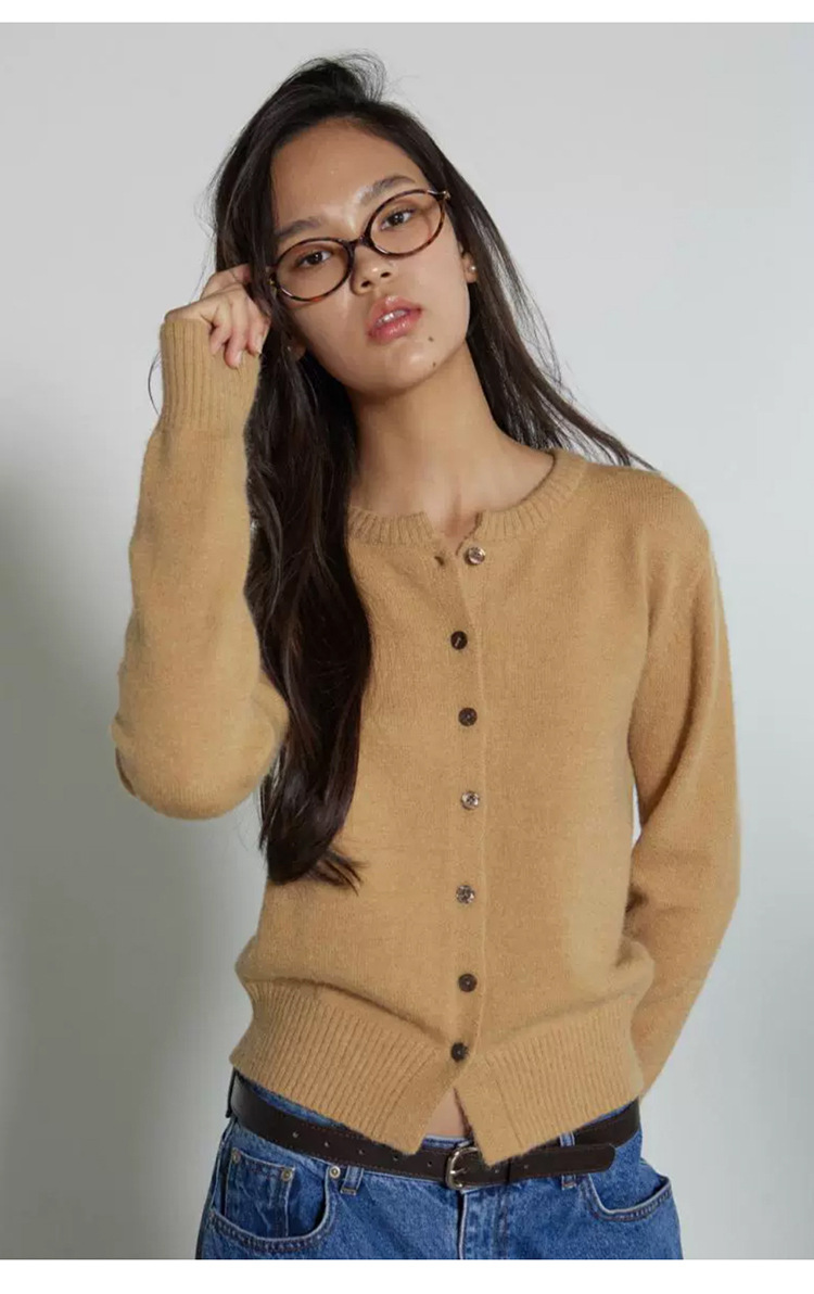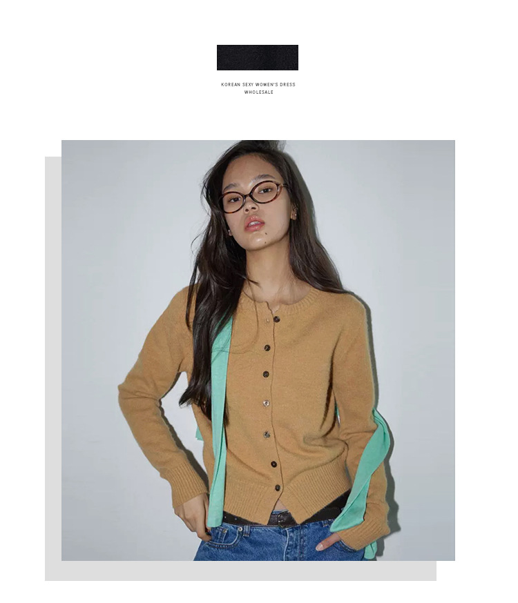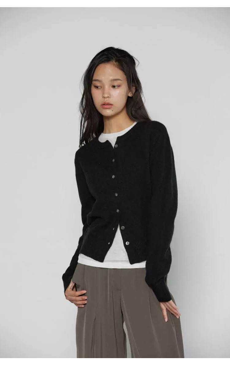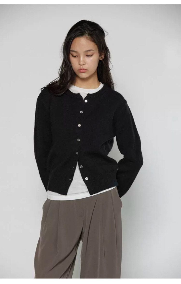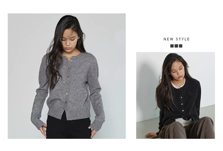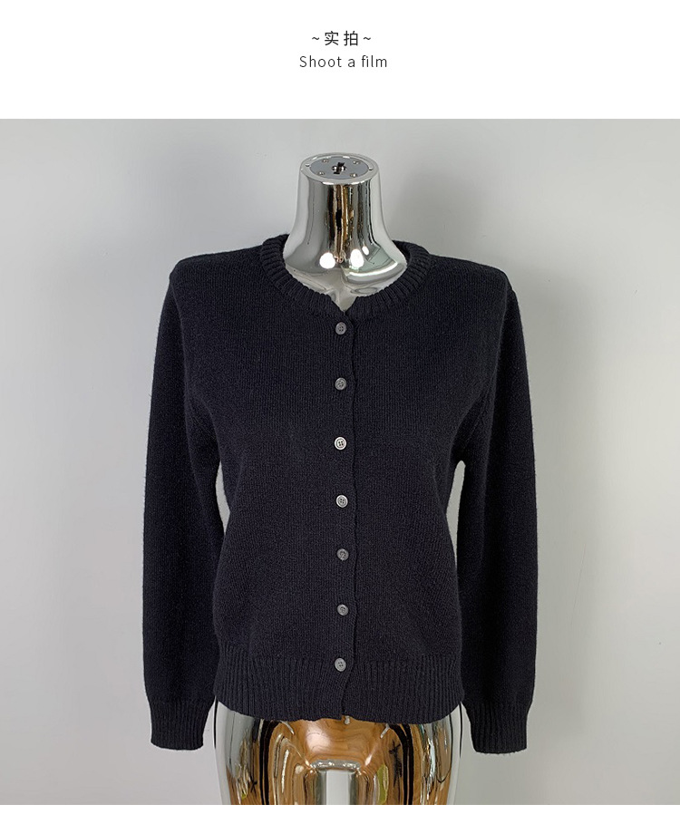 한국 동대문 신작 통근 심플하고 다재다능한 슬림 라운드 넥 싱글 브레스트 긴팔 니트 가디건 탑 여성용스토어 가기