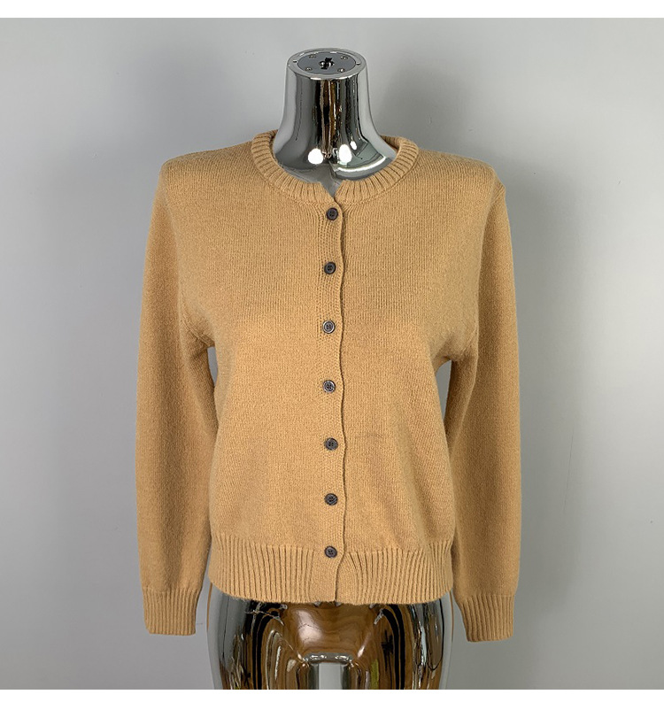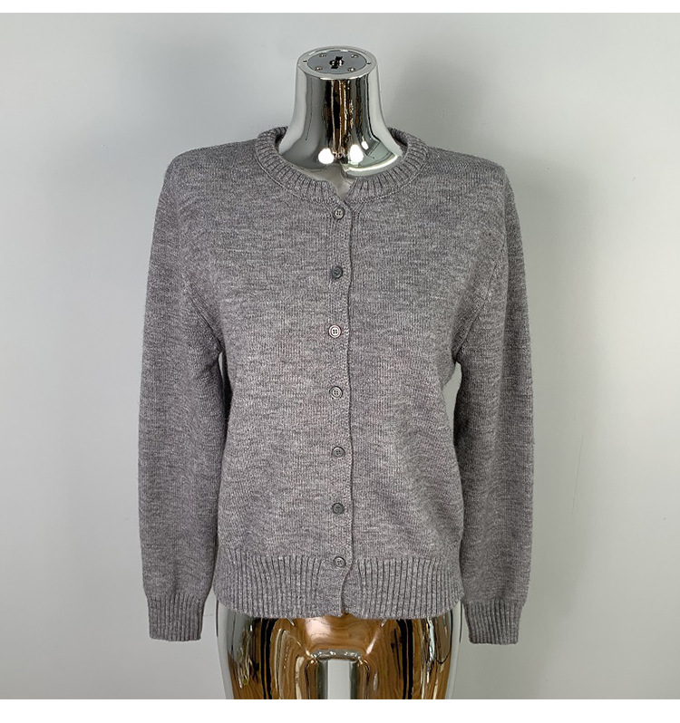 한국 동대문 신작 통근 심플하고 다재다능한 슬림 라운드 넥 싱글 브레스트 긴팔 니트 가디건 탑 여성용