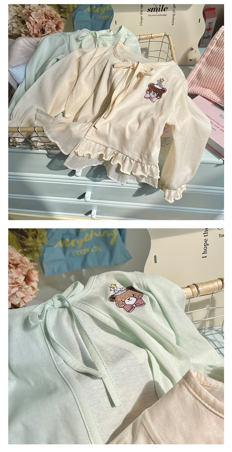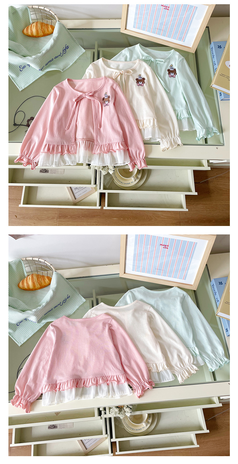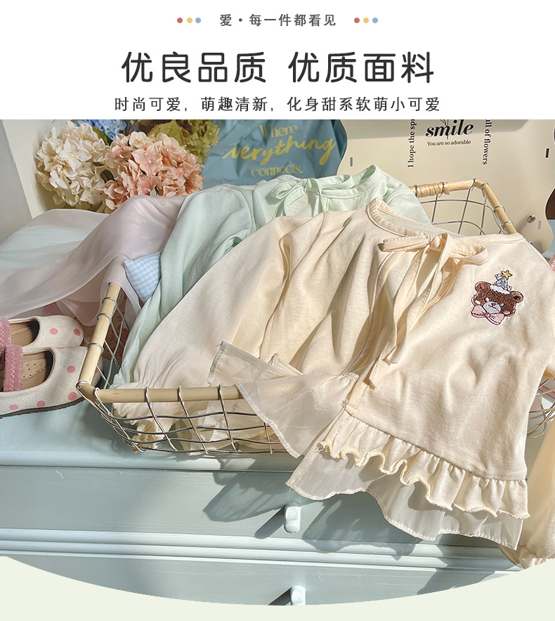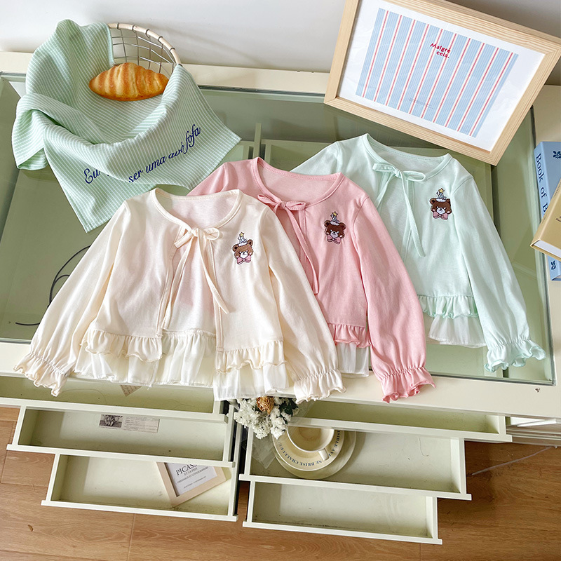 재고 DZ25210 소녀의 태양 보호 의류 2025 여름 새로운 만화 자수 레이스 업 얇은 에어컨 셔츠 재킷