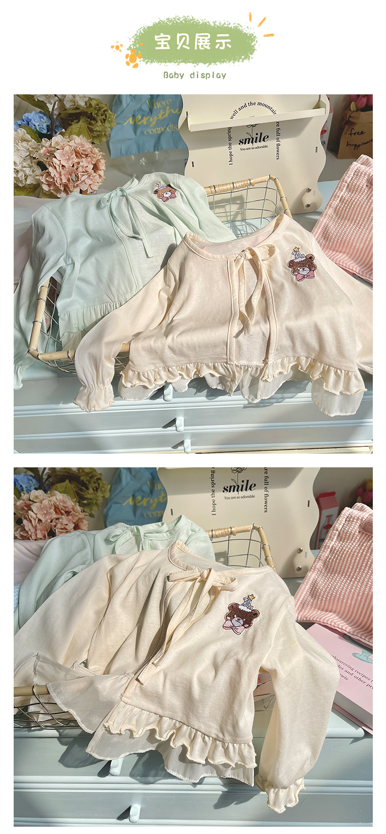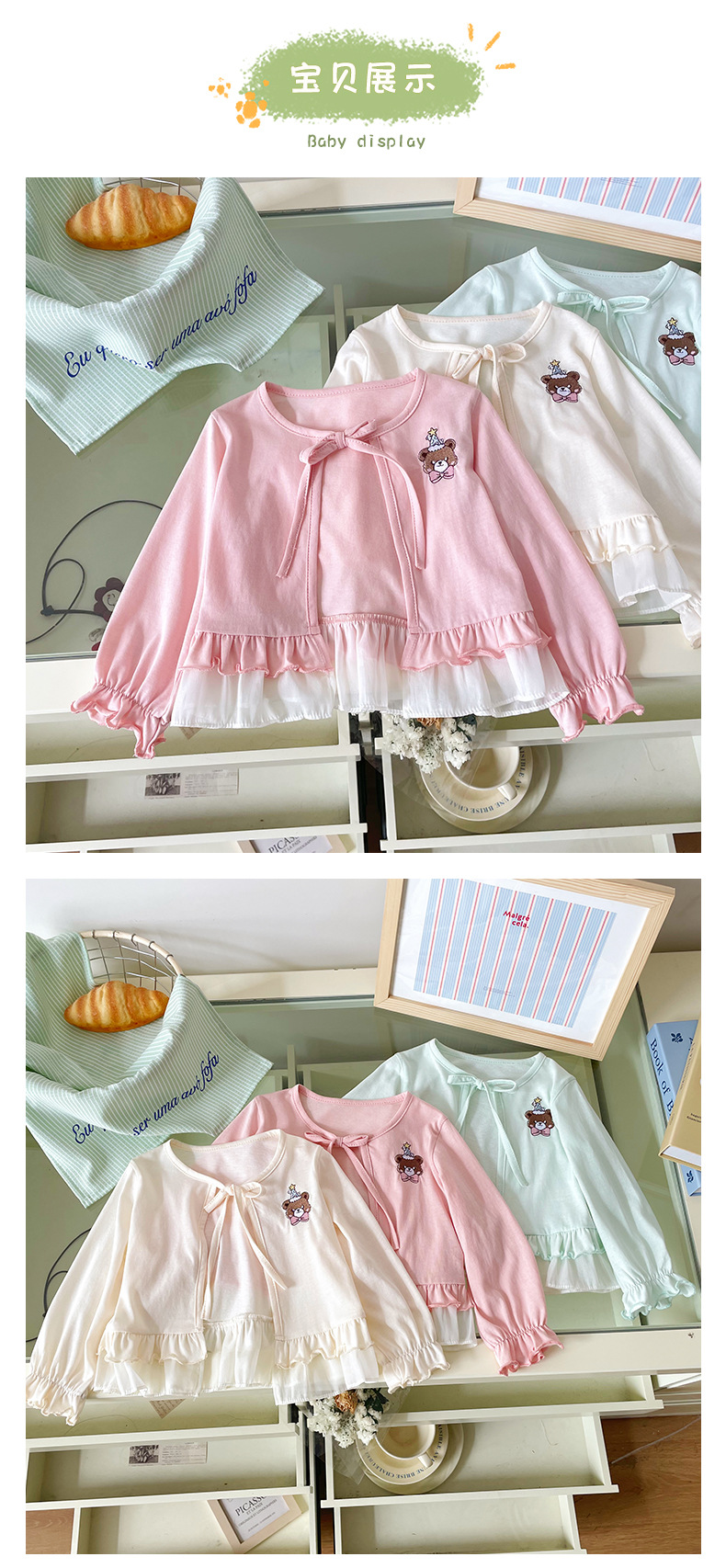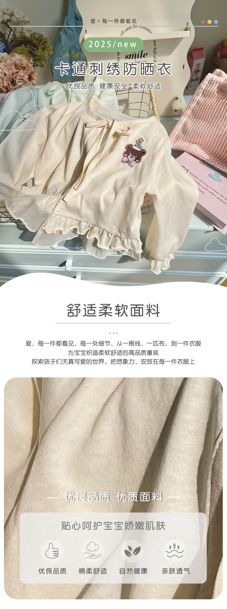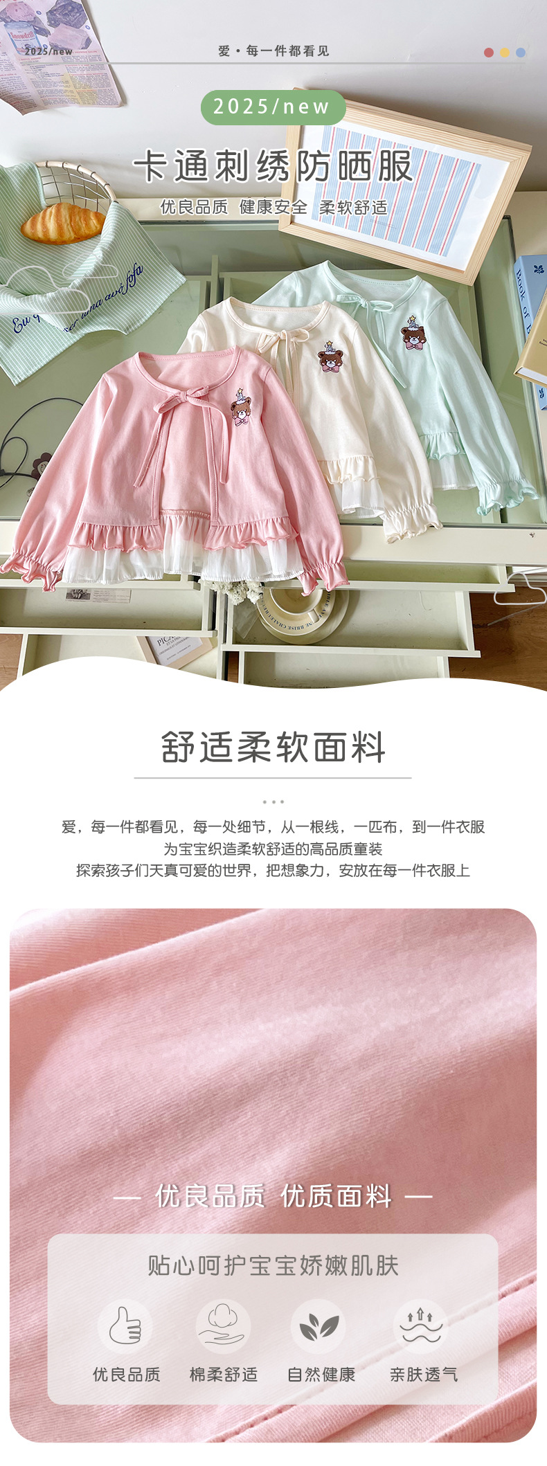 재고 DZ25210 소녀의 태양 보호 의류 2025 여름 새로운 만화 자수 레이스 업 얇은 에어컨 셔츠 재킷