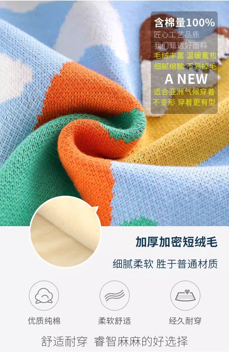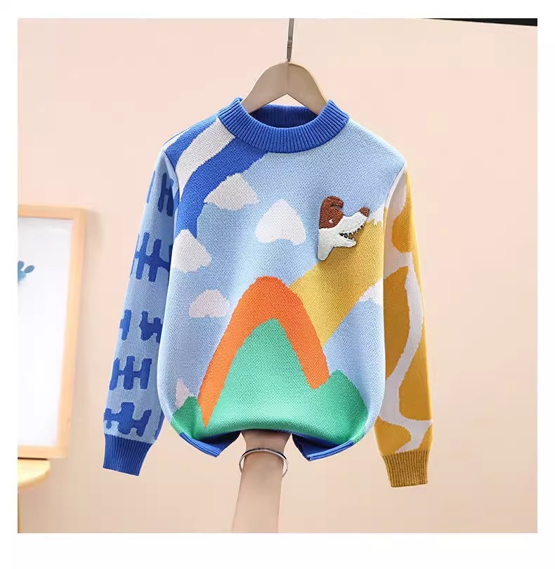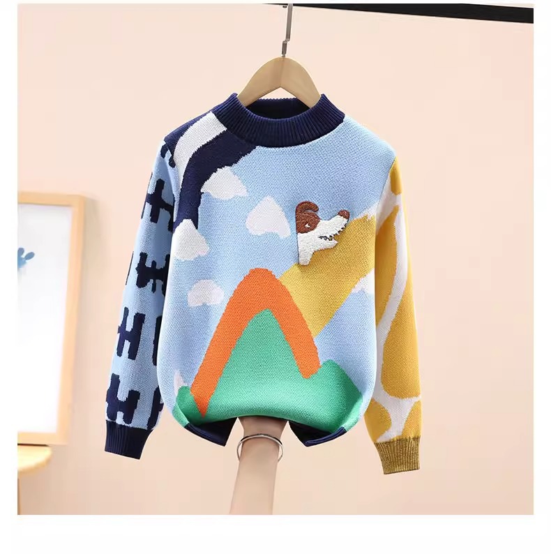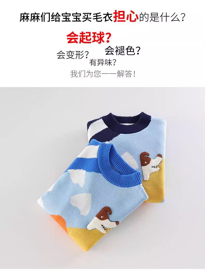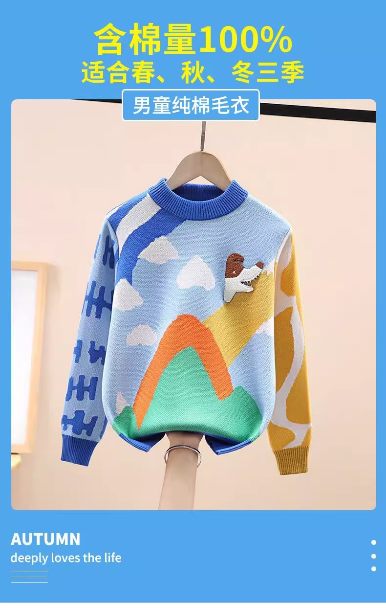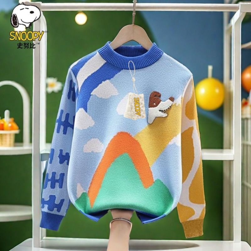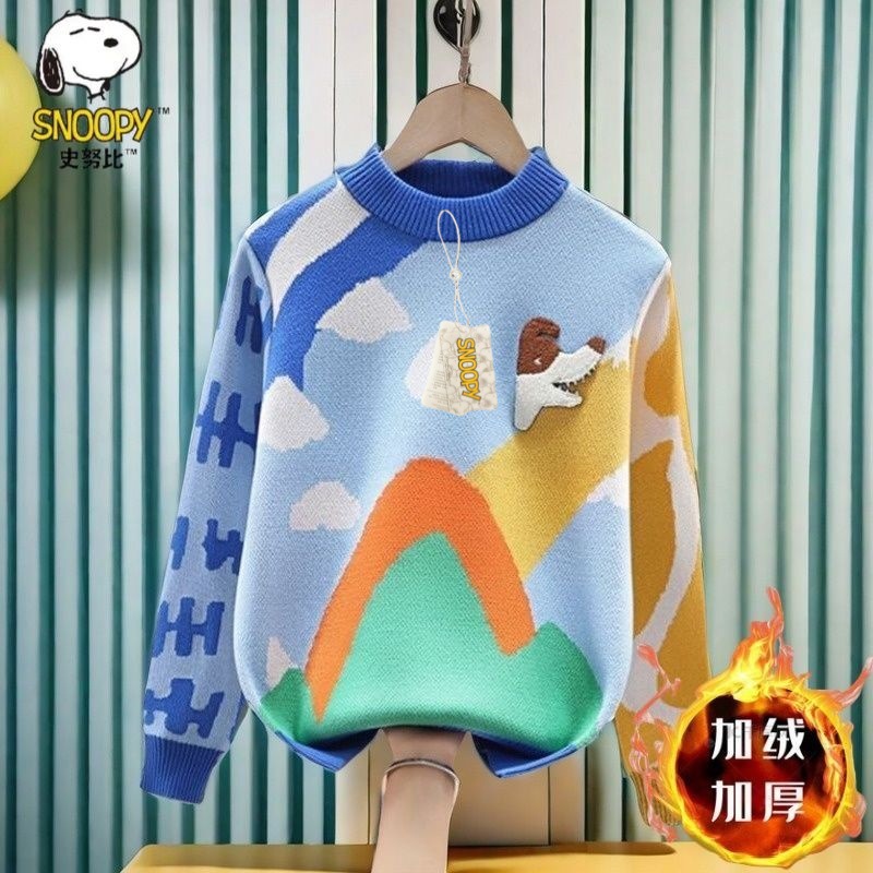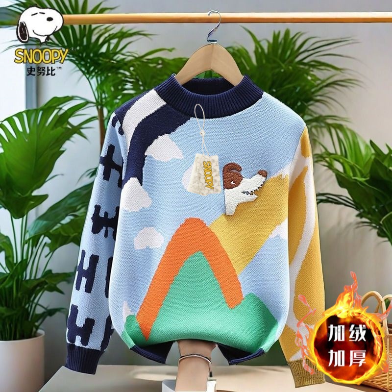 스누피 소년 순면 니트 스웨터 가을, 겨울 소년의 멋진 바닥 셔츠 플러스 벨벳 두꺼운 어린이 풀오버스토어 가기