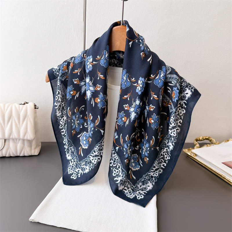 다크 블루 꽃 헤링본 코튼 및 리넨 스카프 실크 스카프 모방 벨벳 헤드 스카프 숄 선스크린 스카프 여성 스카프스토어 가기