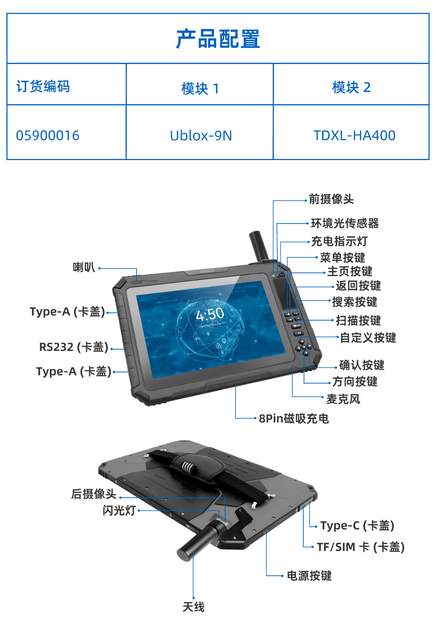 • 8+128G/회색/1200*1920/1000nits/M9N/SMA-GPS+ 단일 주파수 안테나