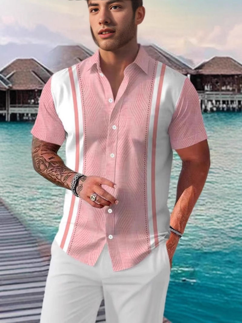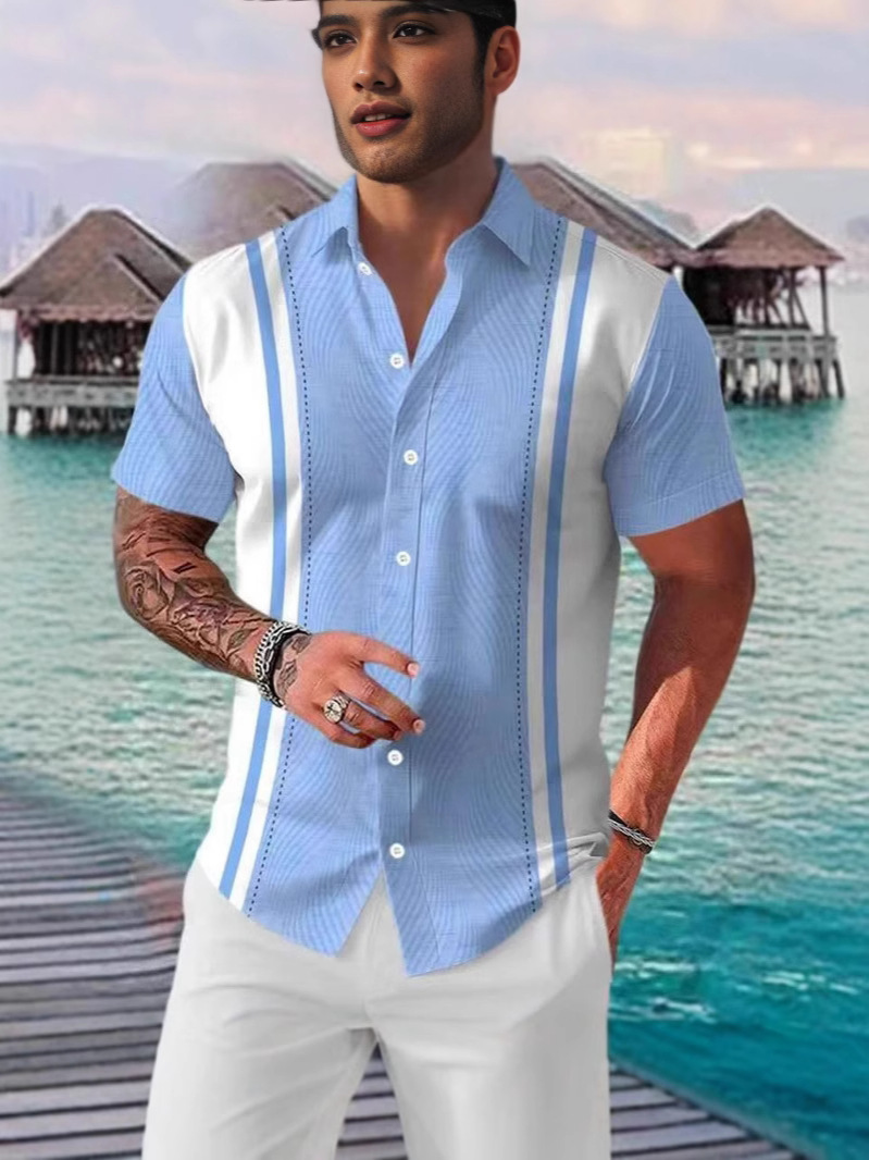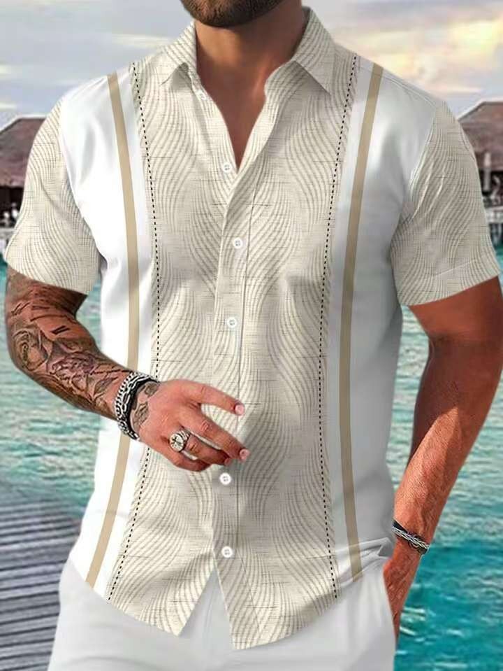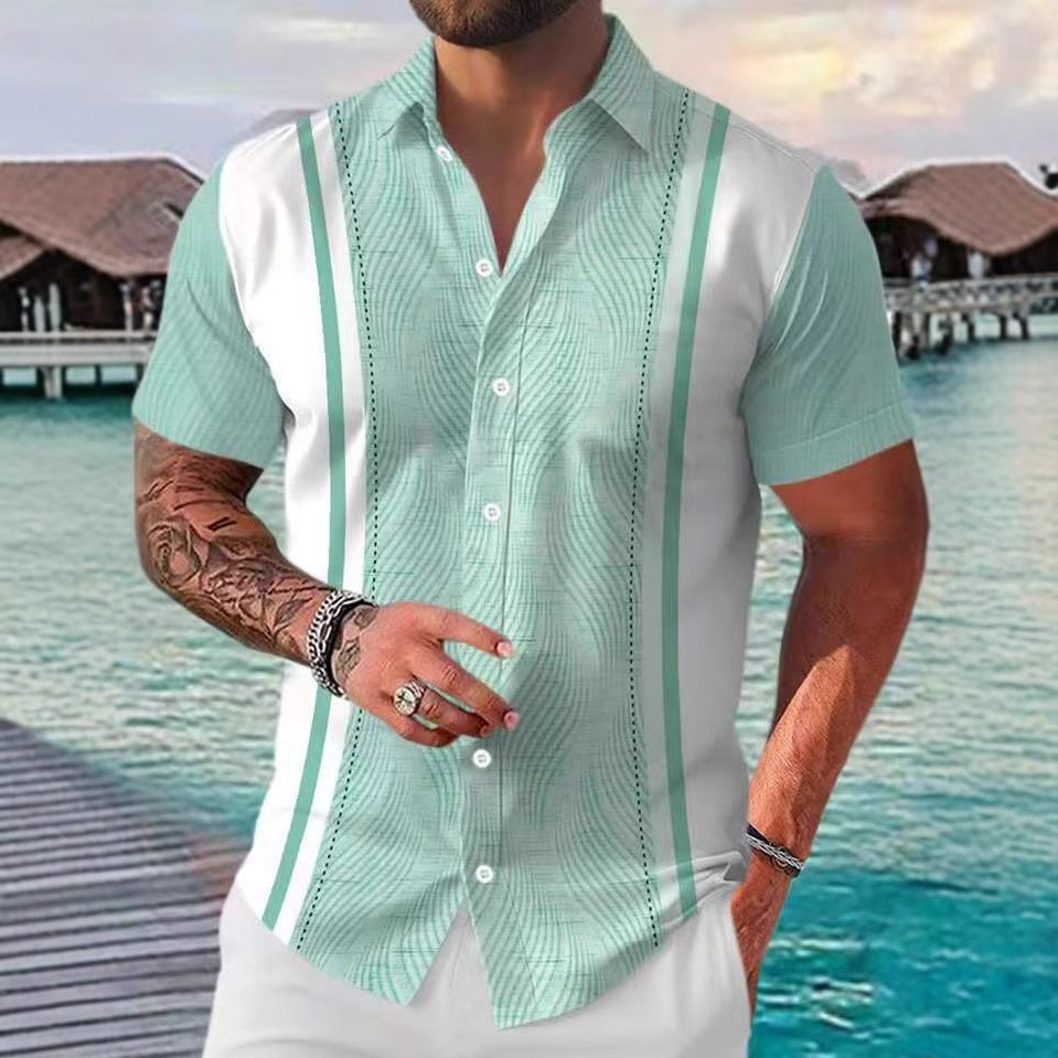 국경을 넘는 유럽과 미국 남성 셔츠 새로운 여름 얇은 통기성 해변 캐주얼 프린트 스트라이프 반팔 셔츠