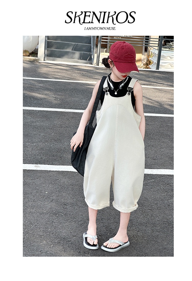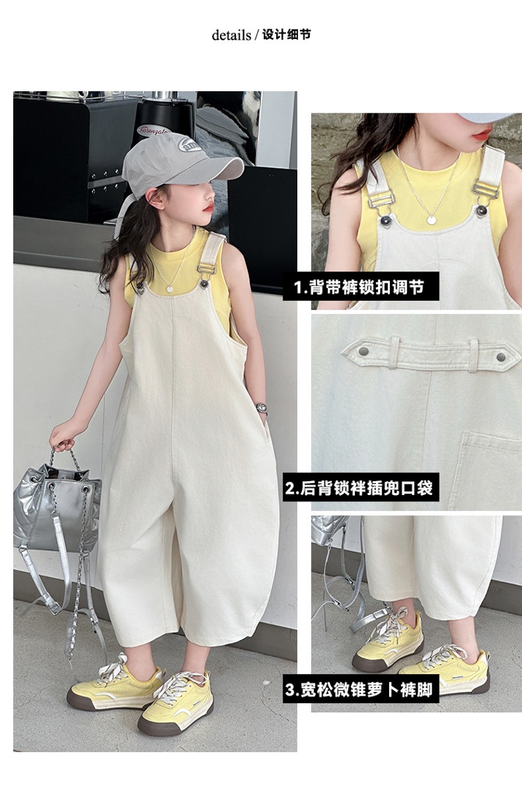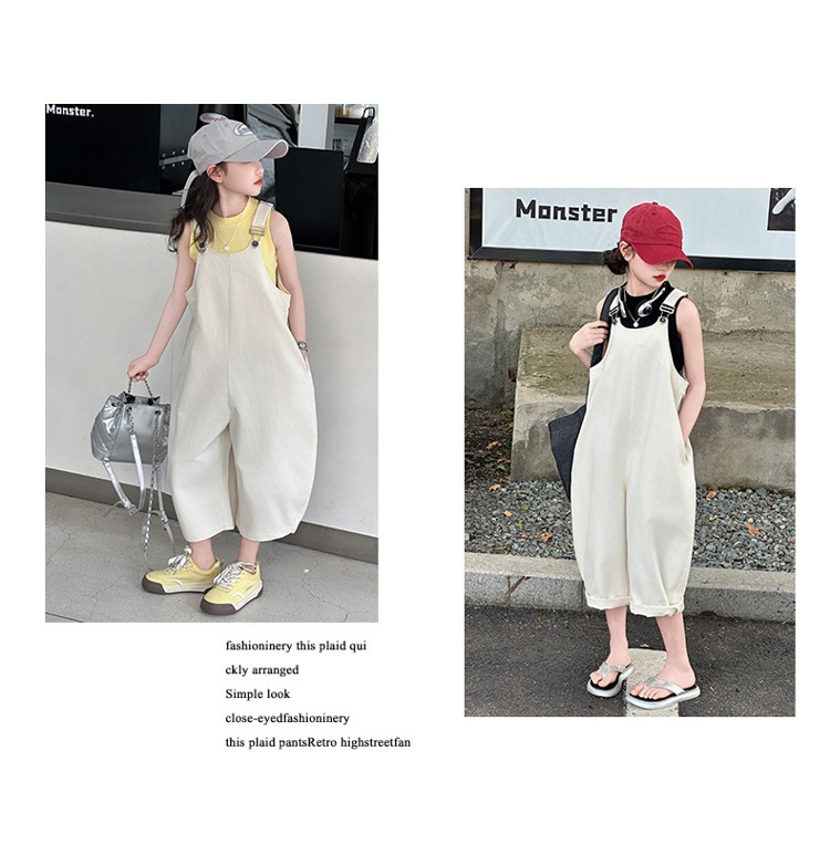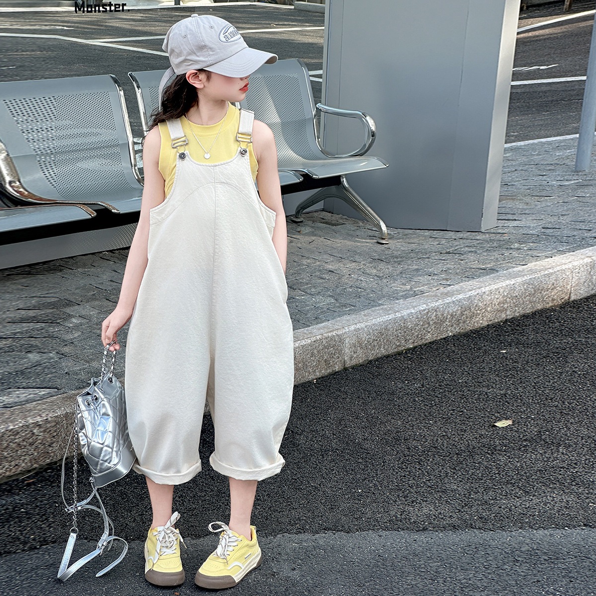 소녀 서스펜더 바지 2025 새로운 봄과 여름 유행 어린이 바지 소녀 큰 아이들의 세련된 면 바지 카프리 서스펜더