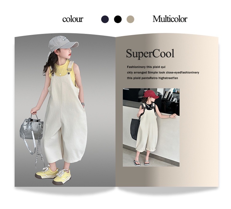 소녀 서스펜더 바지 2025 새로운 봄과 여름 유행 어린이 바지 소녀 큰 아이들의 세련된 면 바지 카프리 서스펜더스토어 가기