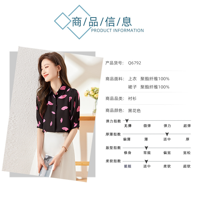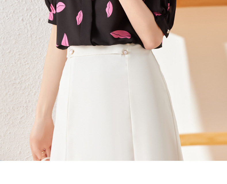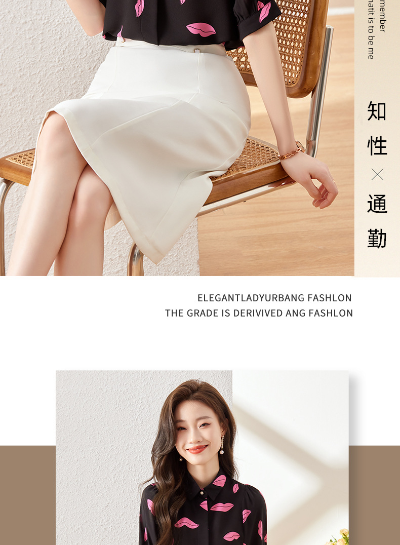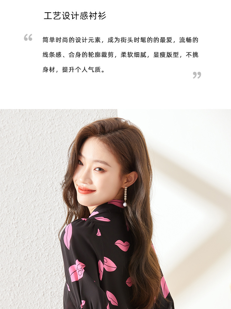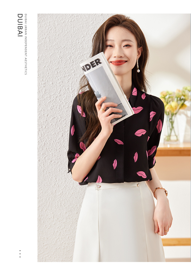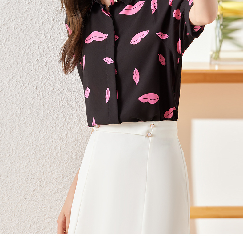 홍콩 스타일 패션 입술 여성용 여름 블랙 캐주얼 셔츠 올매치 우아한 탑