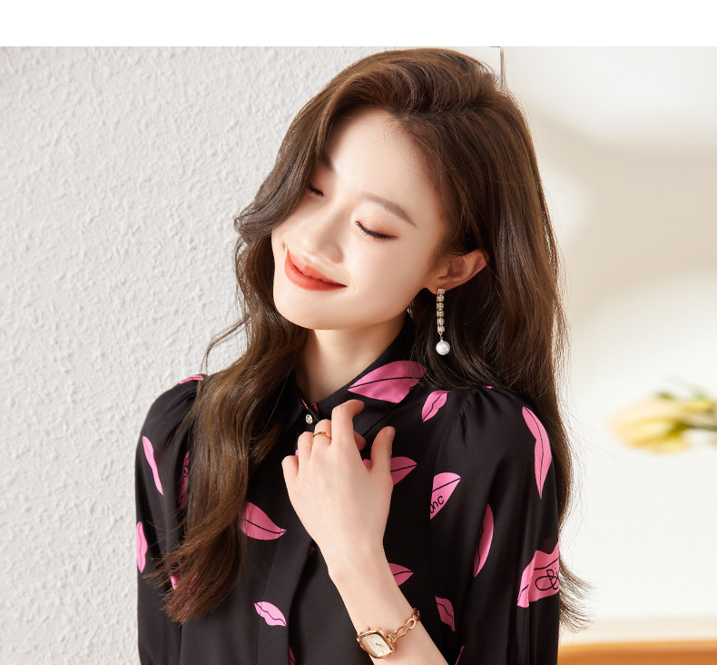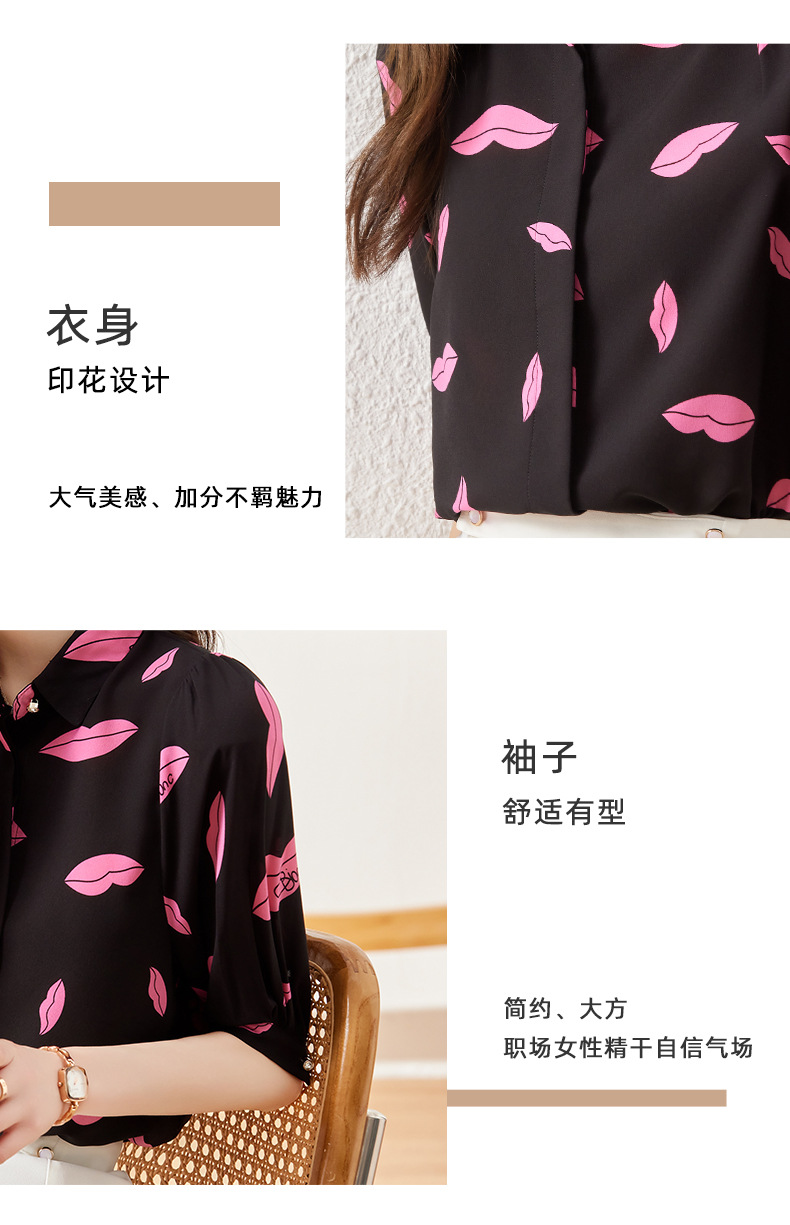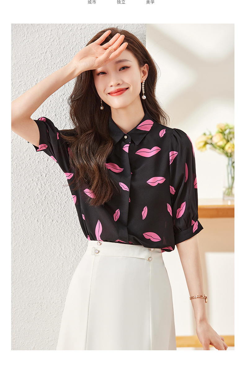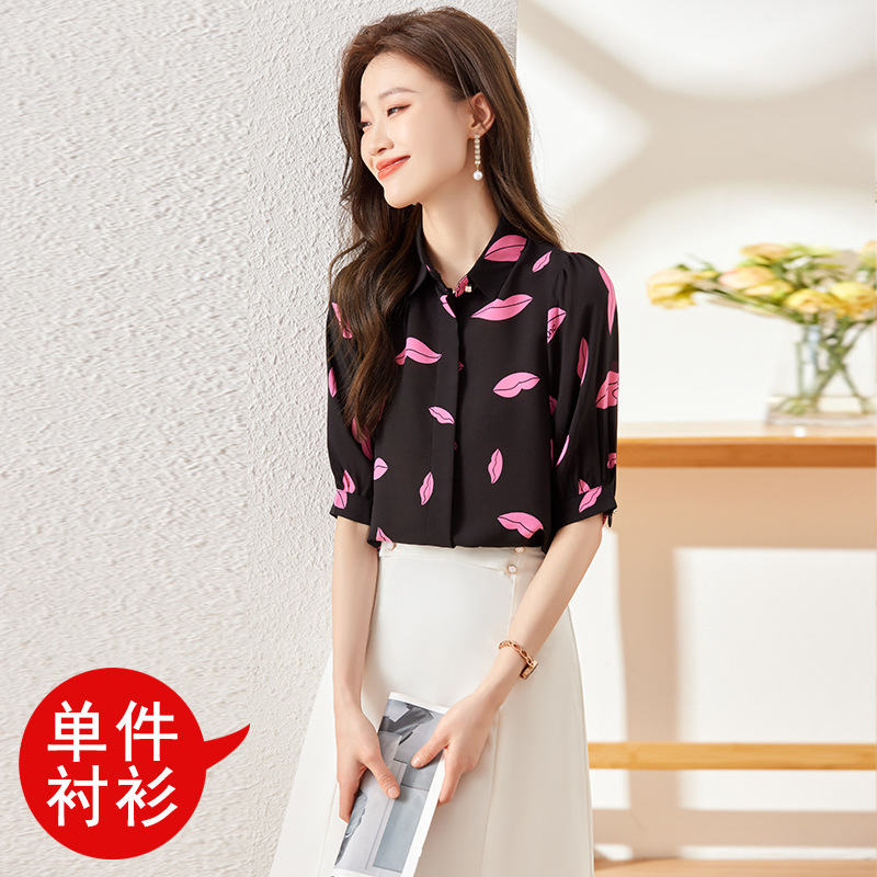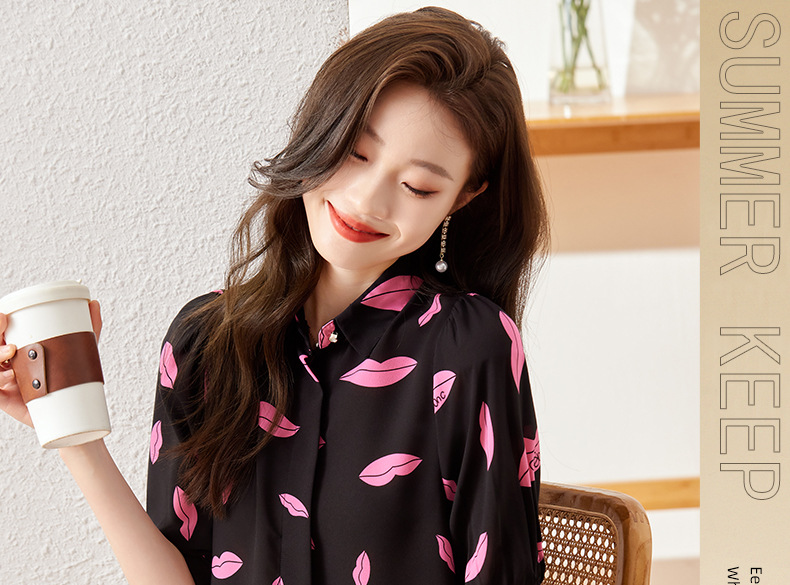 홍콩 스타일 패션 입술 여성용 여름 블랙 캐주얼 셔츠 올매치 우아한 탑스토어 가기