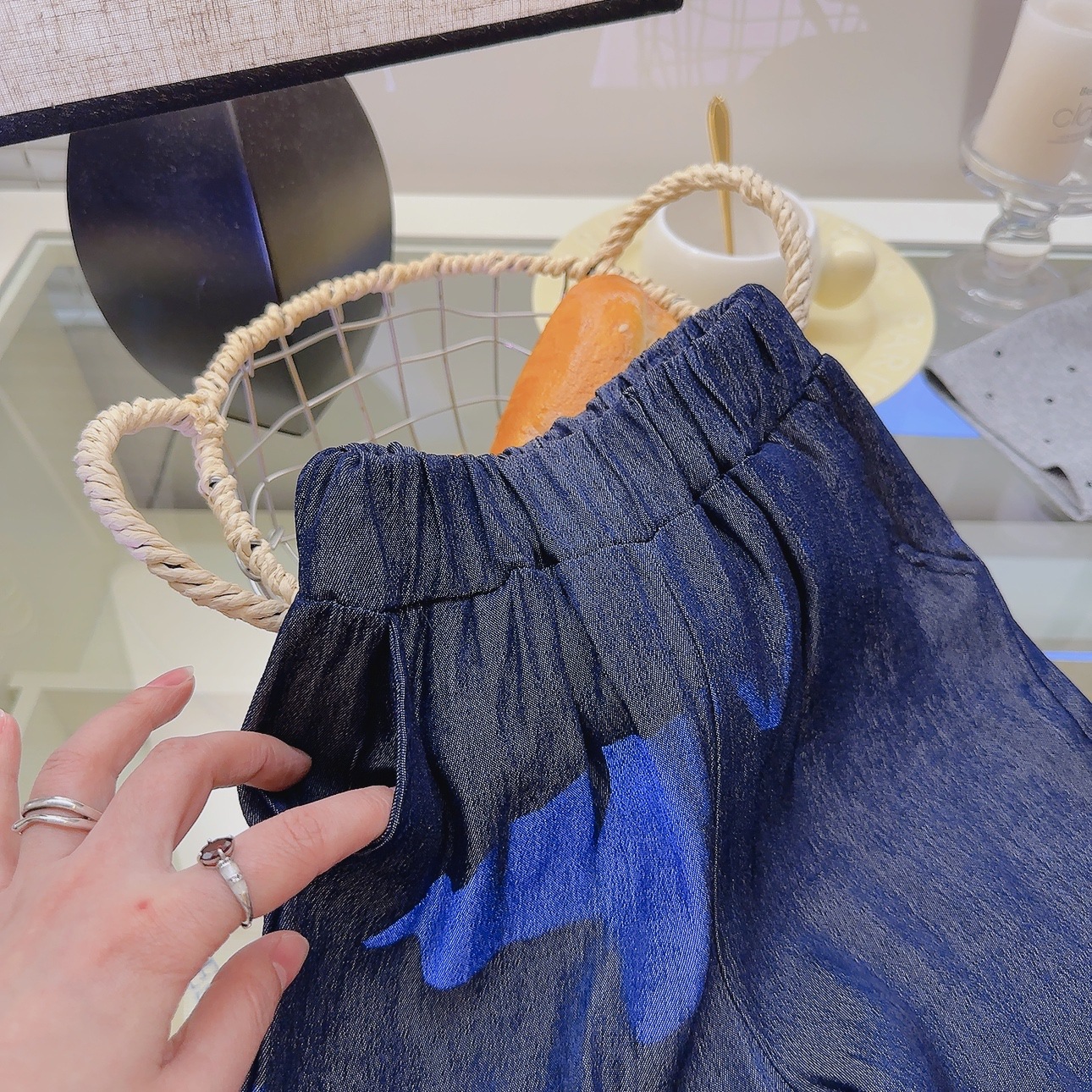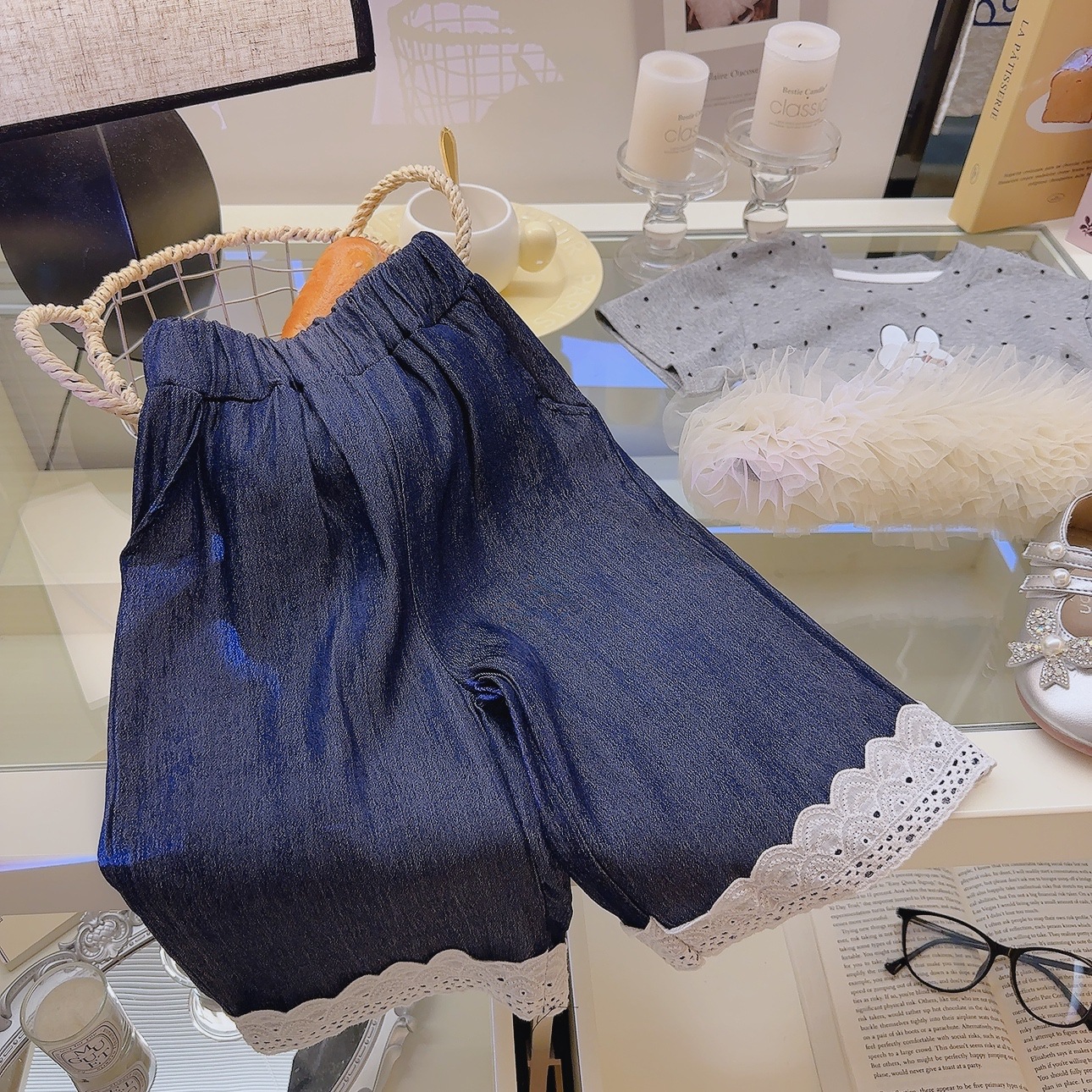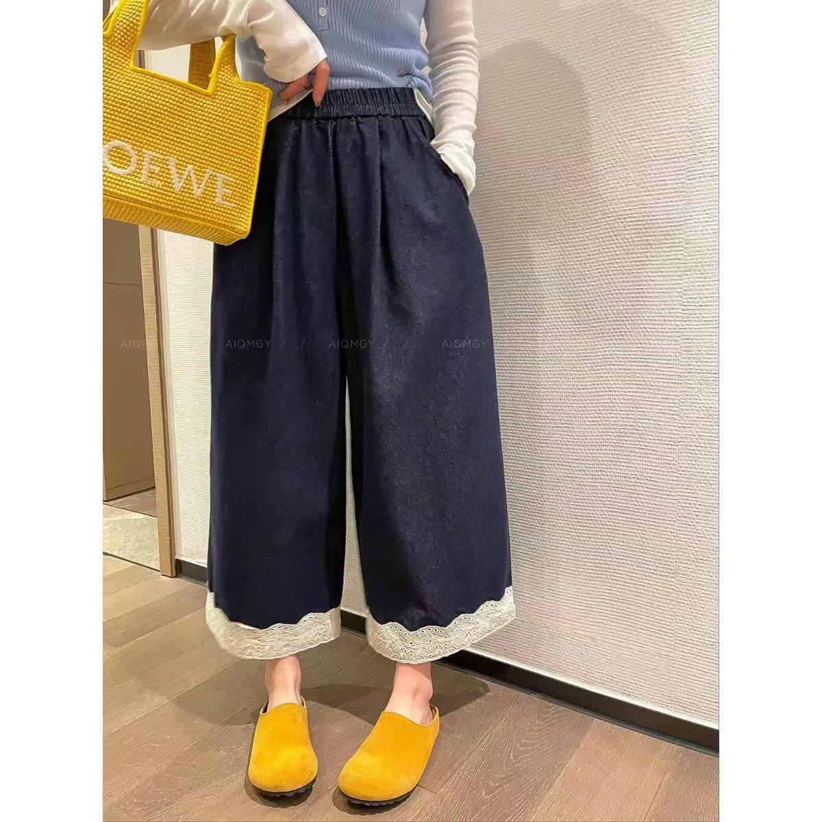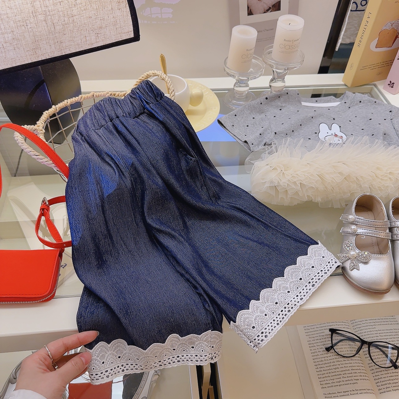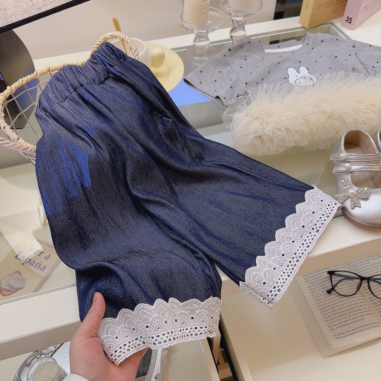 2025 여름 유행 얇은 레이스 청바지 소녀 자른 넓은 다리 바지 느슨한 슬리밍 스트레이트 캐주얼 바지스토어 가기