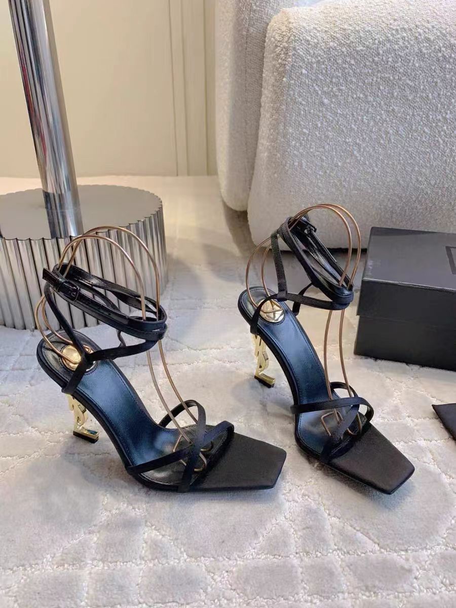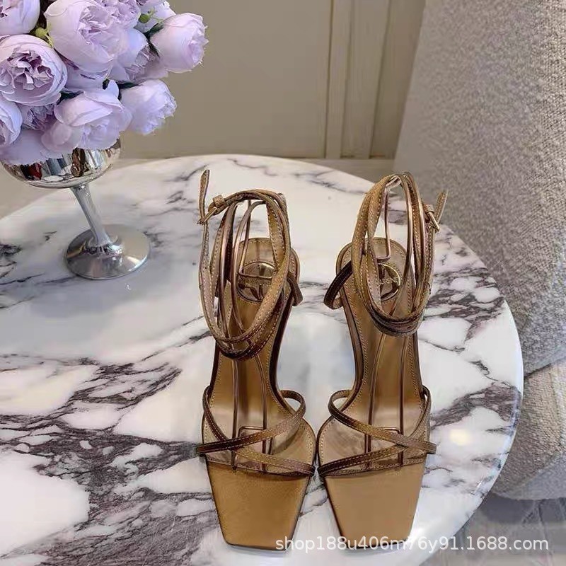 신하오 신발 공장 원라인 버클 스트랩 샌들 여성용 여름 2025 신상 유럽 및 미국 스타일 골드 레터 힐 섹시 하이힐스토어 가기