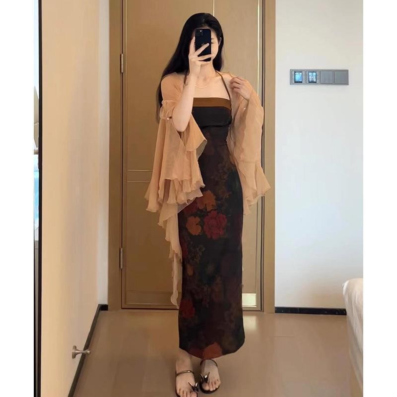 내셔널 스타일 러플 쉬폰 선 스크린 의류 여성 여름 새로운 도착 스커트 작은 목도리 카디건 자켓을 입고 경량 블라우스