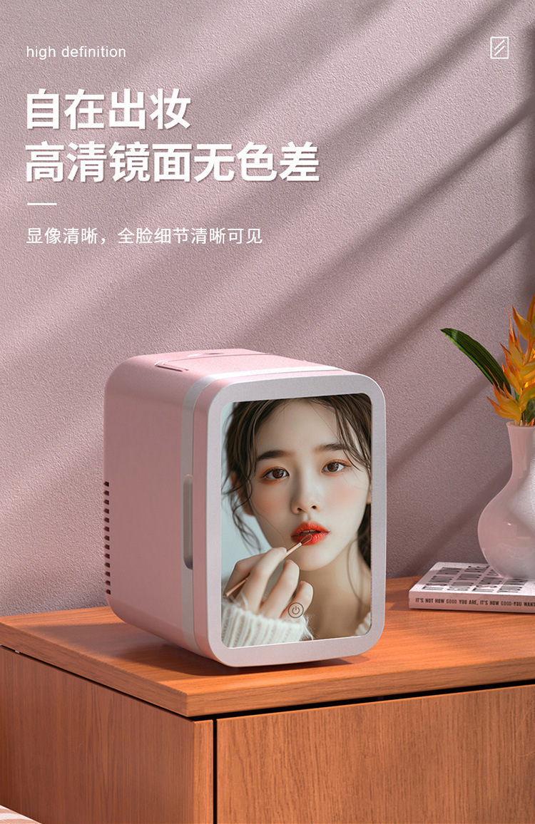 자동차 미용 냉장고 미니 화장품 냉장고 화장품 거울이있는 음료 가열 상자 가정용 및 자동차 이중 용도 절연 상자