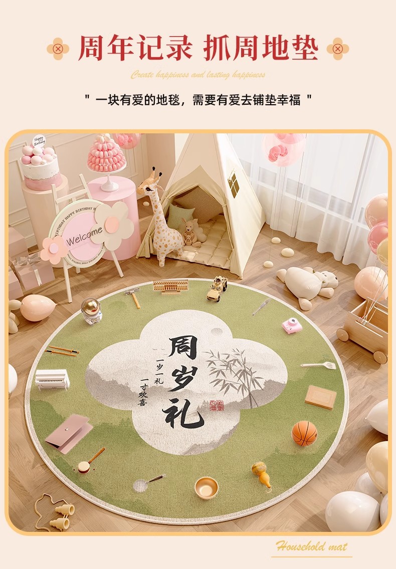 만화 1세 생일 장식 카펫 홈 어린이 방 얼룩 방지 및 관리가 쉬운 크리스탈 벨벳 바닥 매트스토어 가기