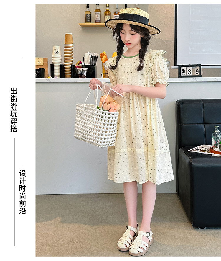 여자 꽃 드레스 2025 여름 새로운 스타일 공주 드레스 중대형 어린이 유행 느슨한 버전 긴 스커트스토어 가기