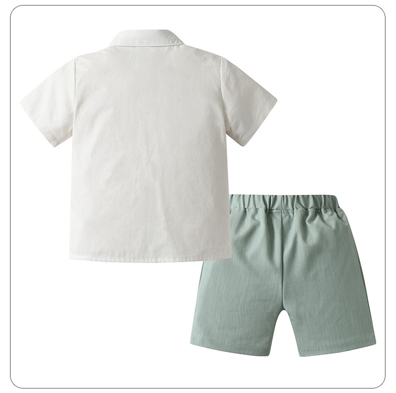 一手货源绅士西装两件套儿童衣服宝宝夏季短袖短裤假马甲男童套装
