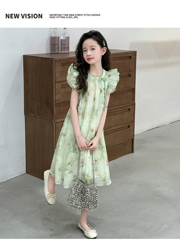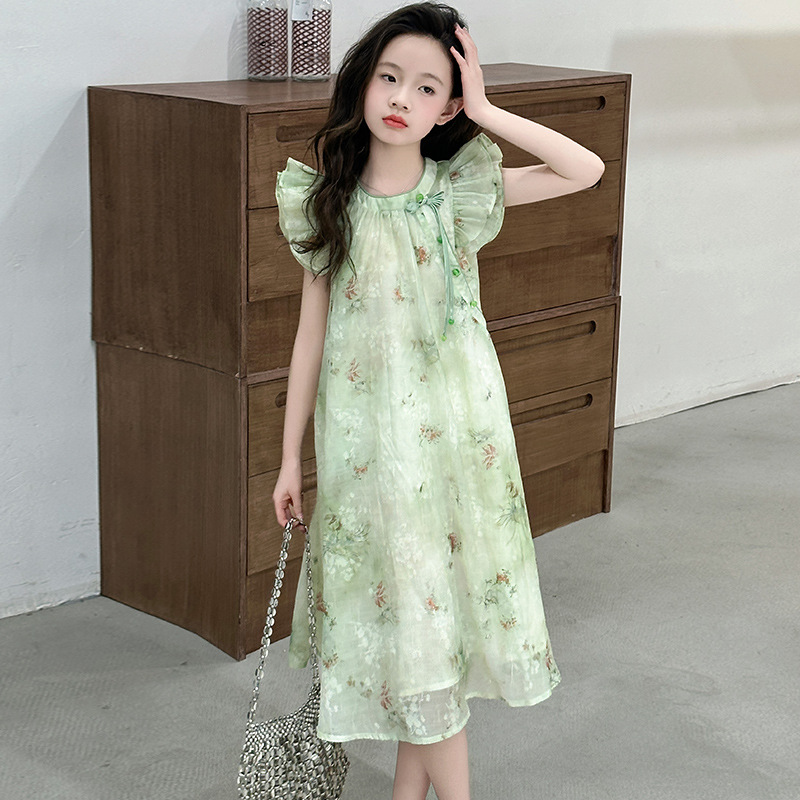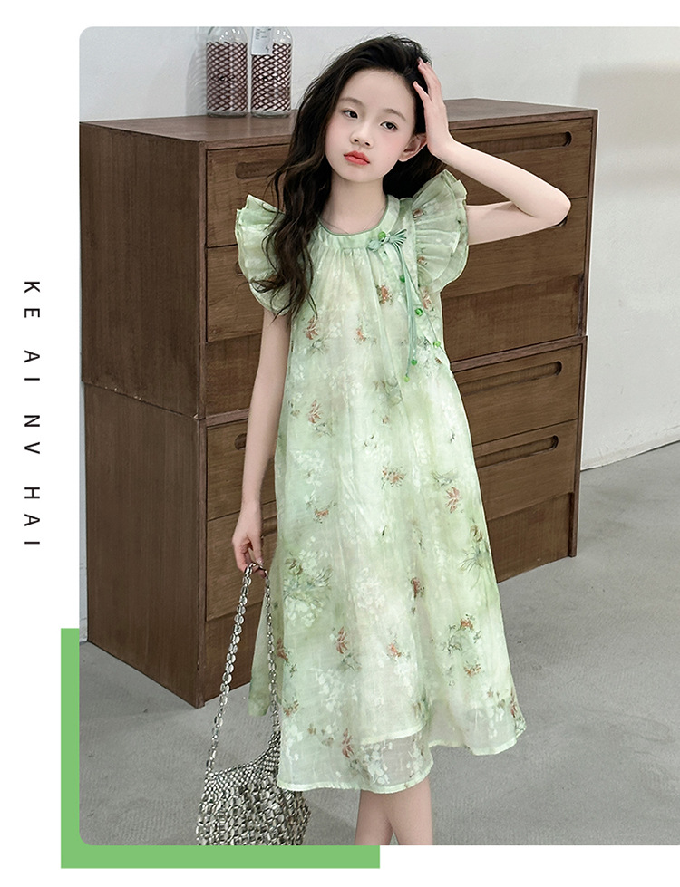 소녀 여름 원피스 어린이 작은 비행 소매 꽃 치마 2025 새로운 아동복 플라잉 슬리브 꽃 원피스 트렌디
