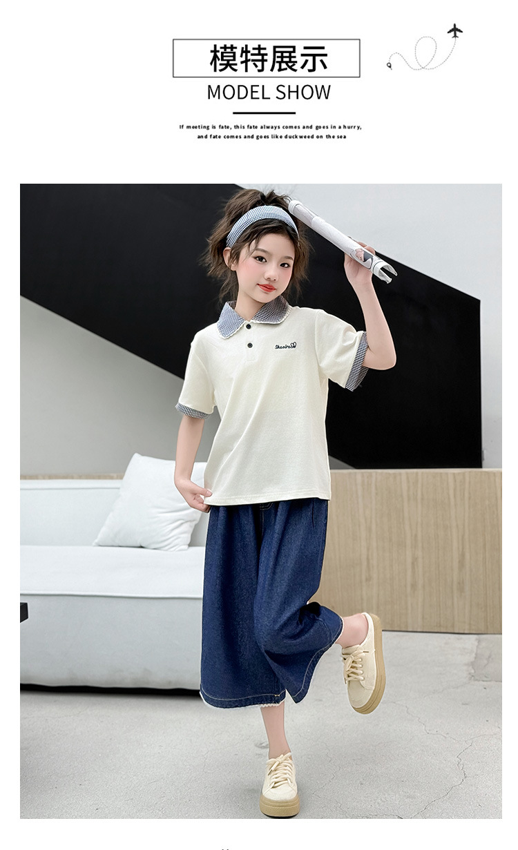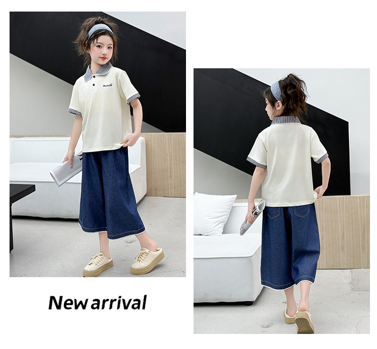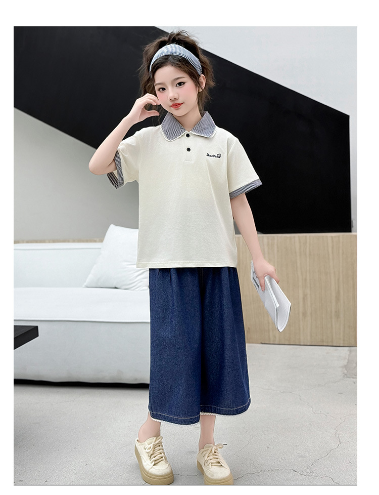 큰 어린이를위한 고품질 소녀 여름 얇은 반팔 폴로 셔츠 정장 2025 여름 새로운 유행 투피스 세트스토어 가기