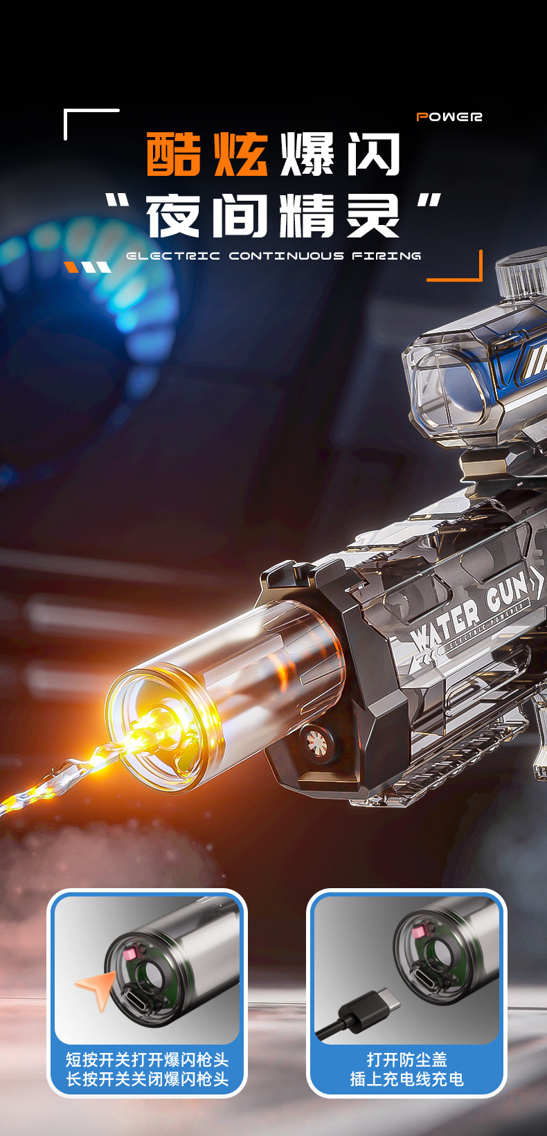 국경 간 소형 얼음 쥐 전기 물총, 자동 점멸 조명, 고압 연속 발사, 장거리 물총 도매