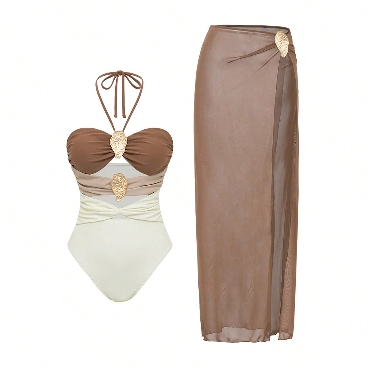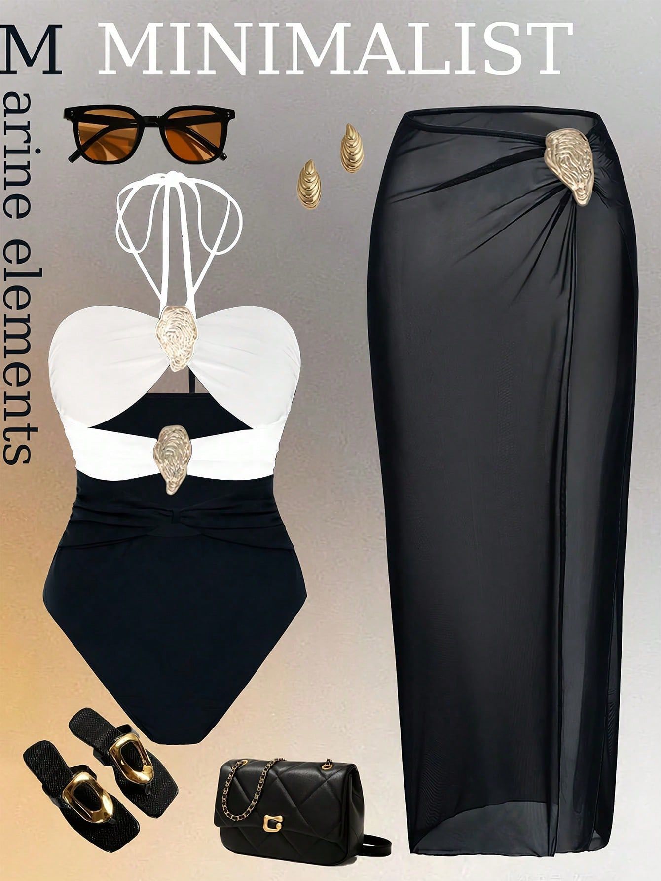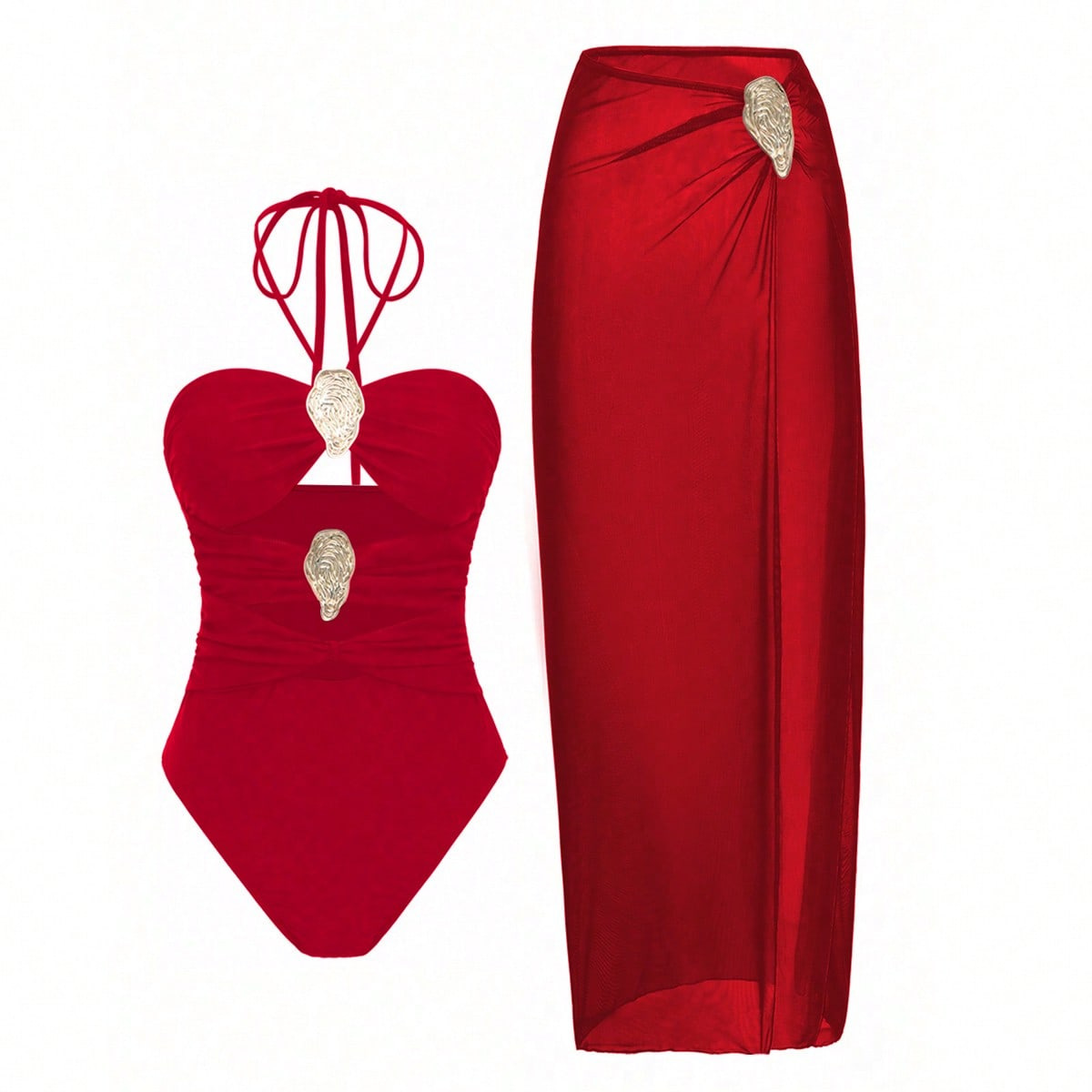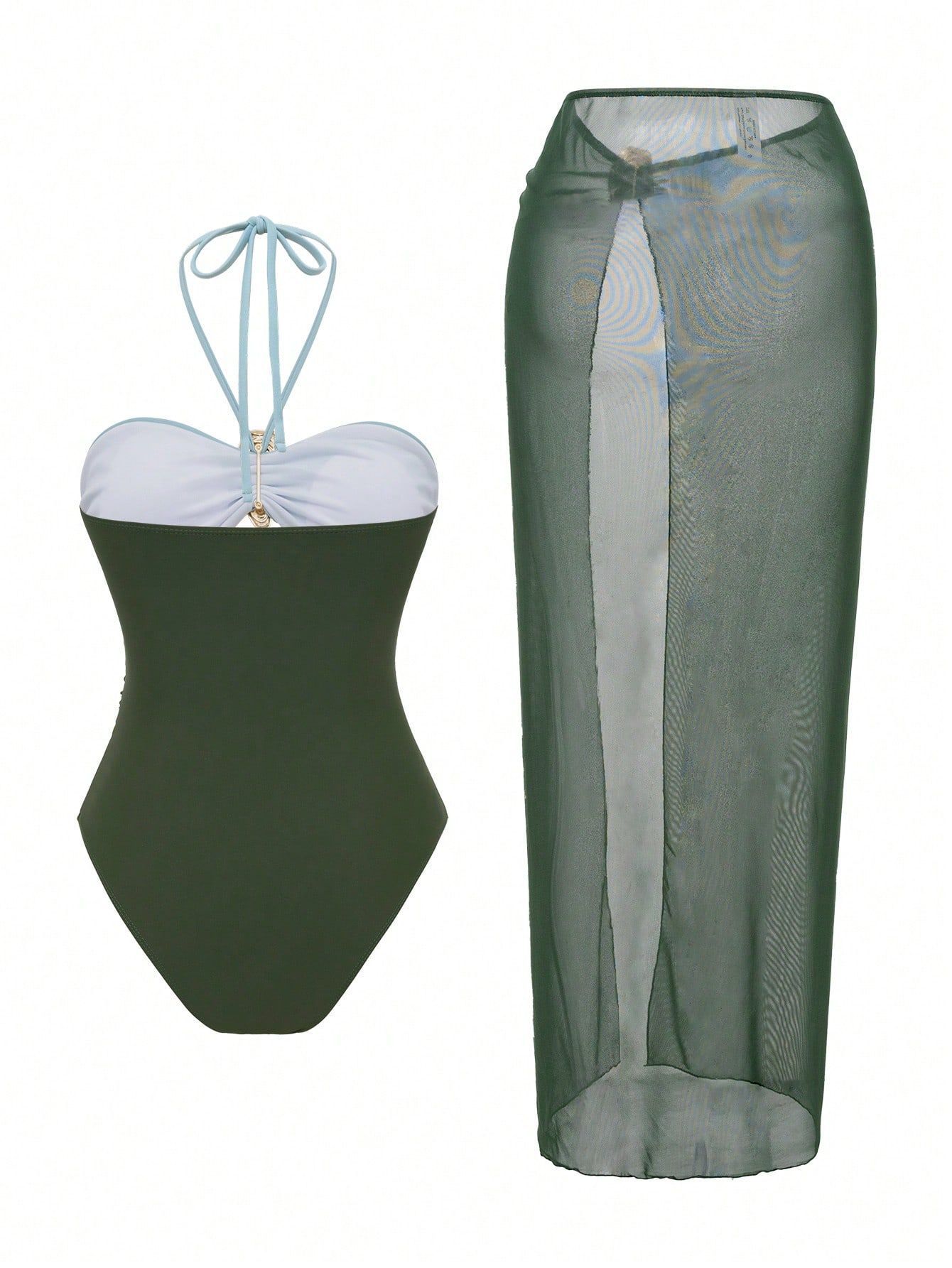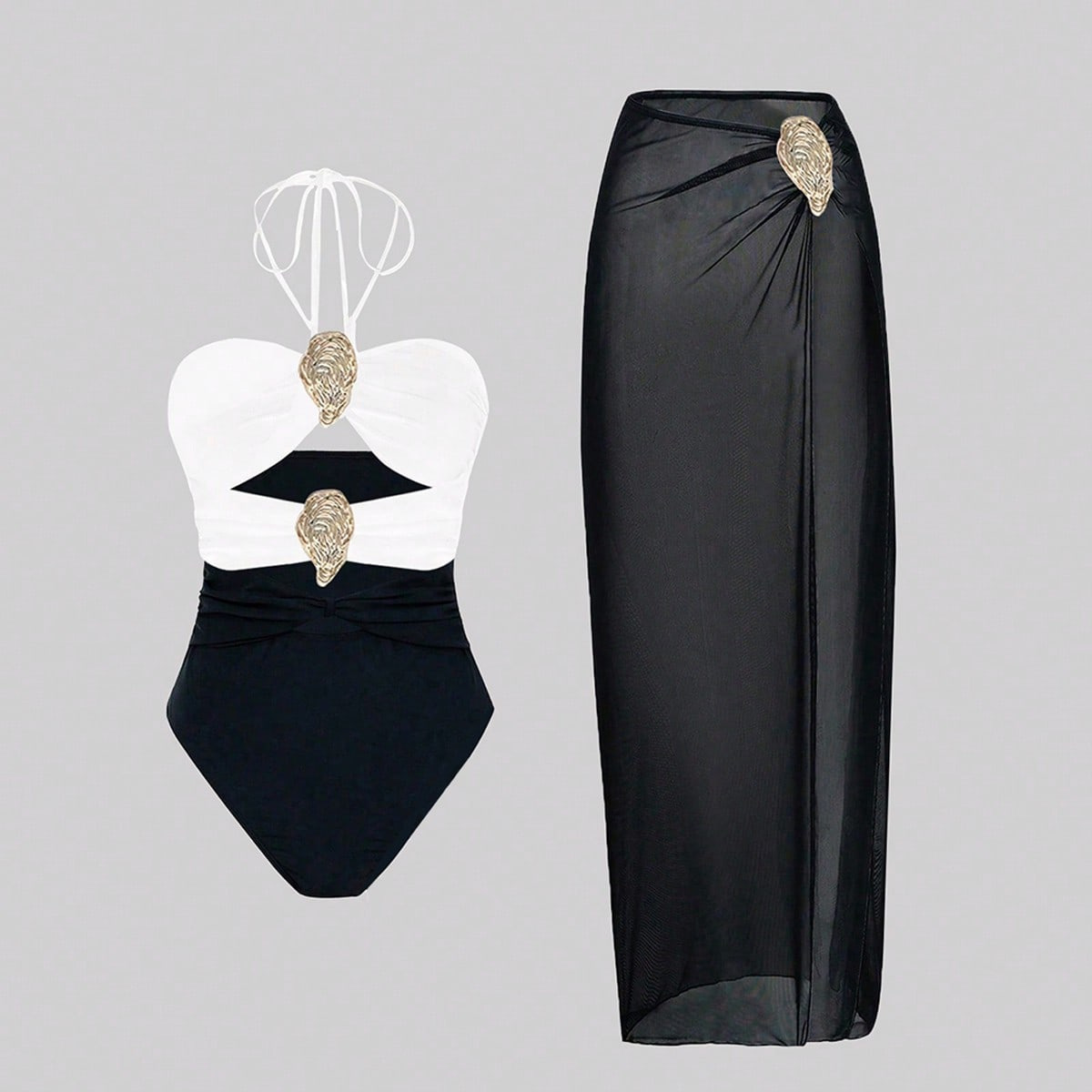 2025 대외 무역 새로운 크로스 보더 아마존 홀터넥 원피스 수영복 아마존 유럽과 미국의 여성용 온천 스커트 슈트