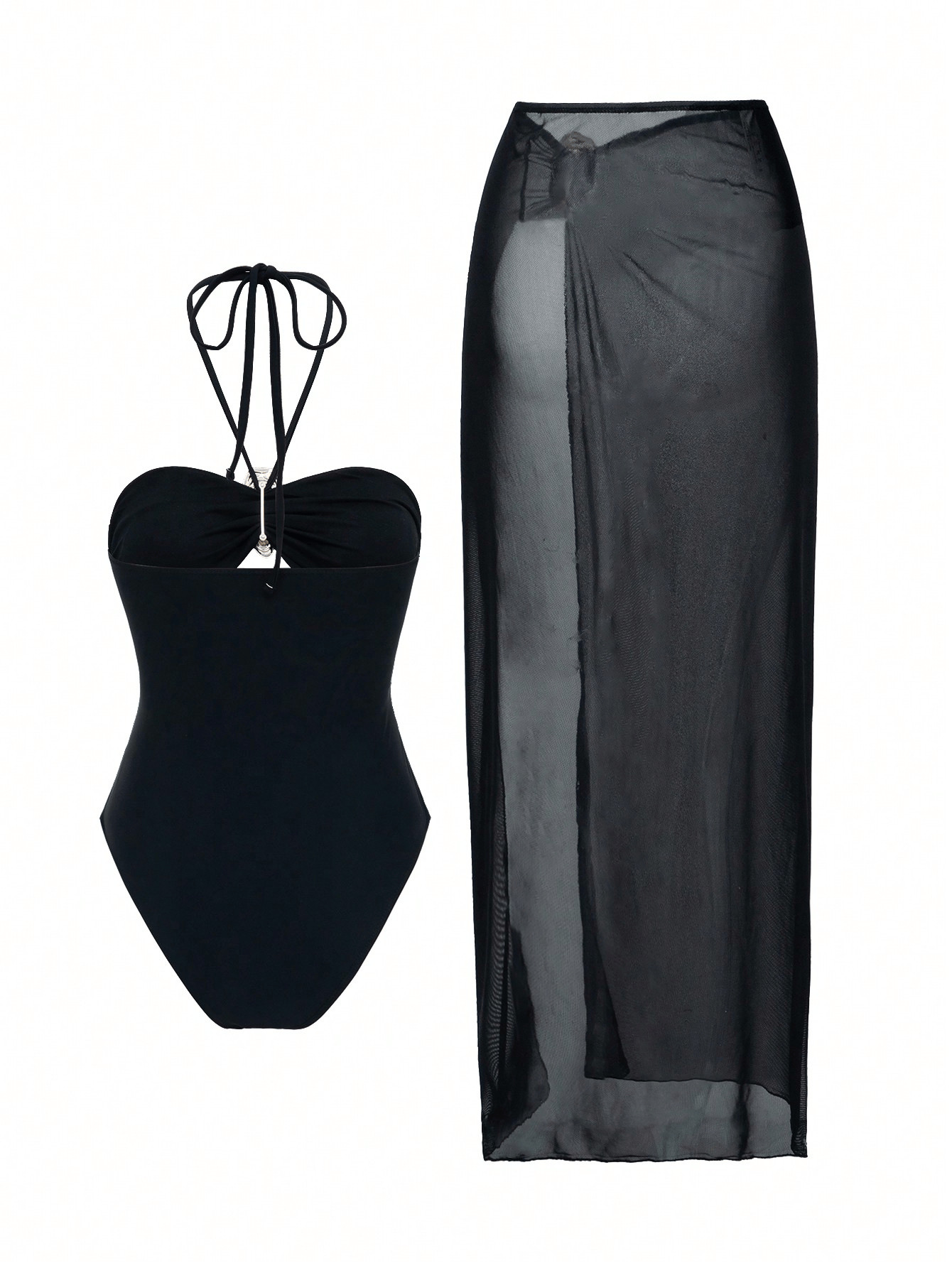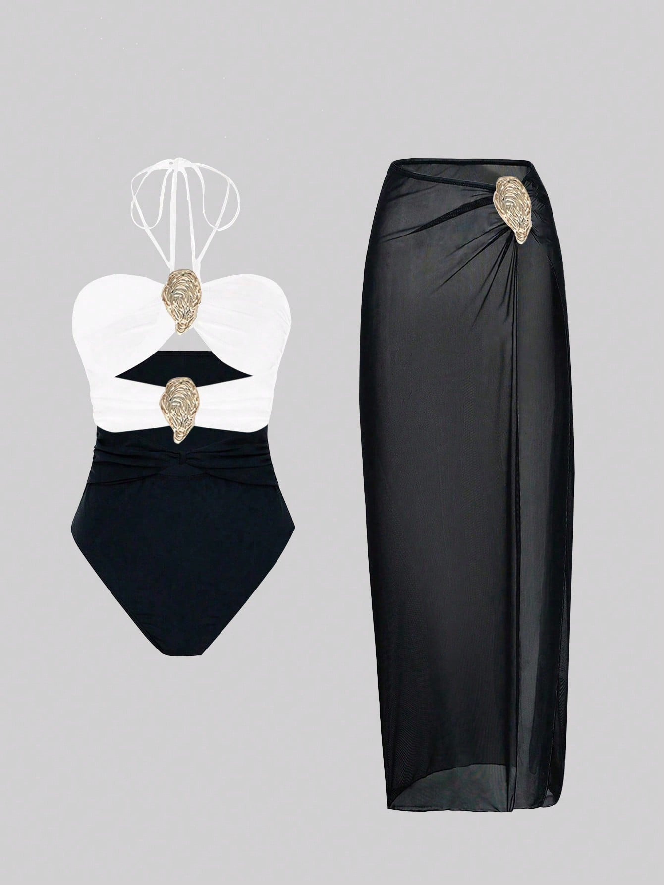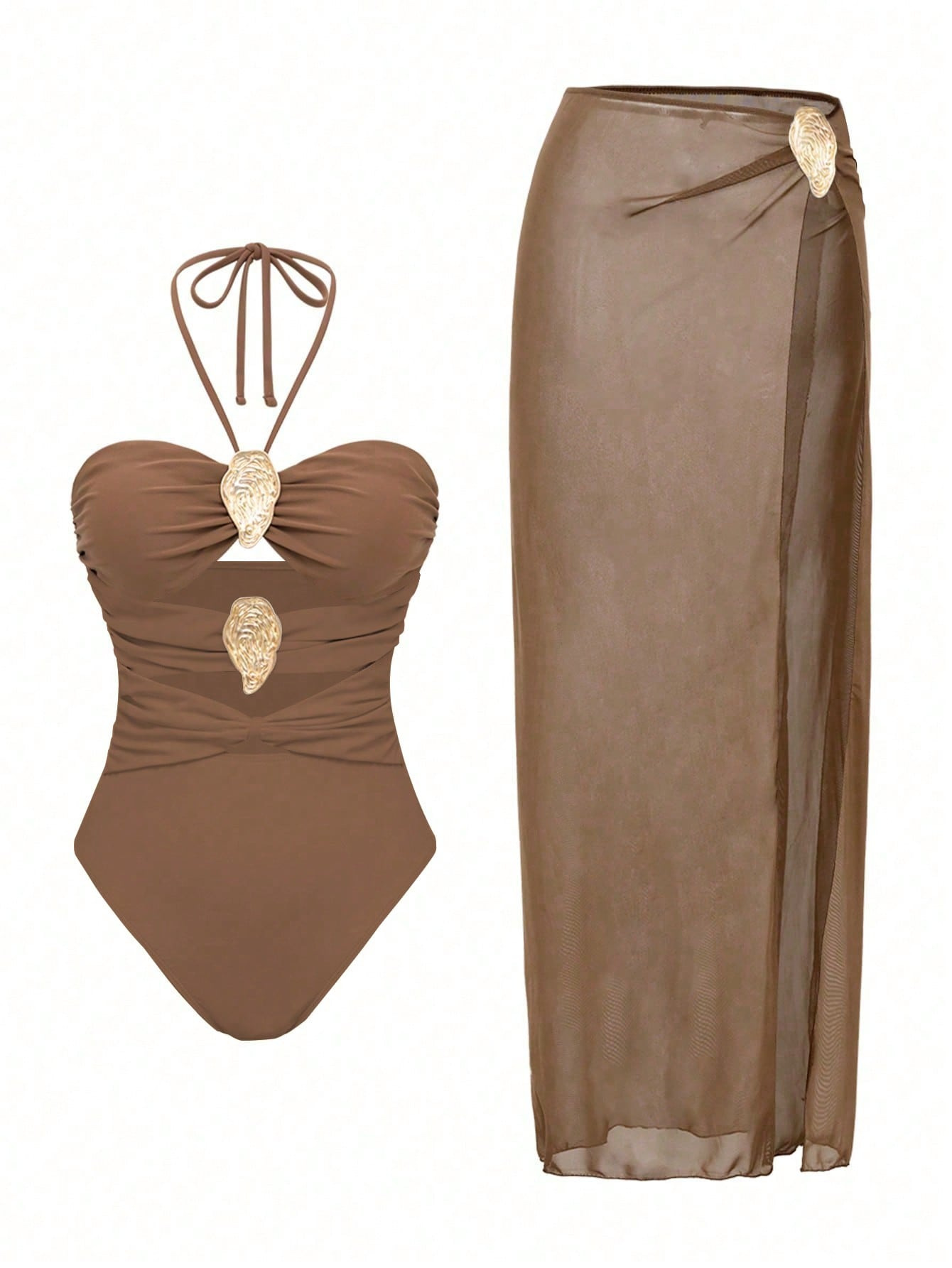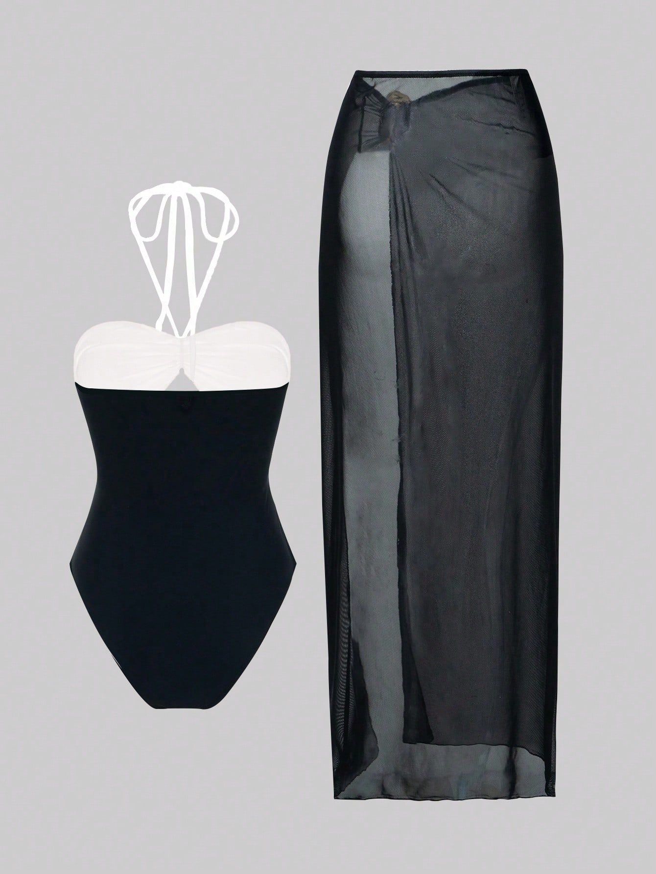 2025 대외 무역 새로운 크로스 보더 아마존 홀터넥 원피스 수영복 아마존 유럽과 미국의 여성용 온천 스커트 슈트
