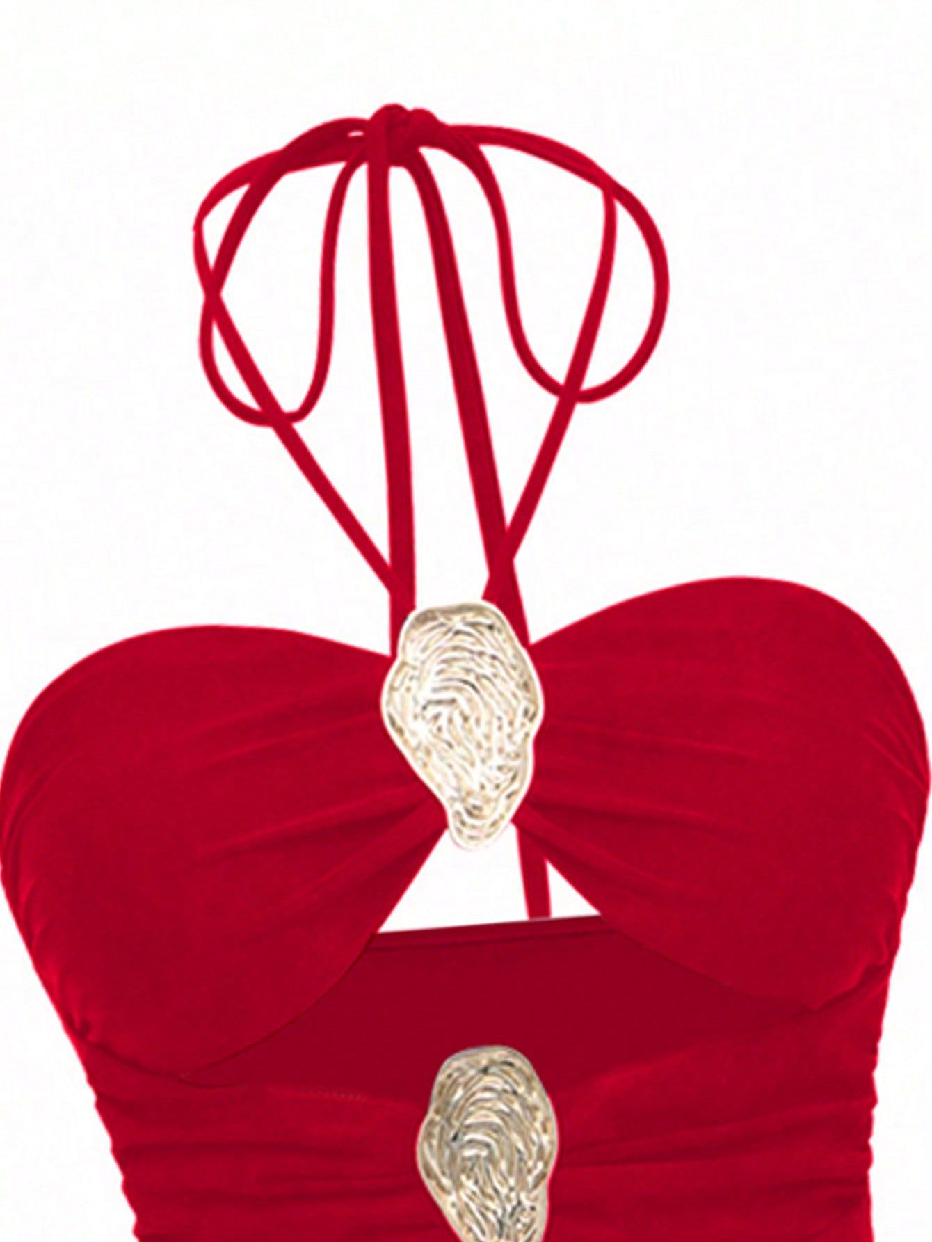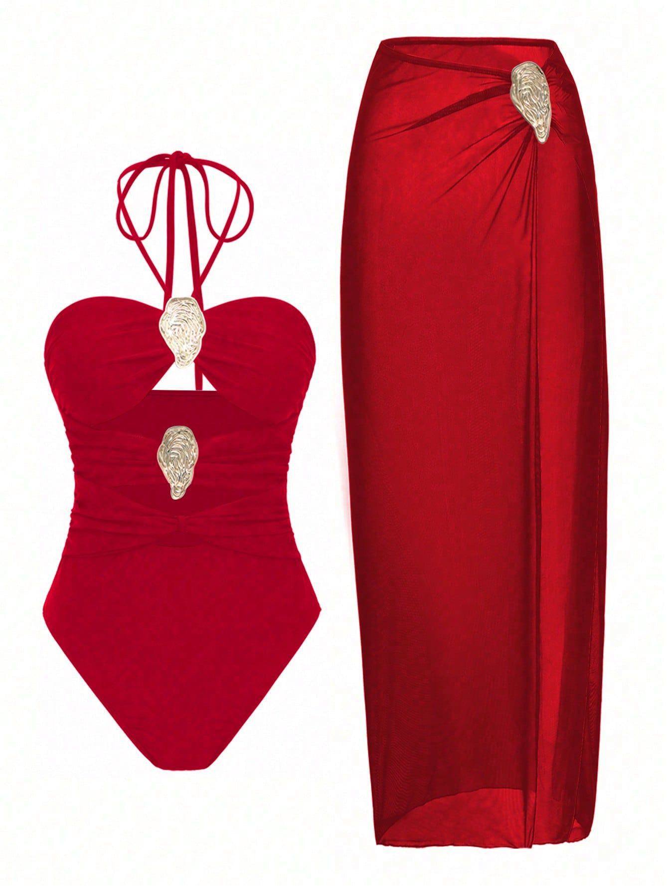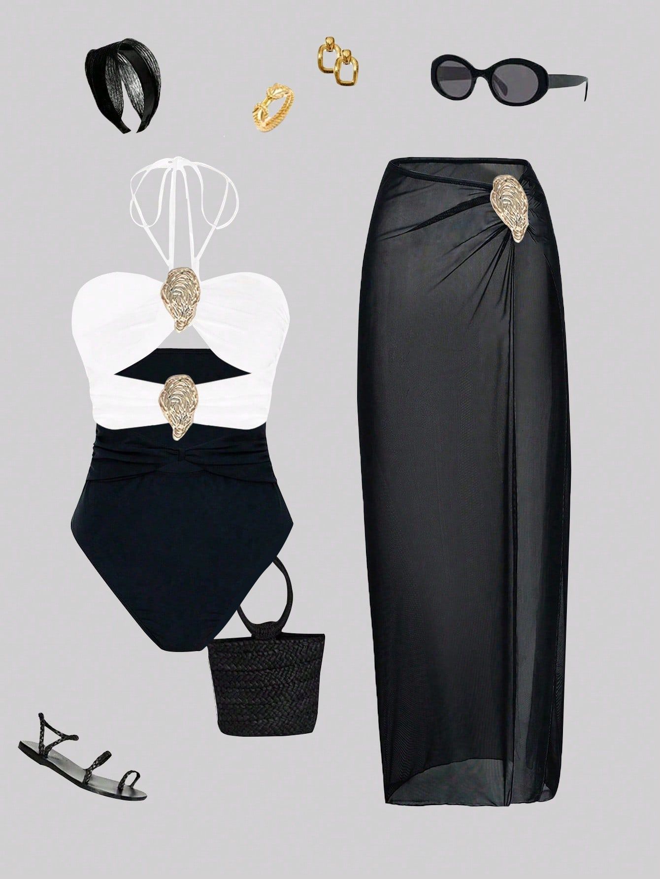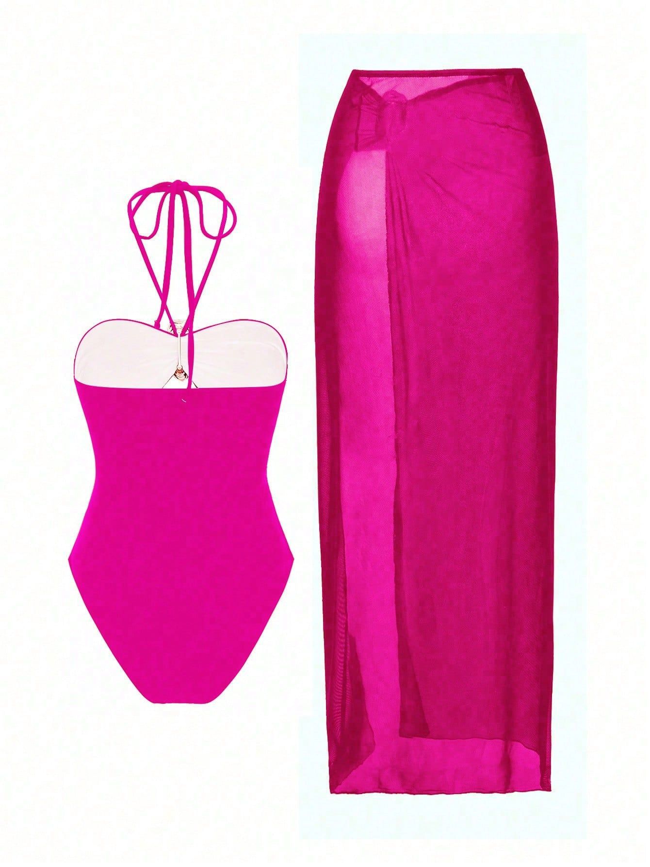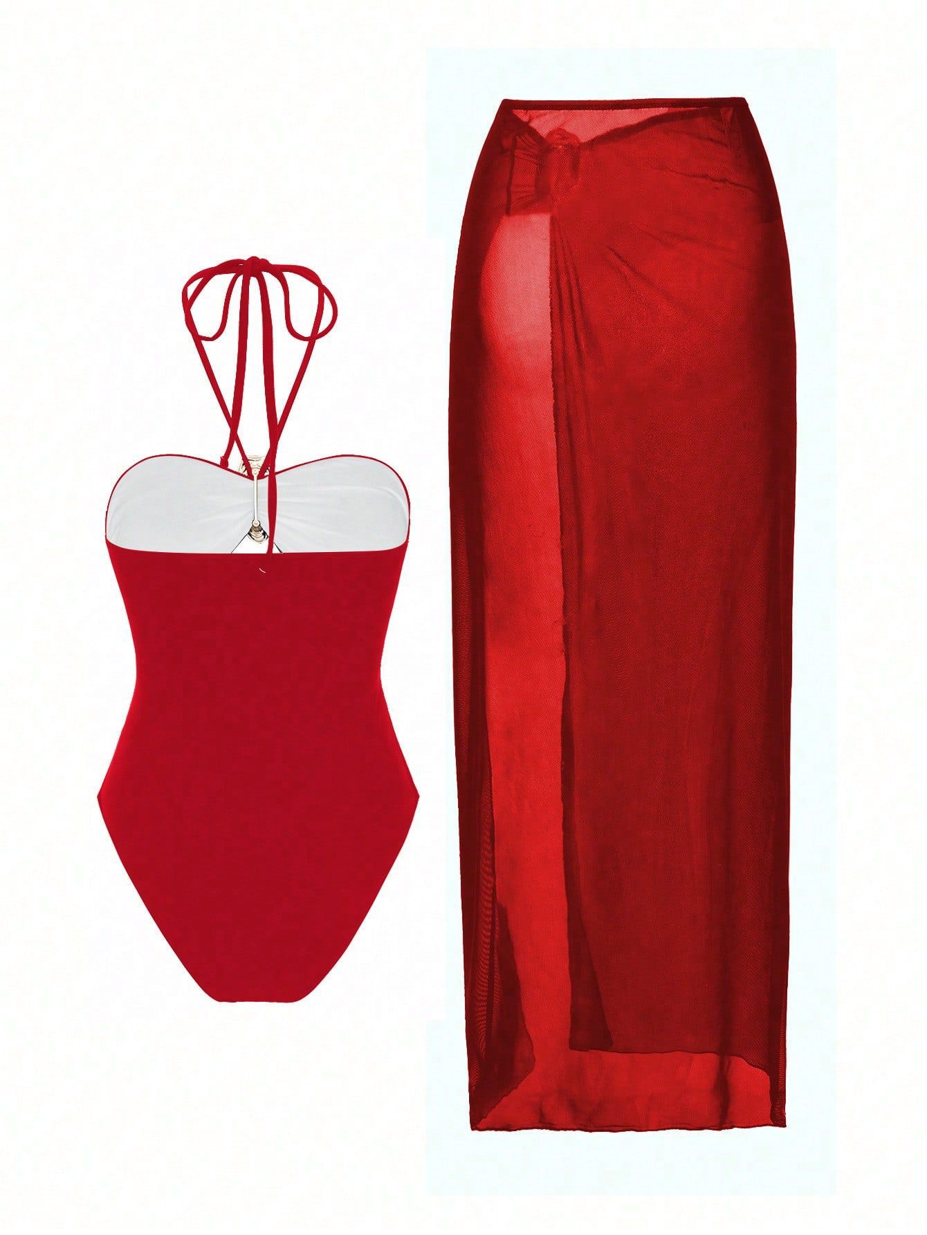 2025 대외 무역 새로운 크로스 보더 아마존 홀터넥 원피스 수영복 아마존 유럽과 미국의 여성용 온천 스커트 슈트