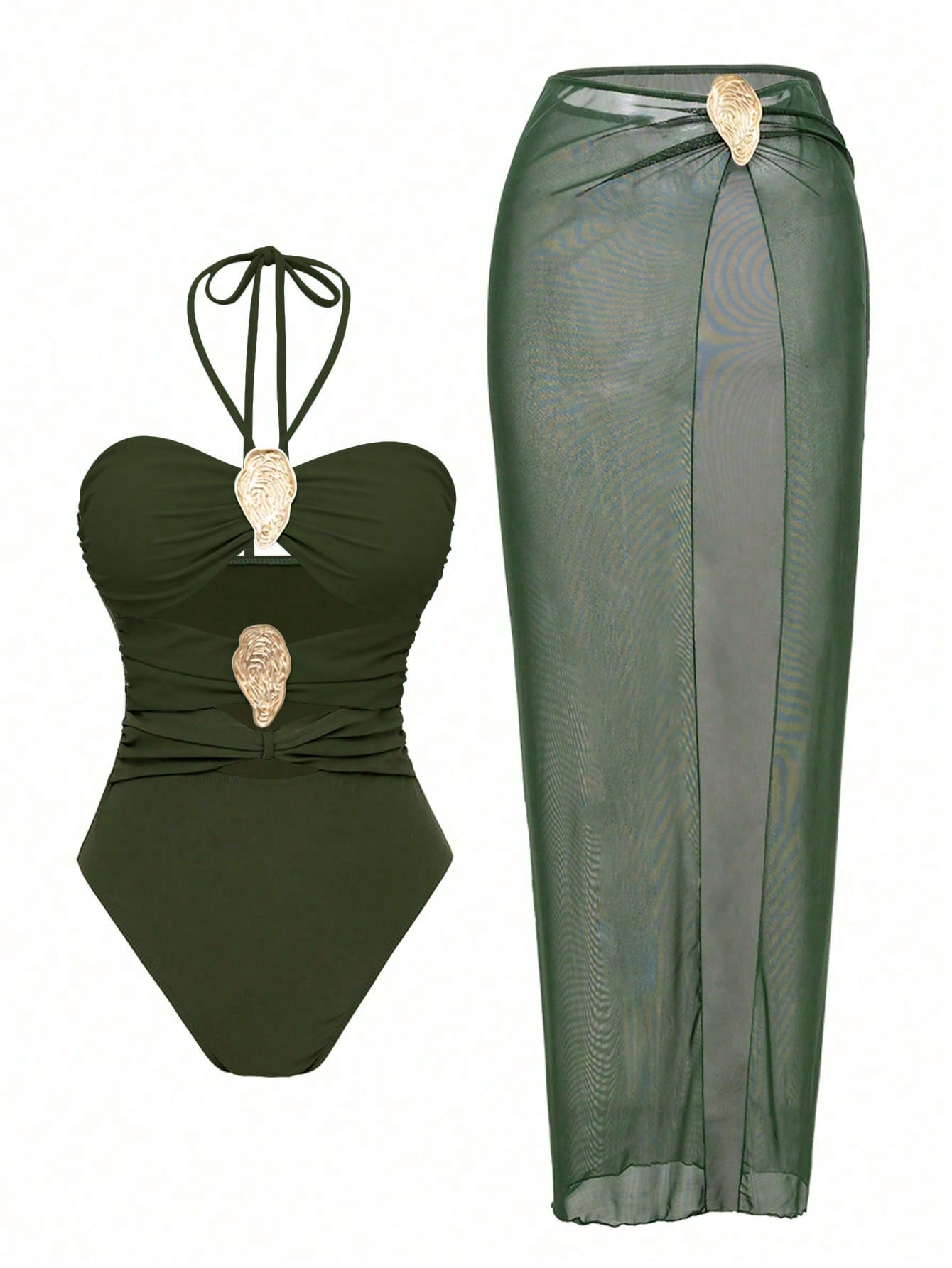 2025 대외 무역 새로운 크로스 보더 아마존 홀터넥 원피스 수영복 아마존 유럽과 미국의 여성용 온천 스커트 슈트스토어 가기