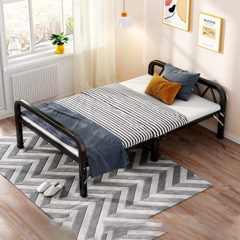 가정용 방역 및 의료용 접이식 침대 시트 단단한 나무 간이 침대 휴대용 강화 철제 프레임 임대실 1.2 동반 침대