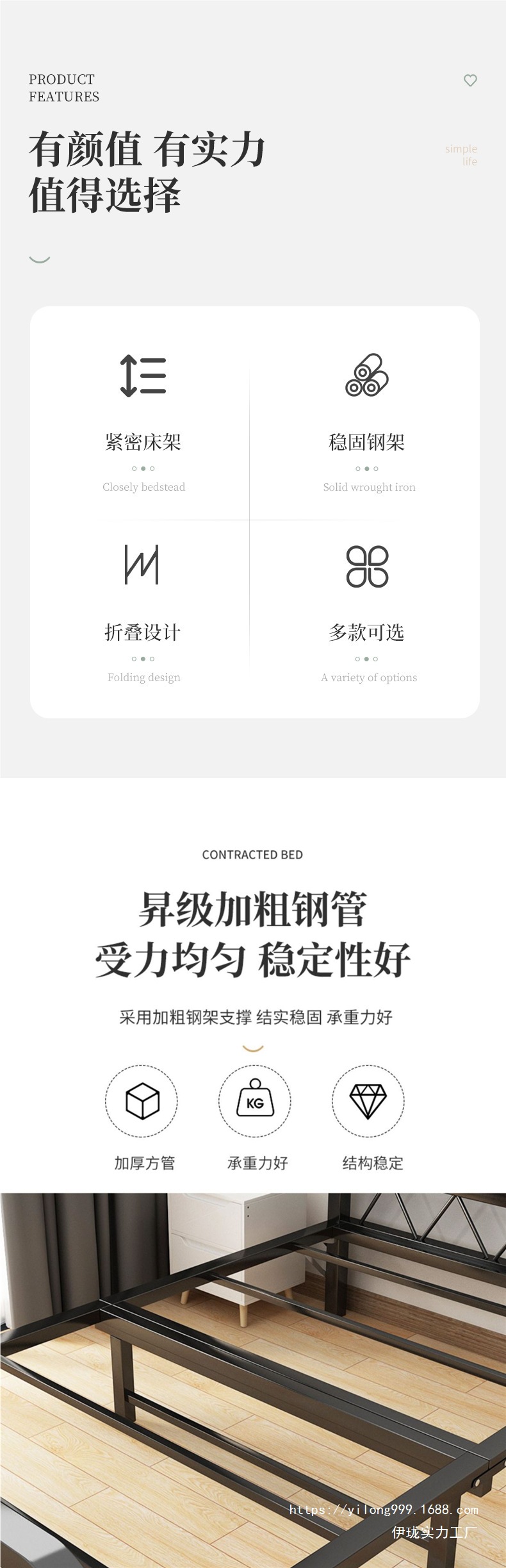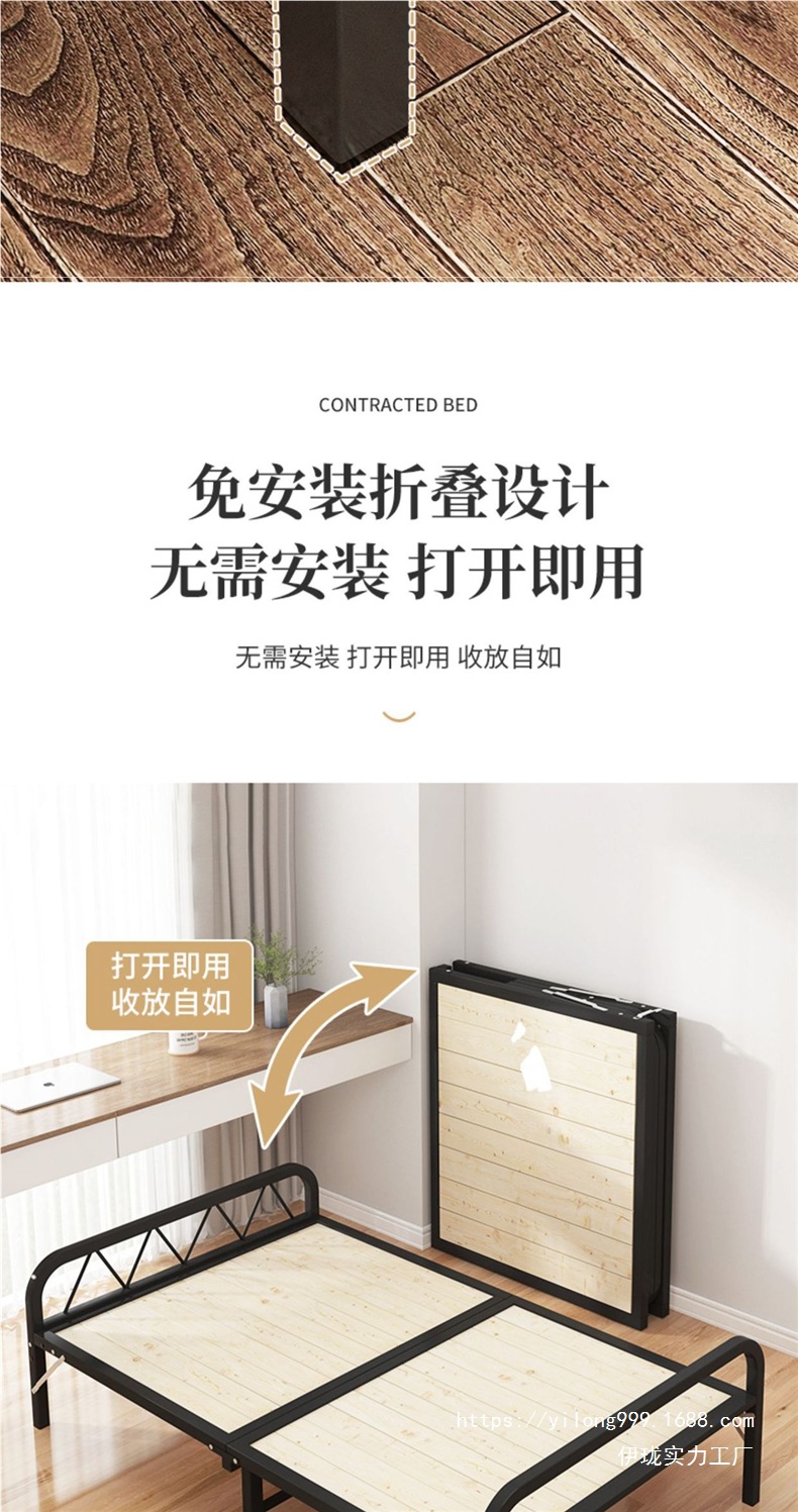 가정용 방역 및 의료용 접이식 침대 시트 단단한 나무 간이 침대 휴대용 강화 철제 프레임 임대실 1.2 동반 침대스토어 가기