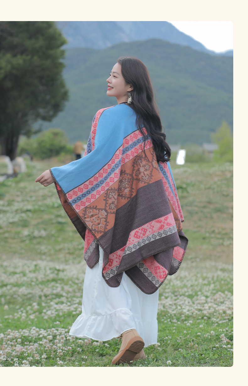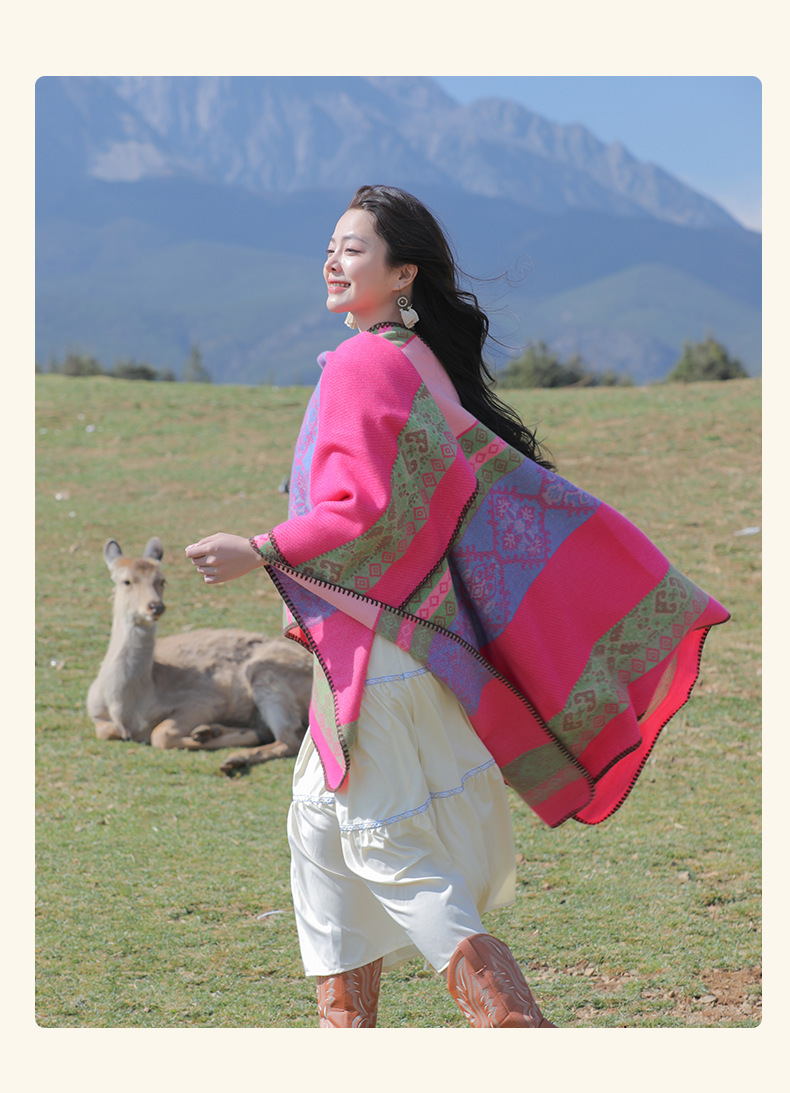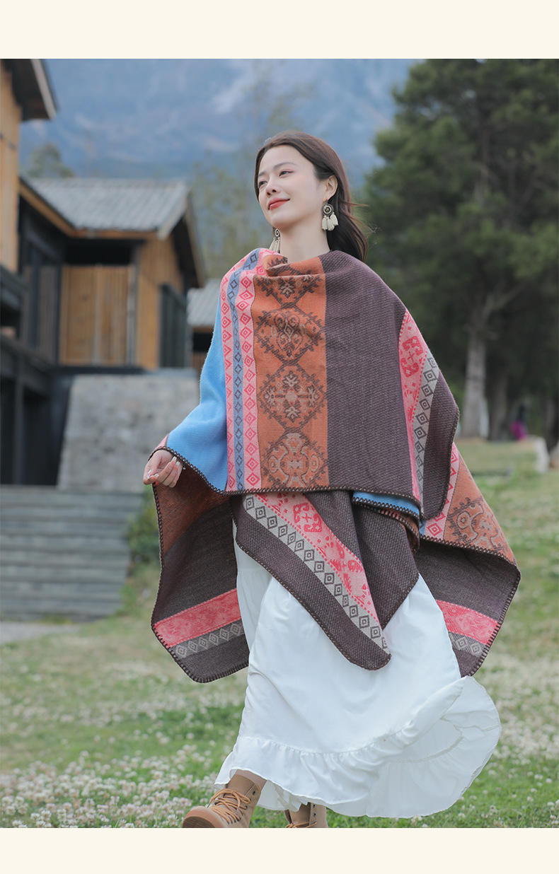 초원 민족 스타일 슬릿 숄 망토 티베트 신장 내몽고 여행 따뜻한 외부 스카프 망토 여성용