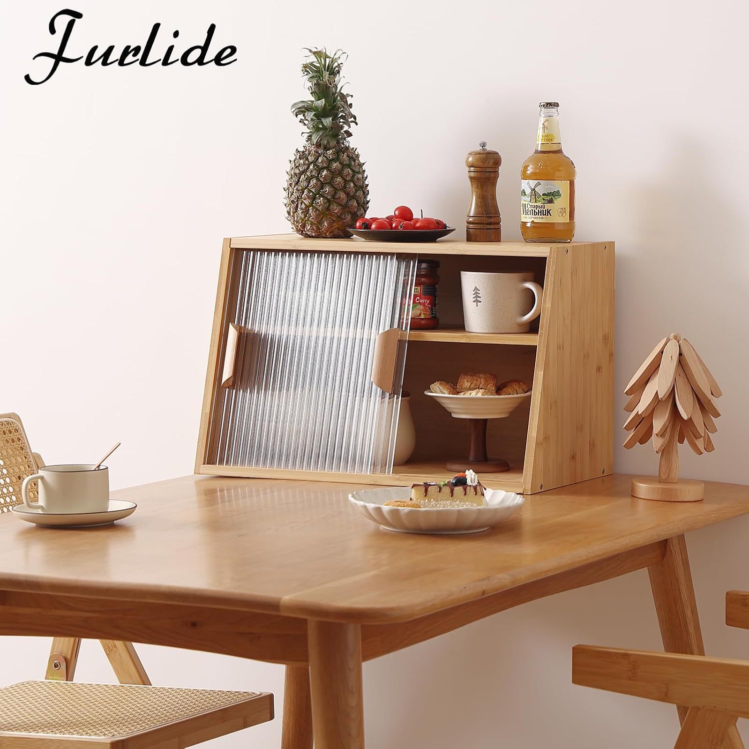 나무 빵 상자 보관 상자 가정용 주방 식기 보관 캐비닛 대나무 나무 슬라이딩 도어 방진 보관 상자스토어 가기