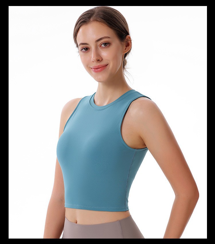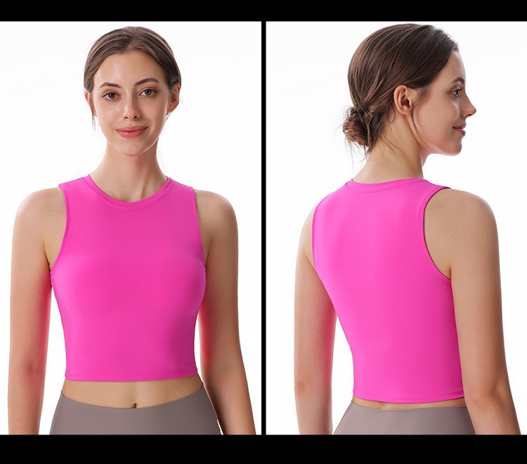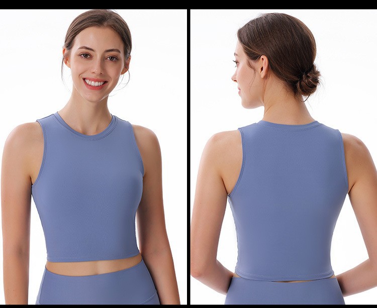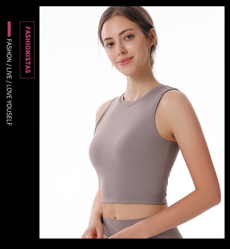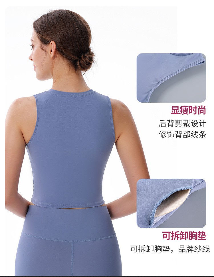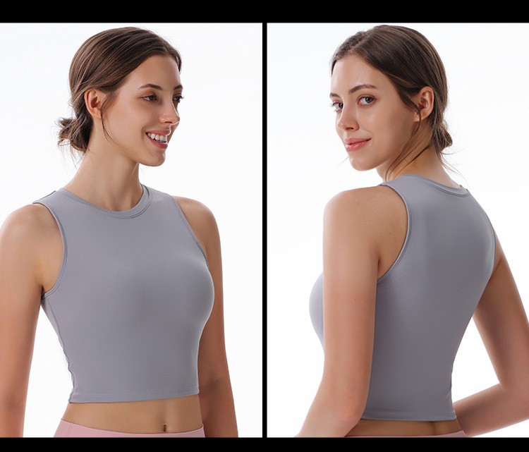 크로스보더 패션 라운드 넥 조끼 누드 3층 탈착식 가슴 패드 스포츠 아름다운 등 피트니스 러닝 요가 속옷 여성용
