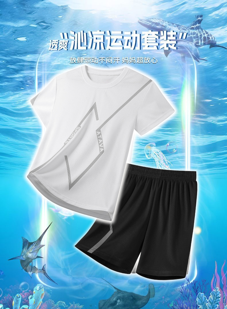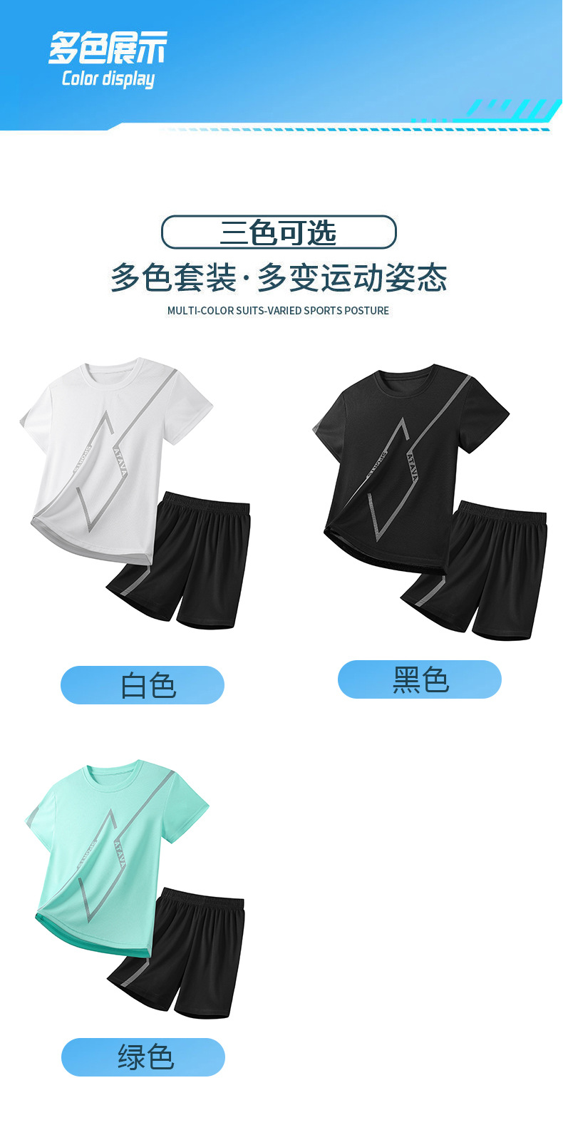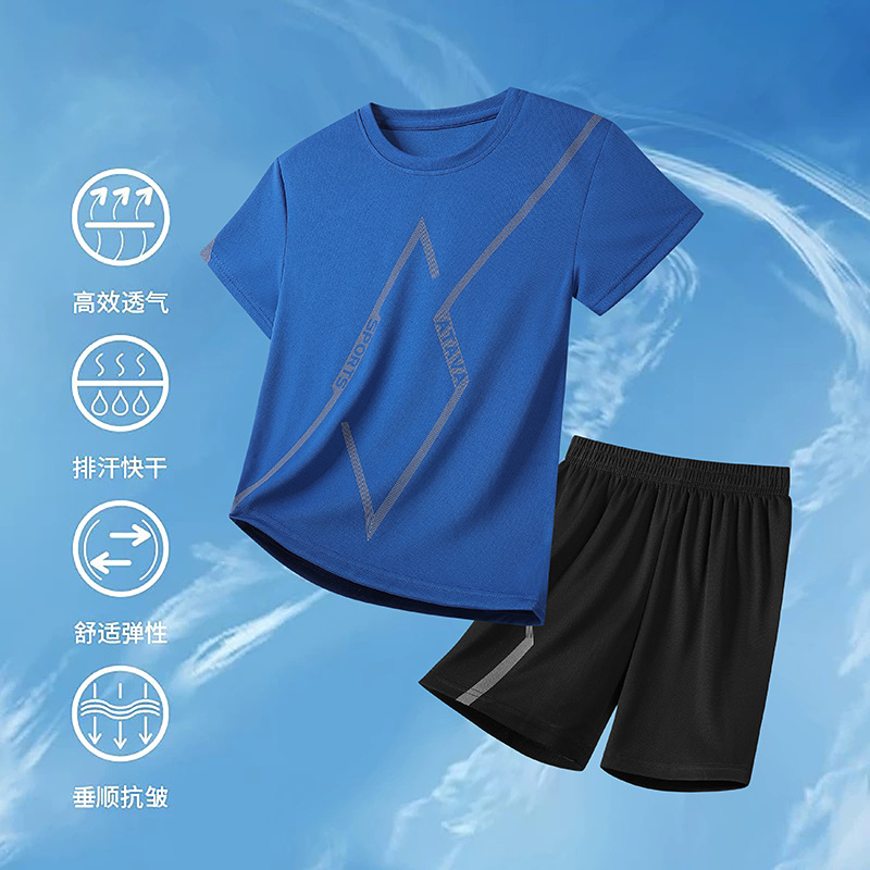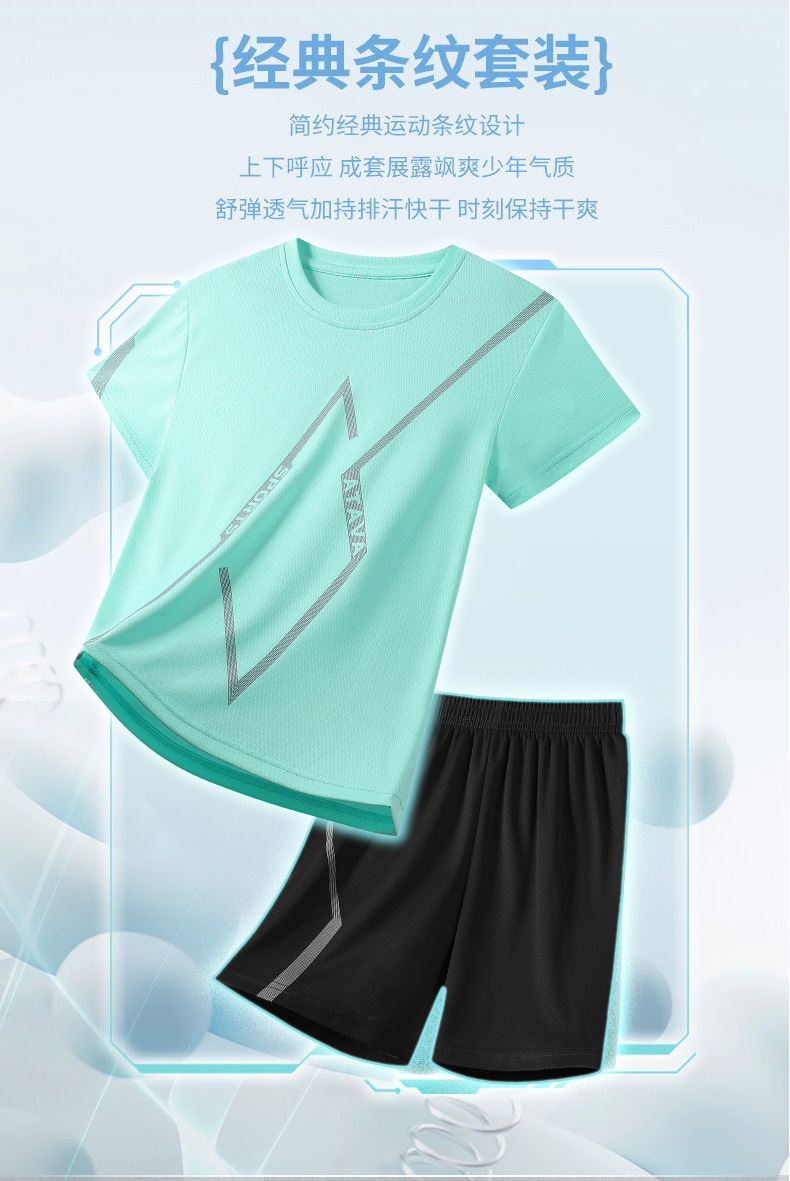아이스 실크 빠른 건조 세트 소년 반팔 티셔츠 여름 새로운 어린이 통기성 캐주얼 반바지 운동복 투피스 세트스토어 가기