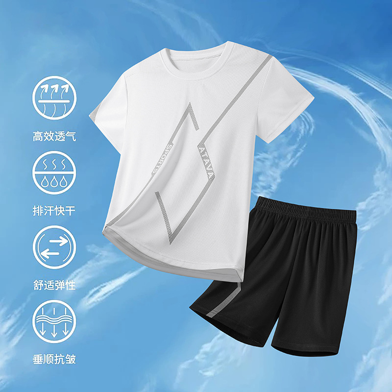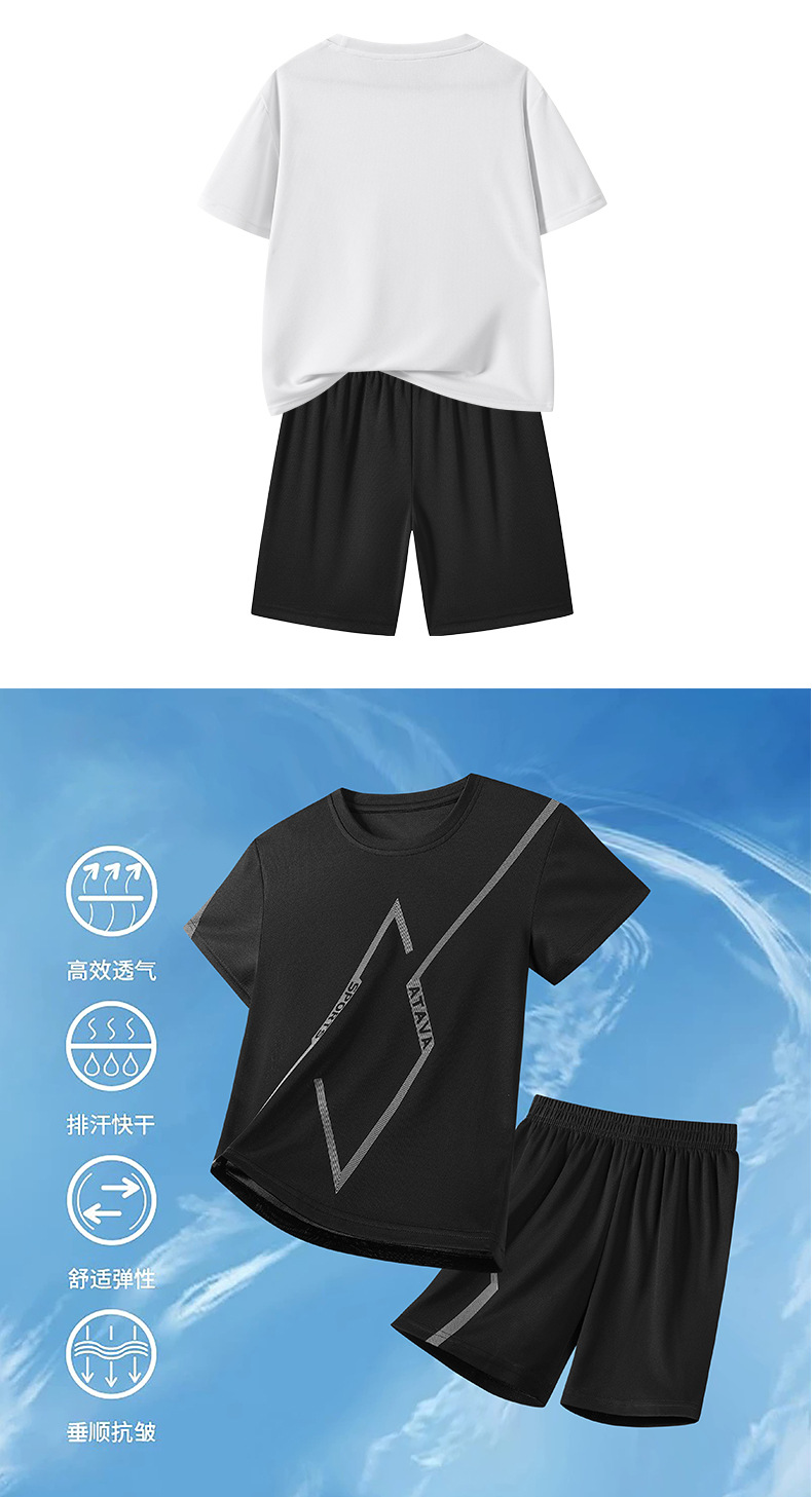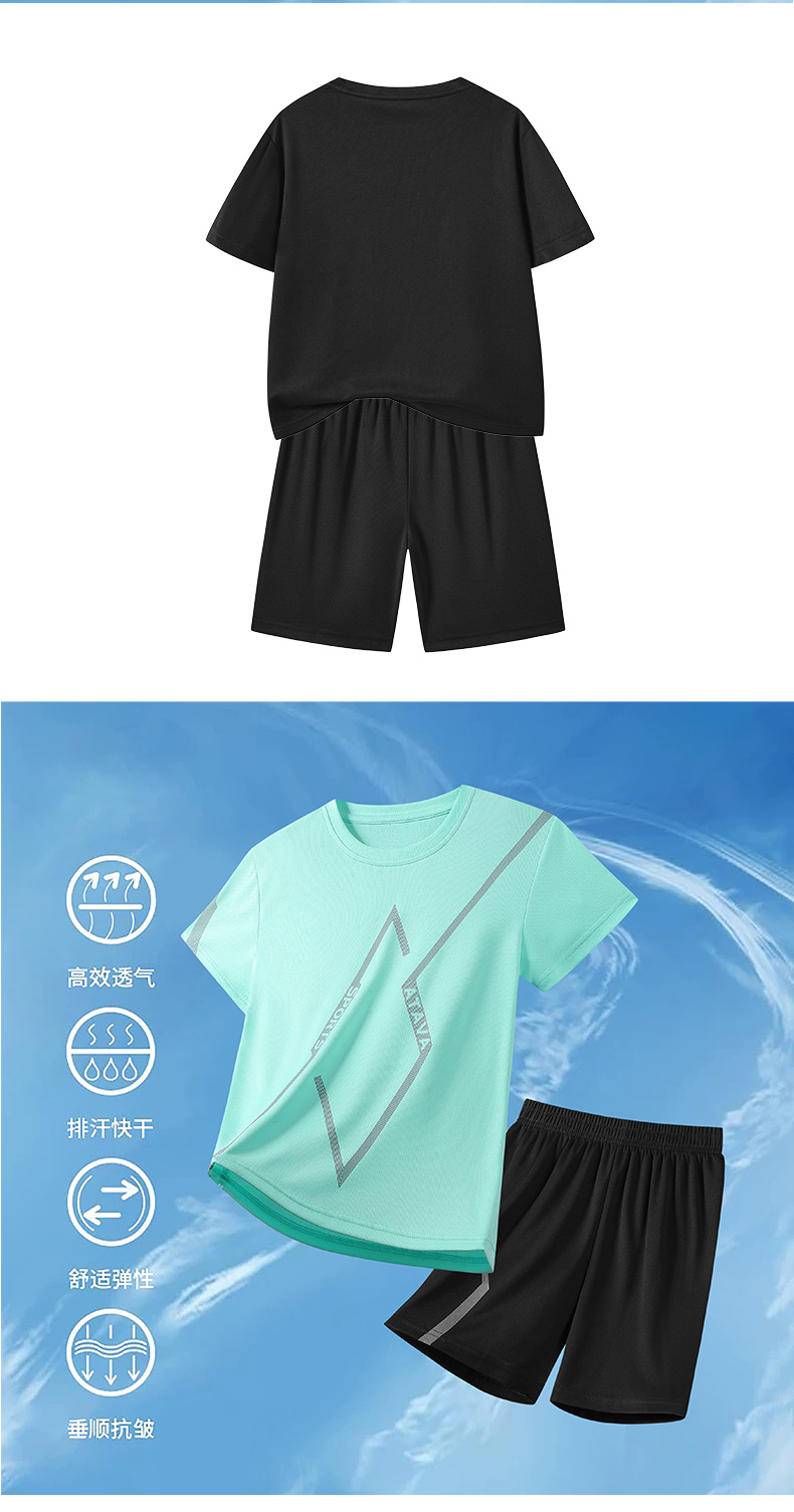 아이스 실크 빠른 건조 세트 소년 반팔 티셔츠 여름 새로운 어린이 통기성 캐주얼 반바지 운동복 투피스 세트스토어 가기