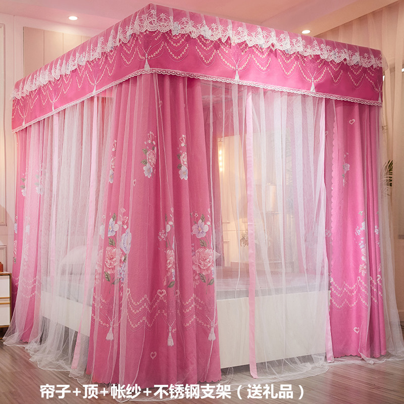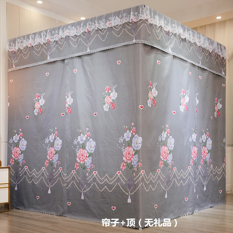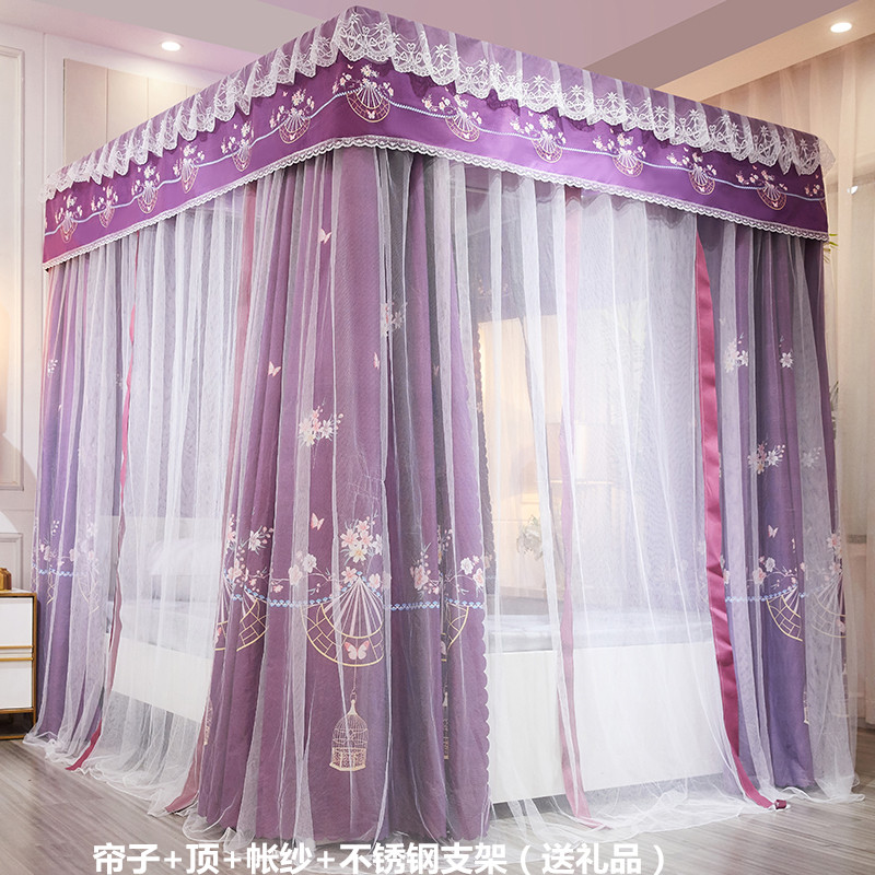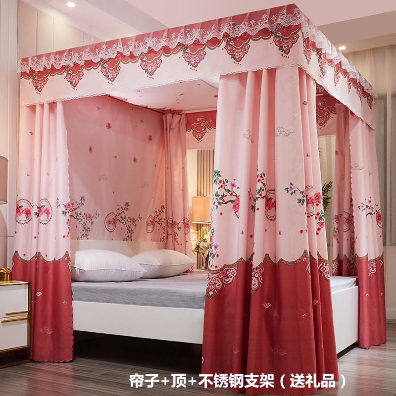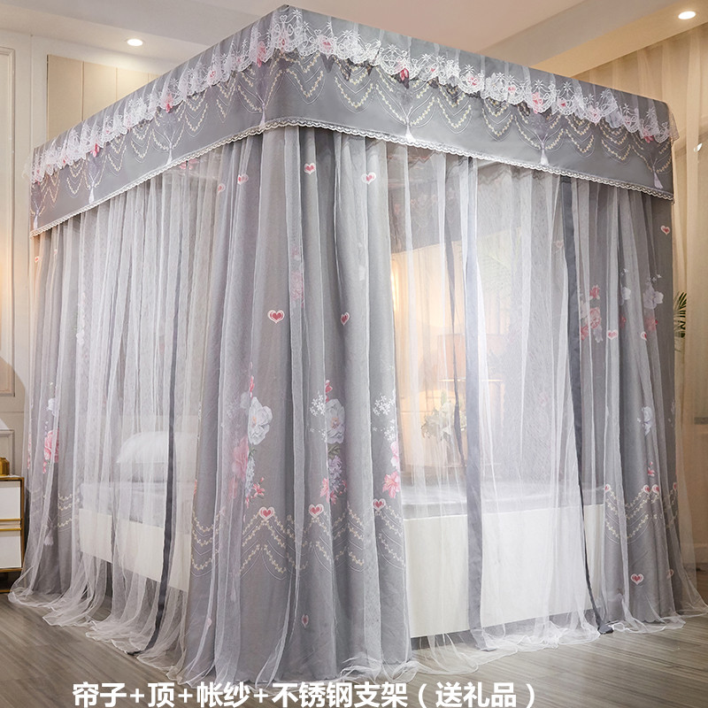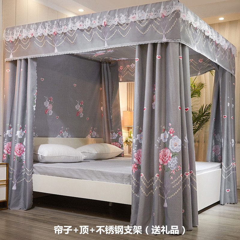플로어 스탠딩 침대 커튼, 모기장, 빛 차단 및 방진 일체형 1.8m 침대 커튼, 두꺼운 공주 스타일 더블 홈