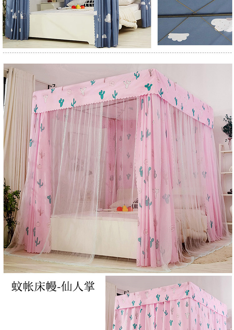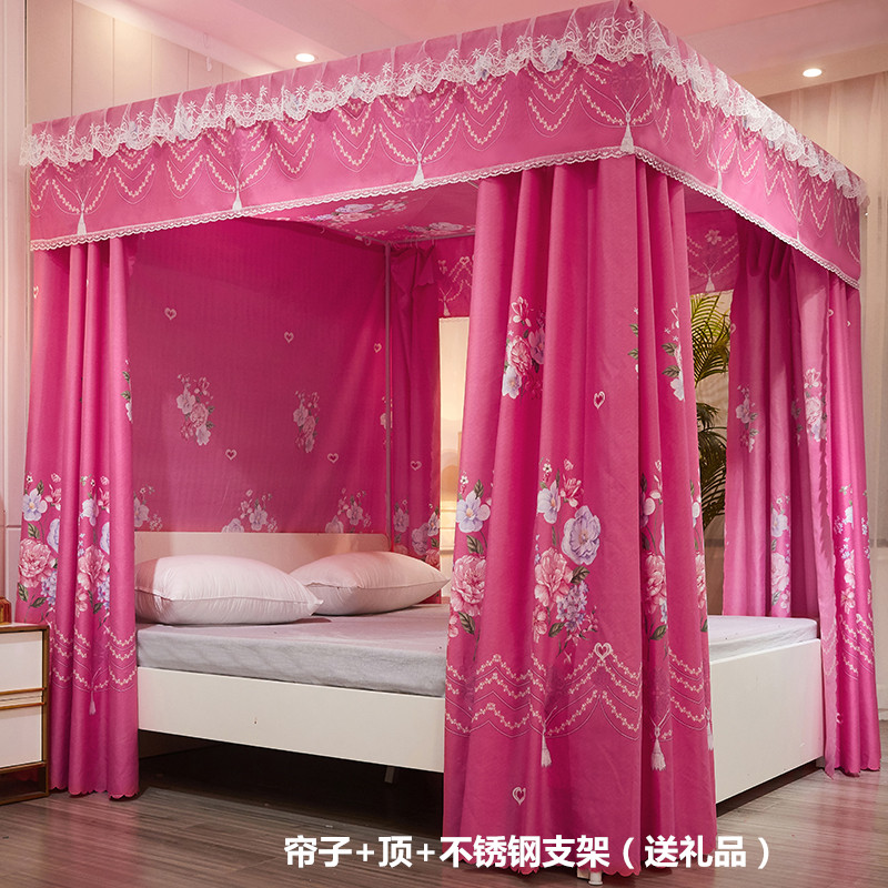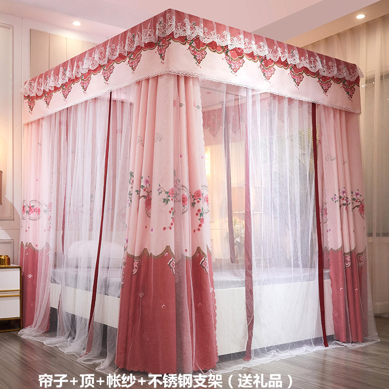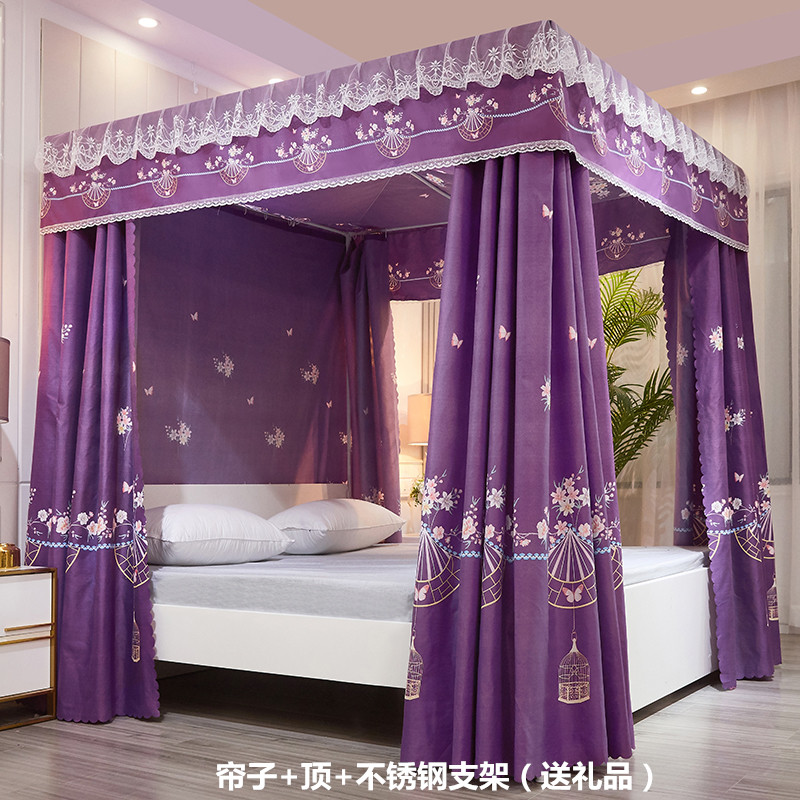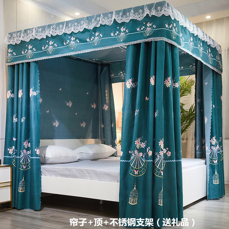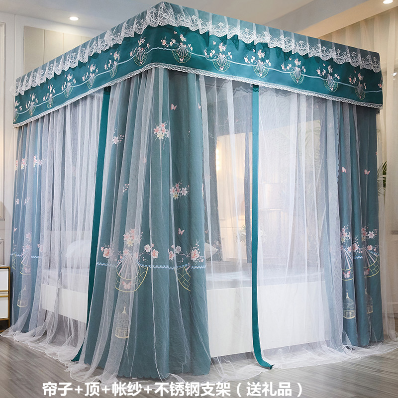 플로어 스탠딩 침대 커튼, 모기장, 빛 차단 및 방진 일체형 1.8m 침대 커튼, 두꺼운 공주 스타일 더블 홈