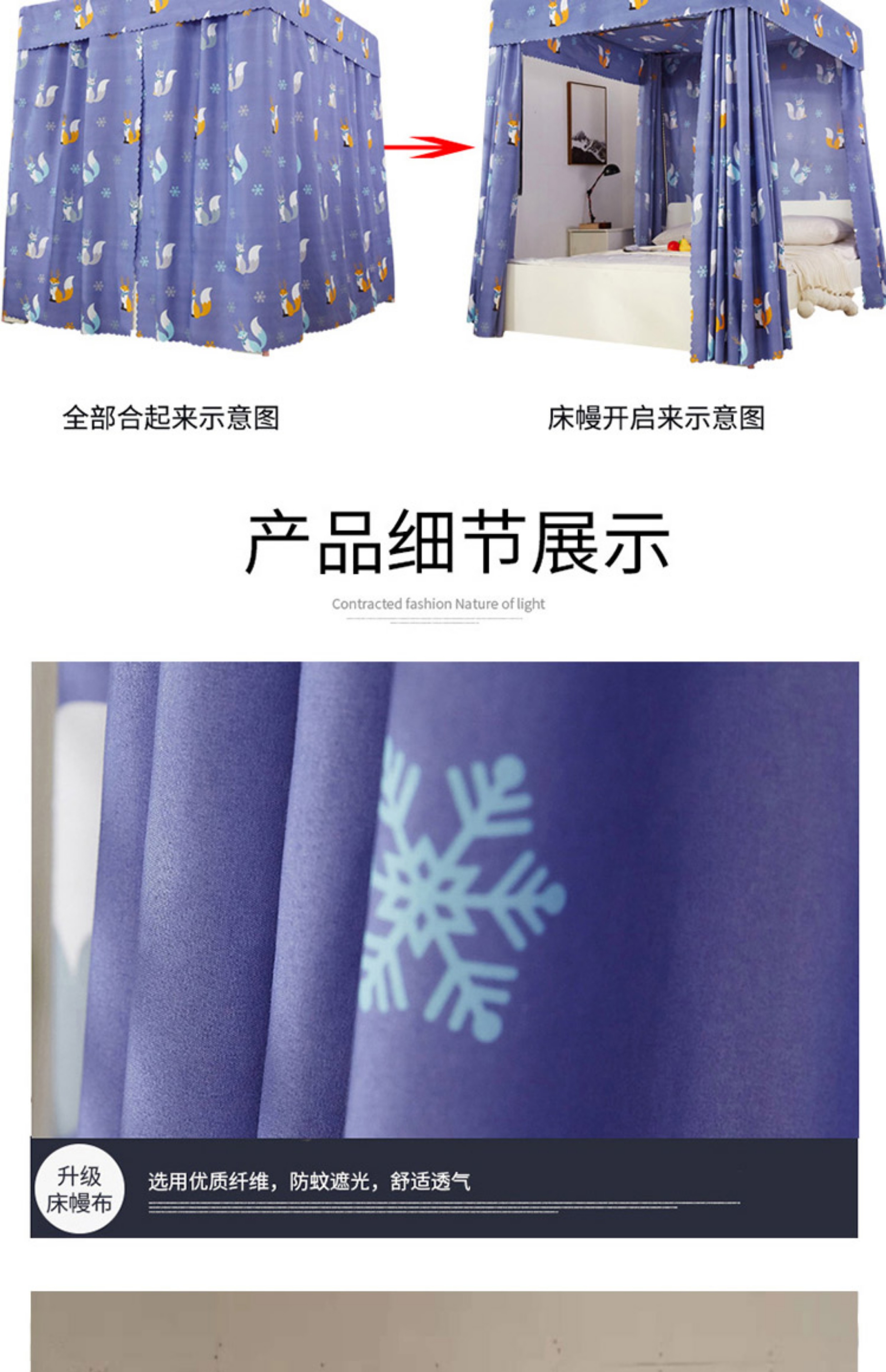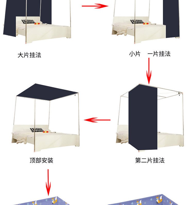 • Baiyun 침대 커튼 + 상단 + 브래킷 + 원사 (선물)