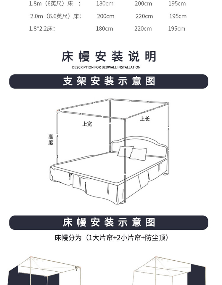 • Baiyun 침대 커튼 + 방진 상단 (선물 없음)