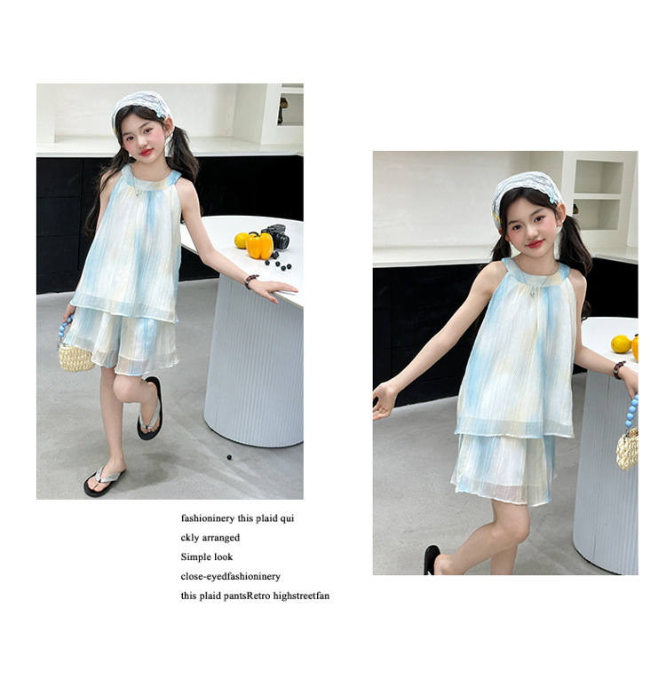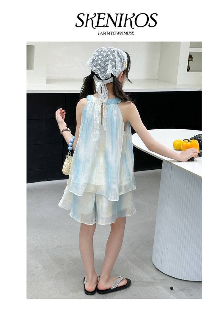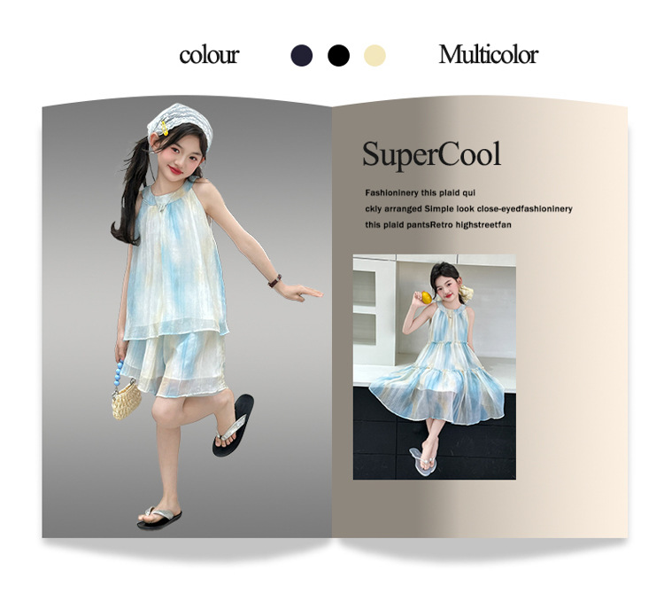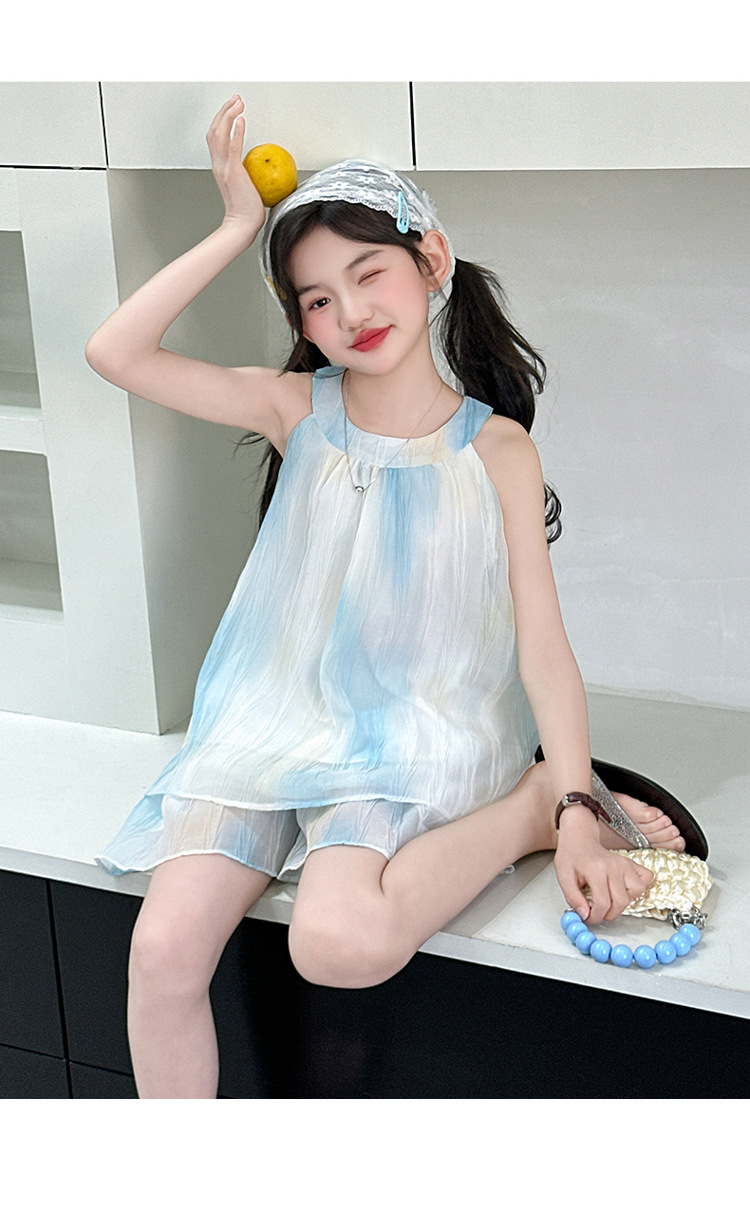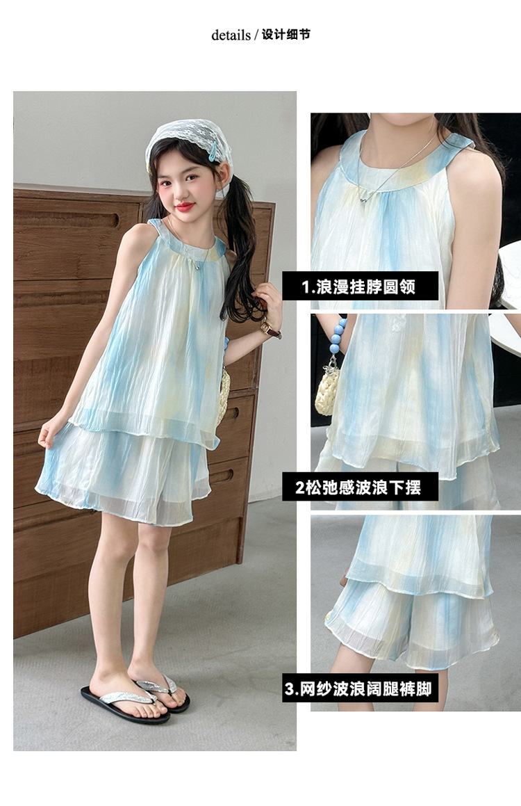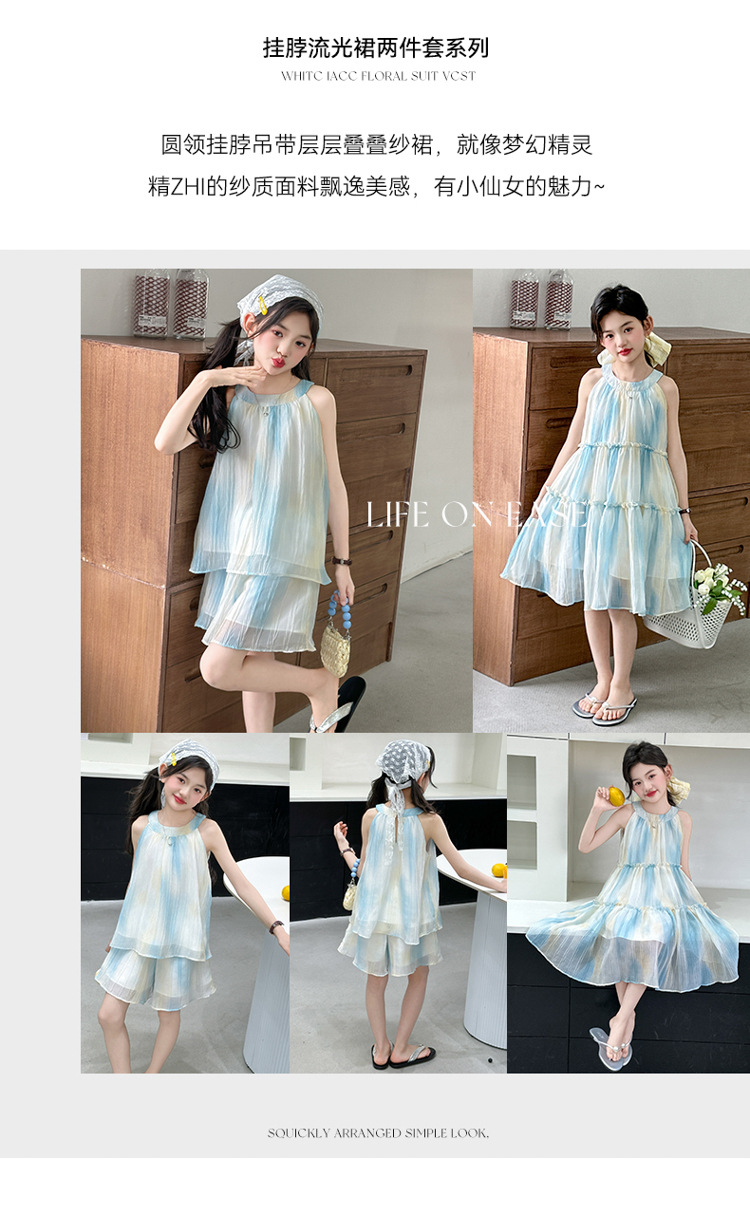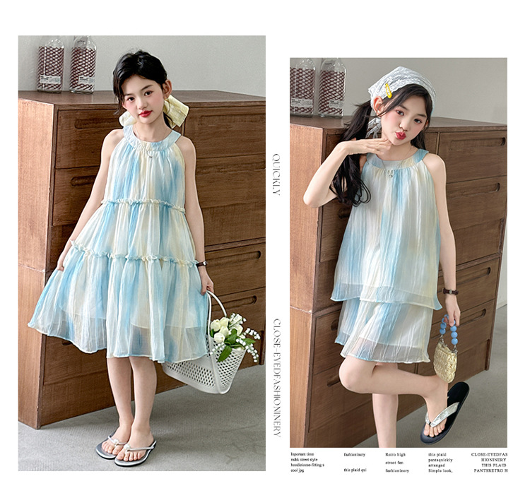 소녀의 여름 새 스타일 교수형 목 원피스 큰 어린이 패션 꽃 원피스 소녀의 달콤한 꽃 그라디언트 비치 원피스