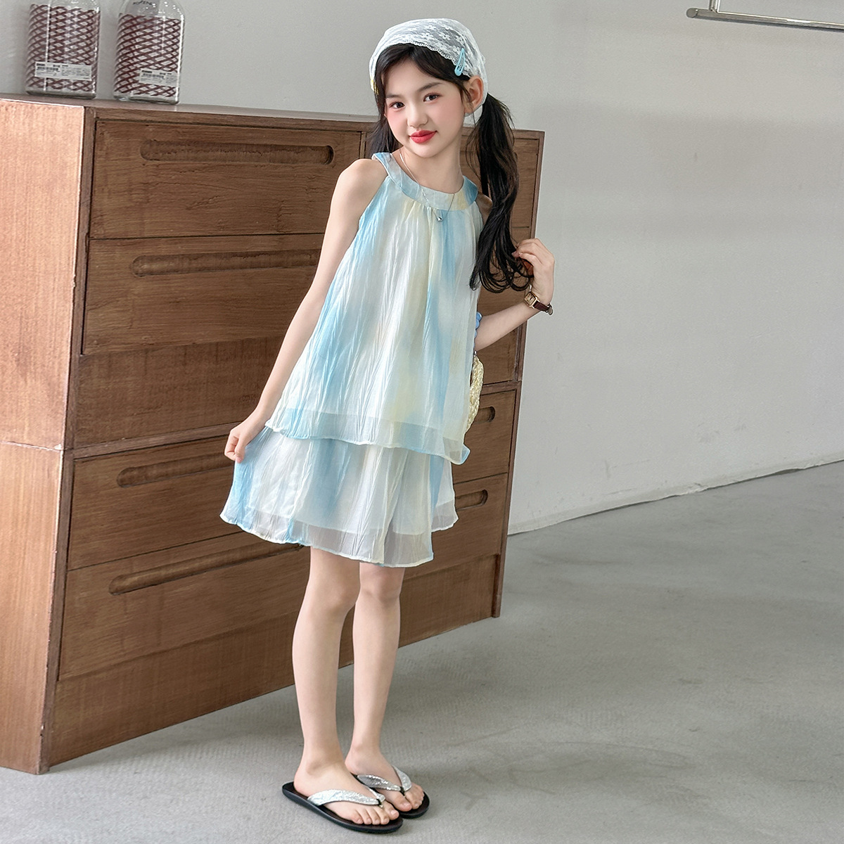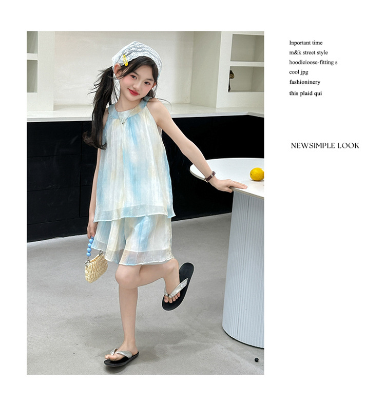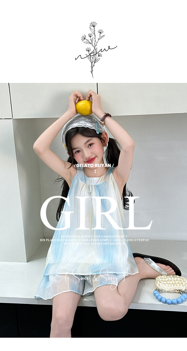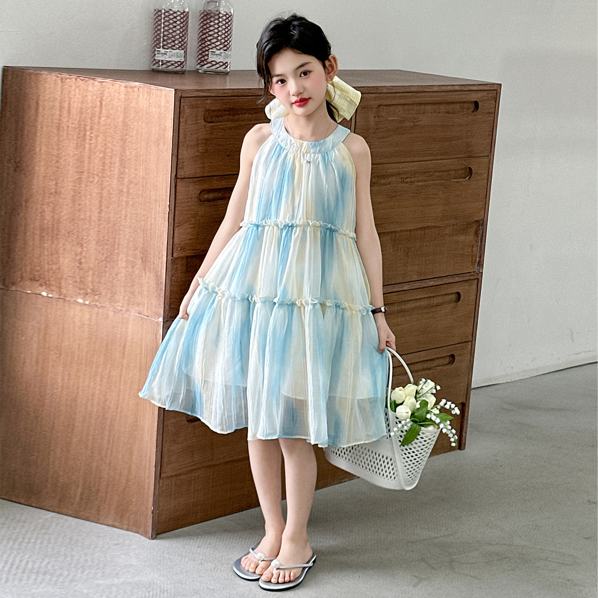 소녀의 여름 새 스타일 교수형 목 원피스 큰 어린이 패션 꽃 원피스 소녀의 달콤한 꽃 그라디언트 비치 원피스스토어 가기